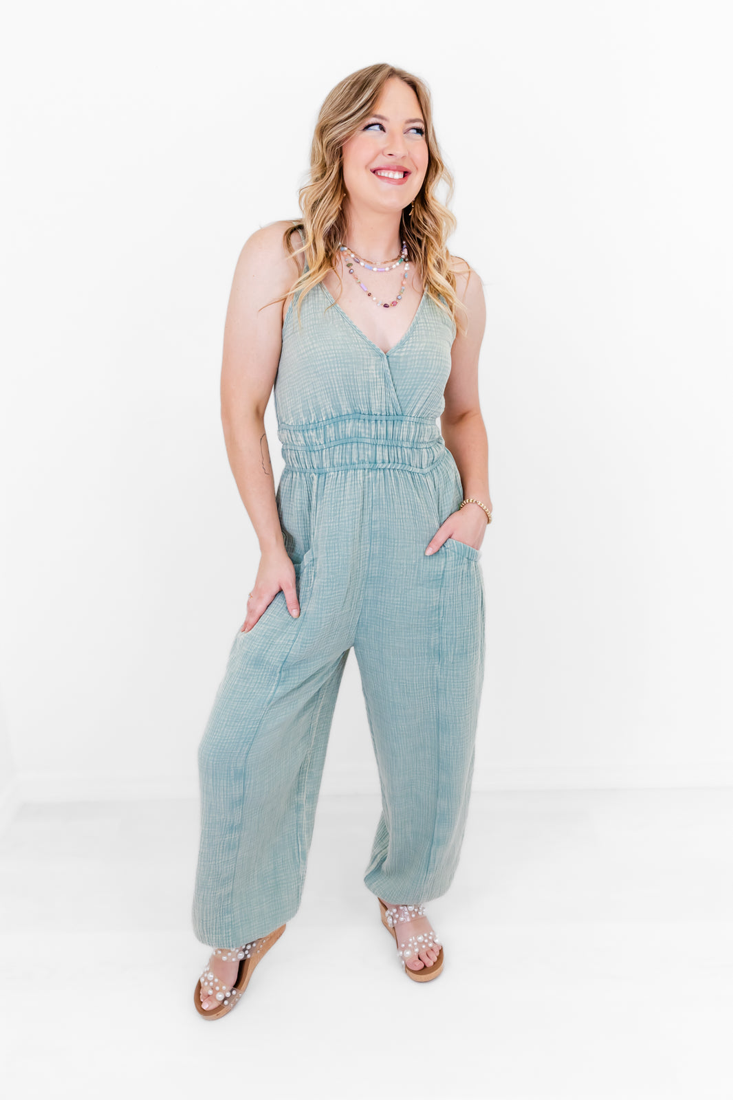 Boho Breeze V-Neck Gauze Jumpsuit