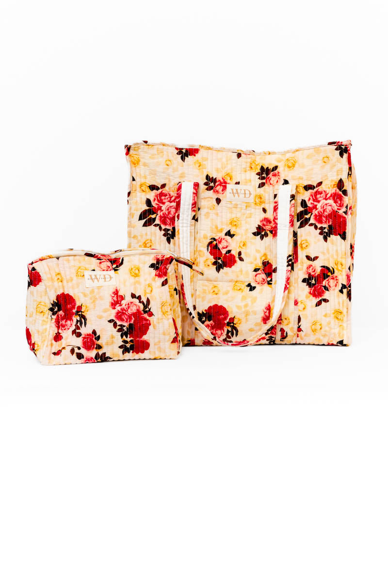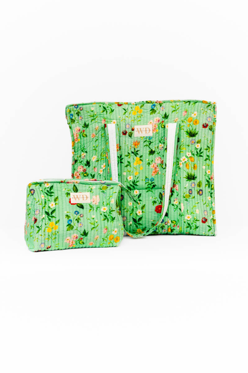 WD Meadow Muse Quilted Cosmetic Pouch & Tote Bundle