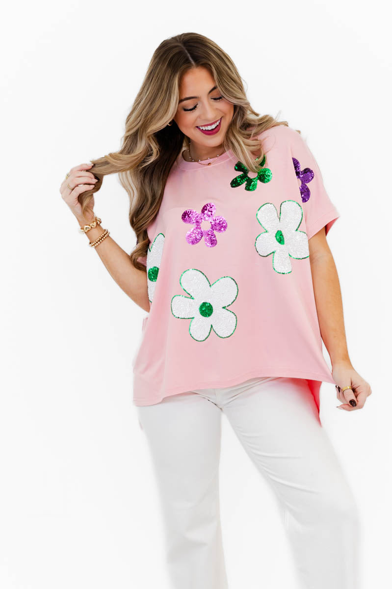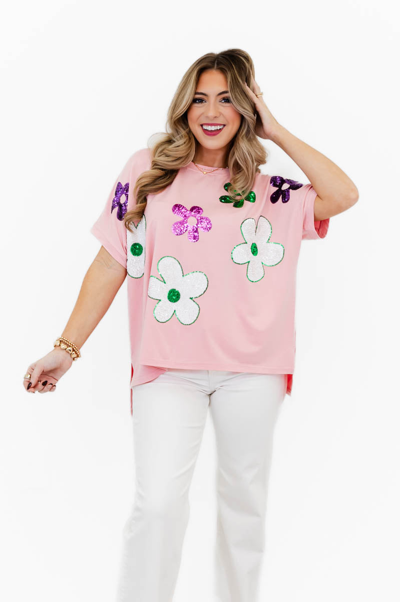 Mod Floral Sequin Top