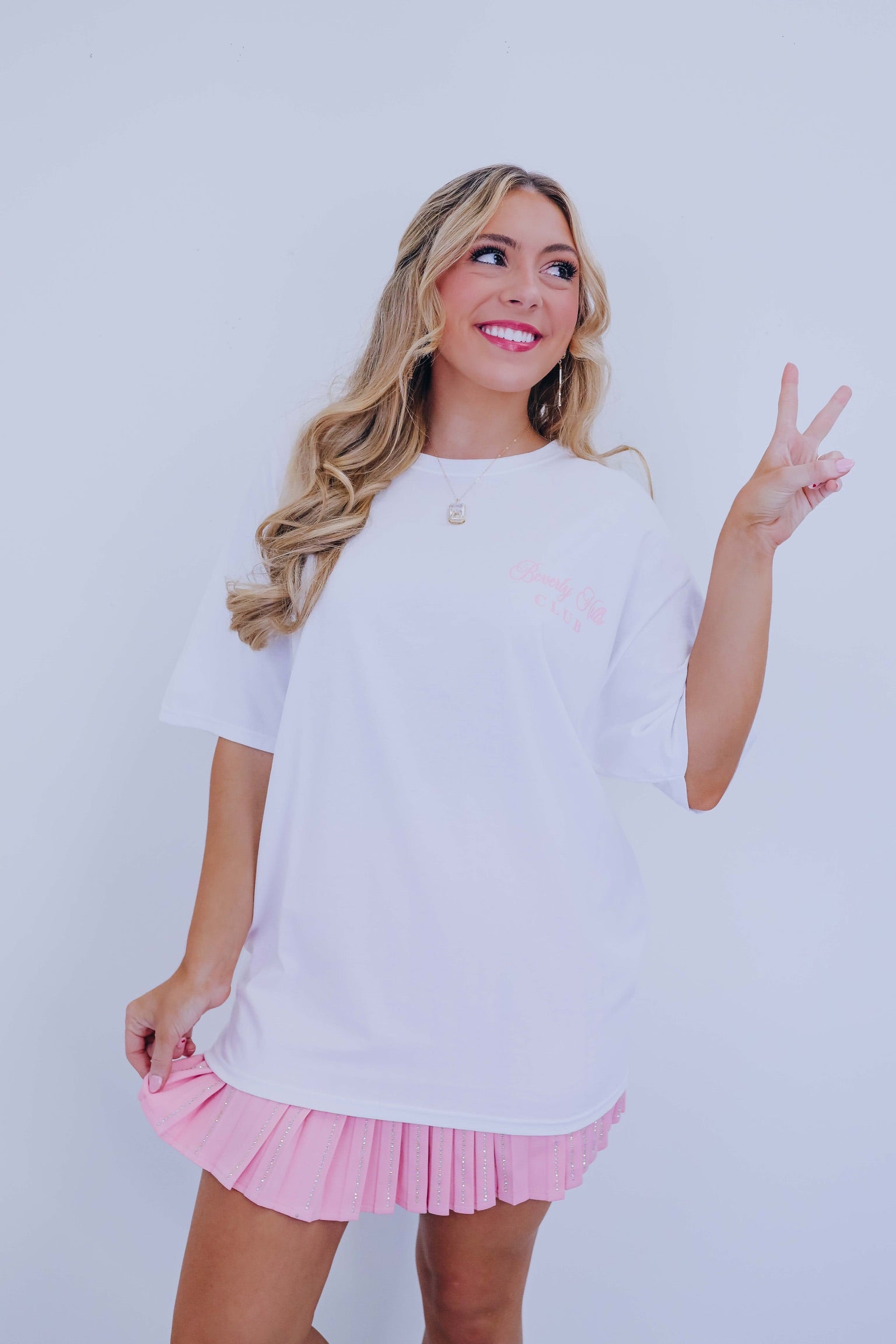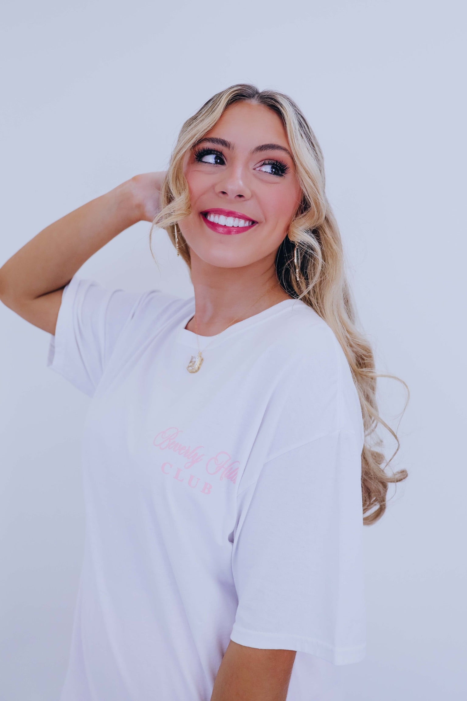 - Our must-have Beverly Hills Club Graphic Tee is perfect for a trendy fit. Effortlessly tuck this stylish tee into your favorite shorts paired with sneakers for a super chic look.