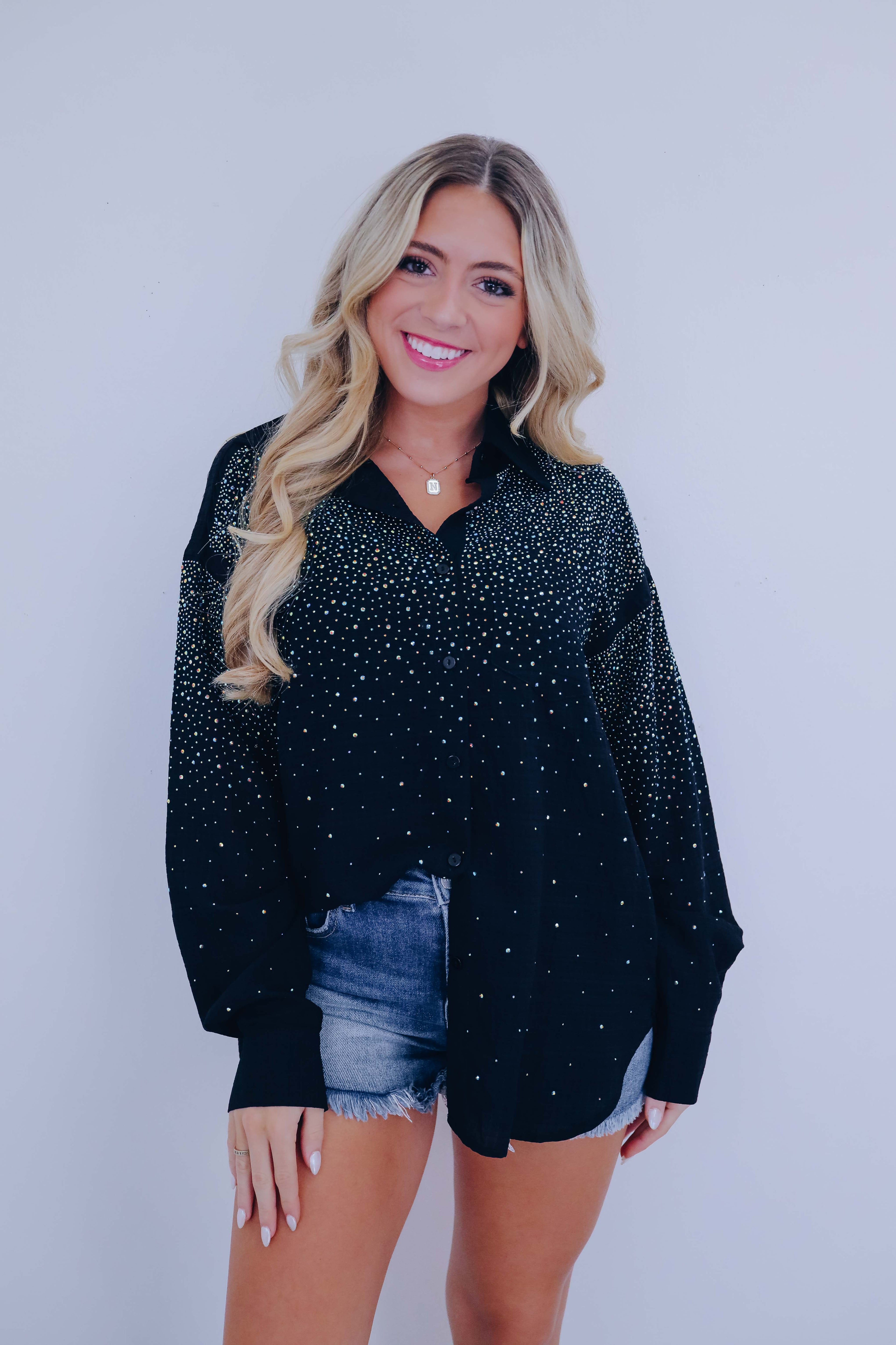Cascading Rhinestone Button Up Shirt - 4 Colors