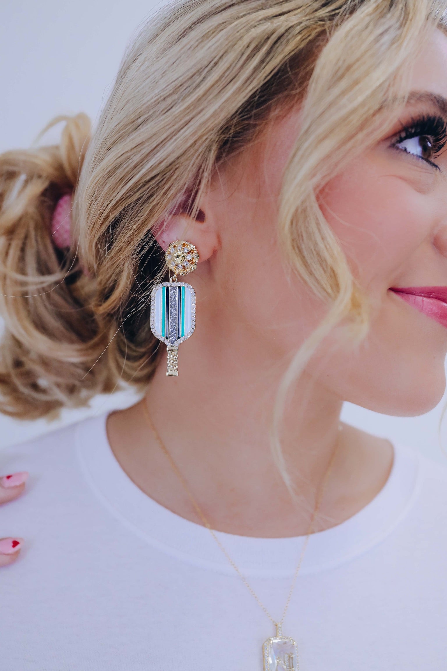 • Elevate your style with our Pickleball Paddle Dangle Earrings. Add a touch of sporty, fun and sophistication to any outfit with these unique earrings.