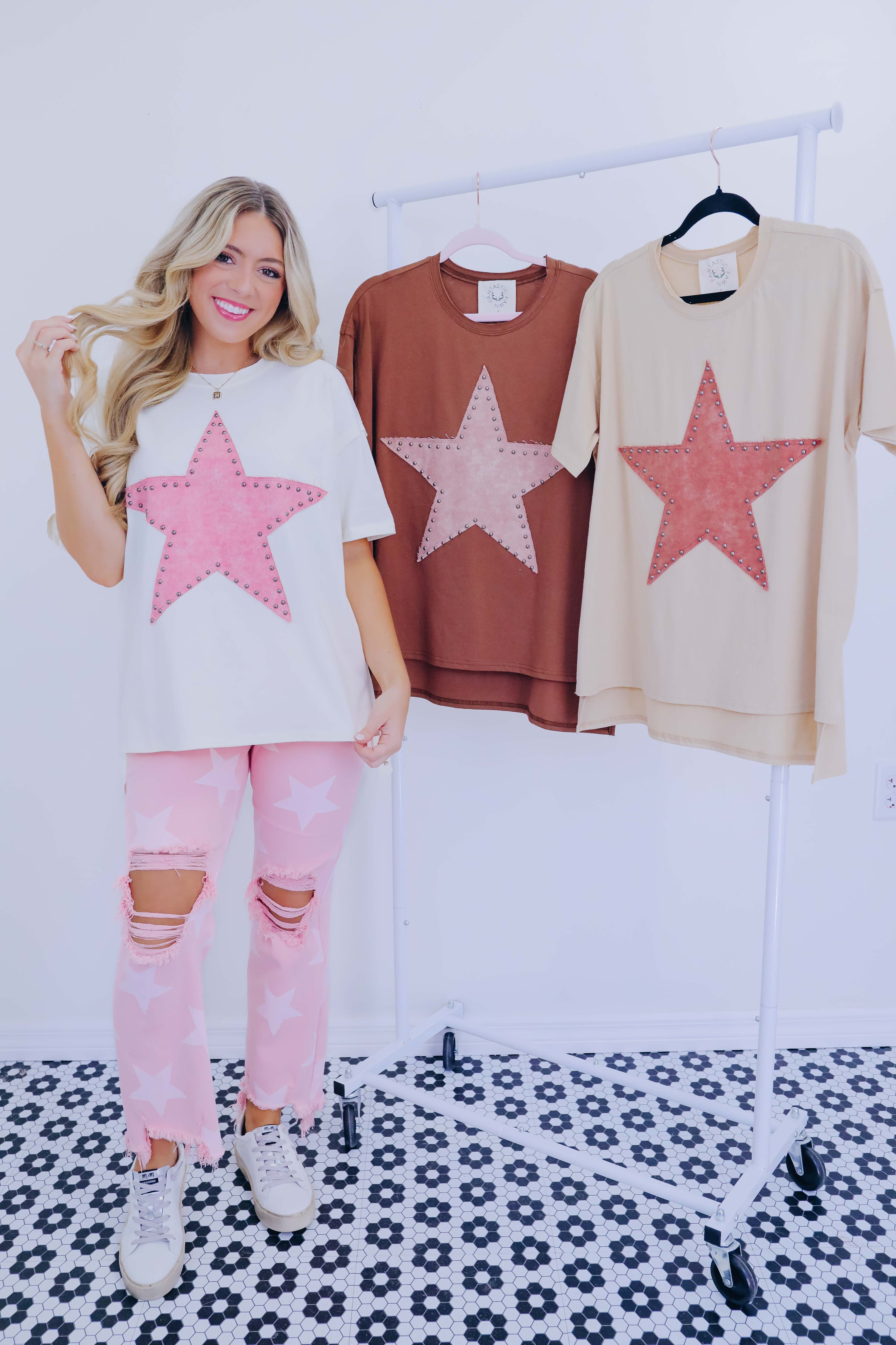 Twill Star Stud Patch Oversized Top - 3 Colors