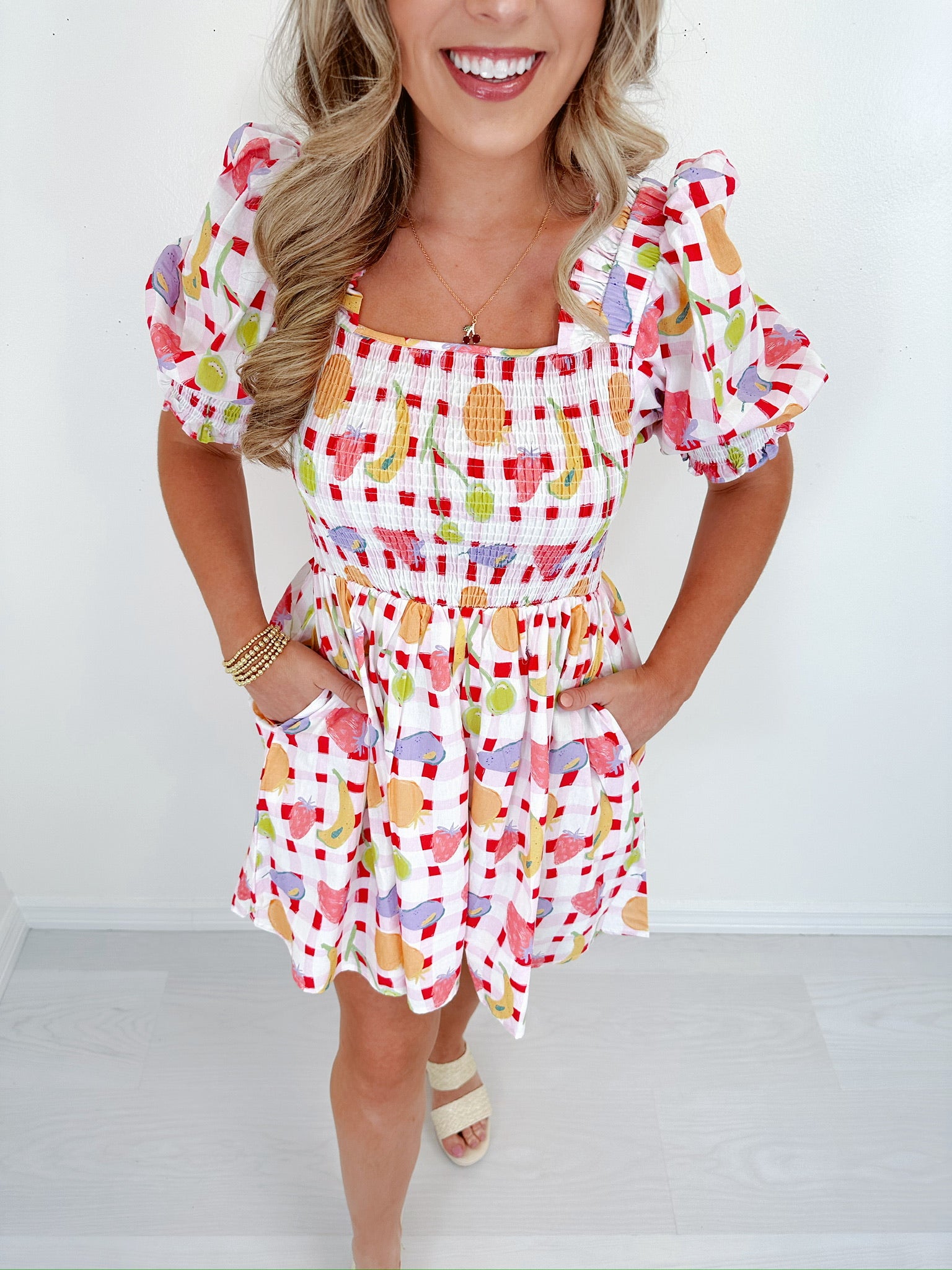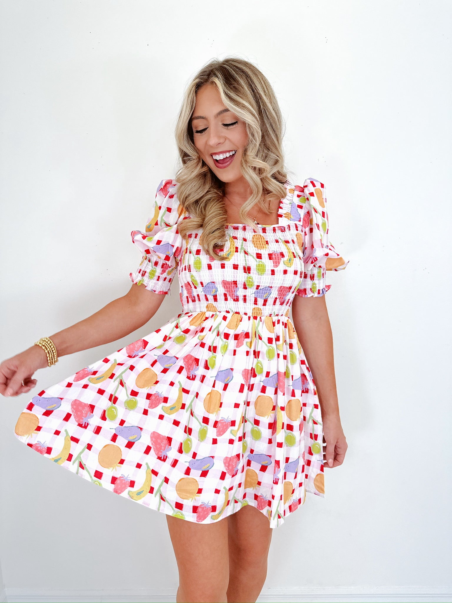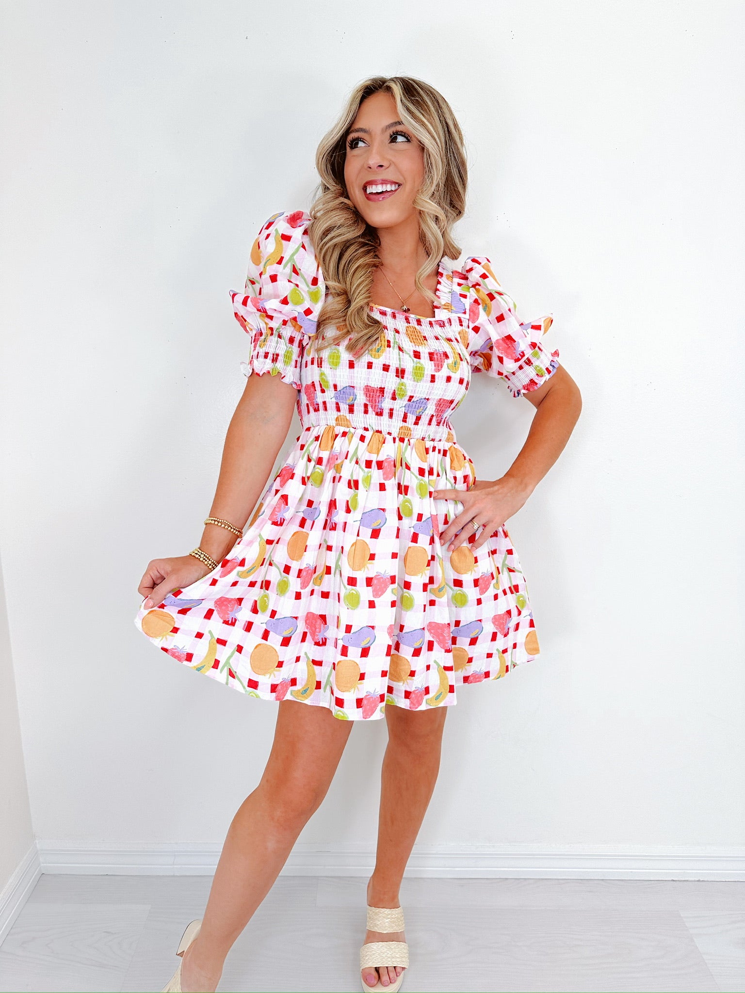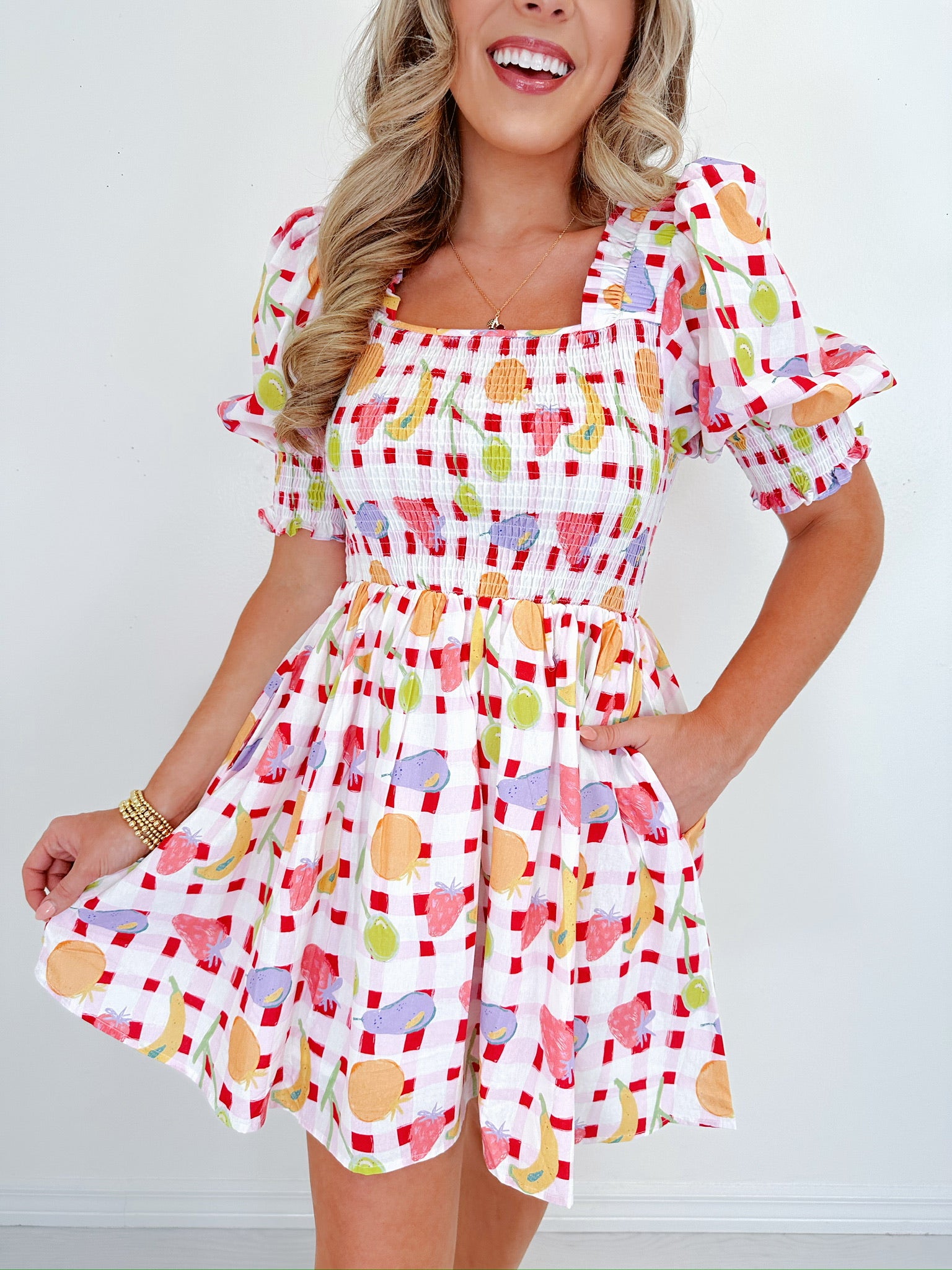 Naturally Sweet Fruit Print Mini Dress - Pink