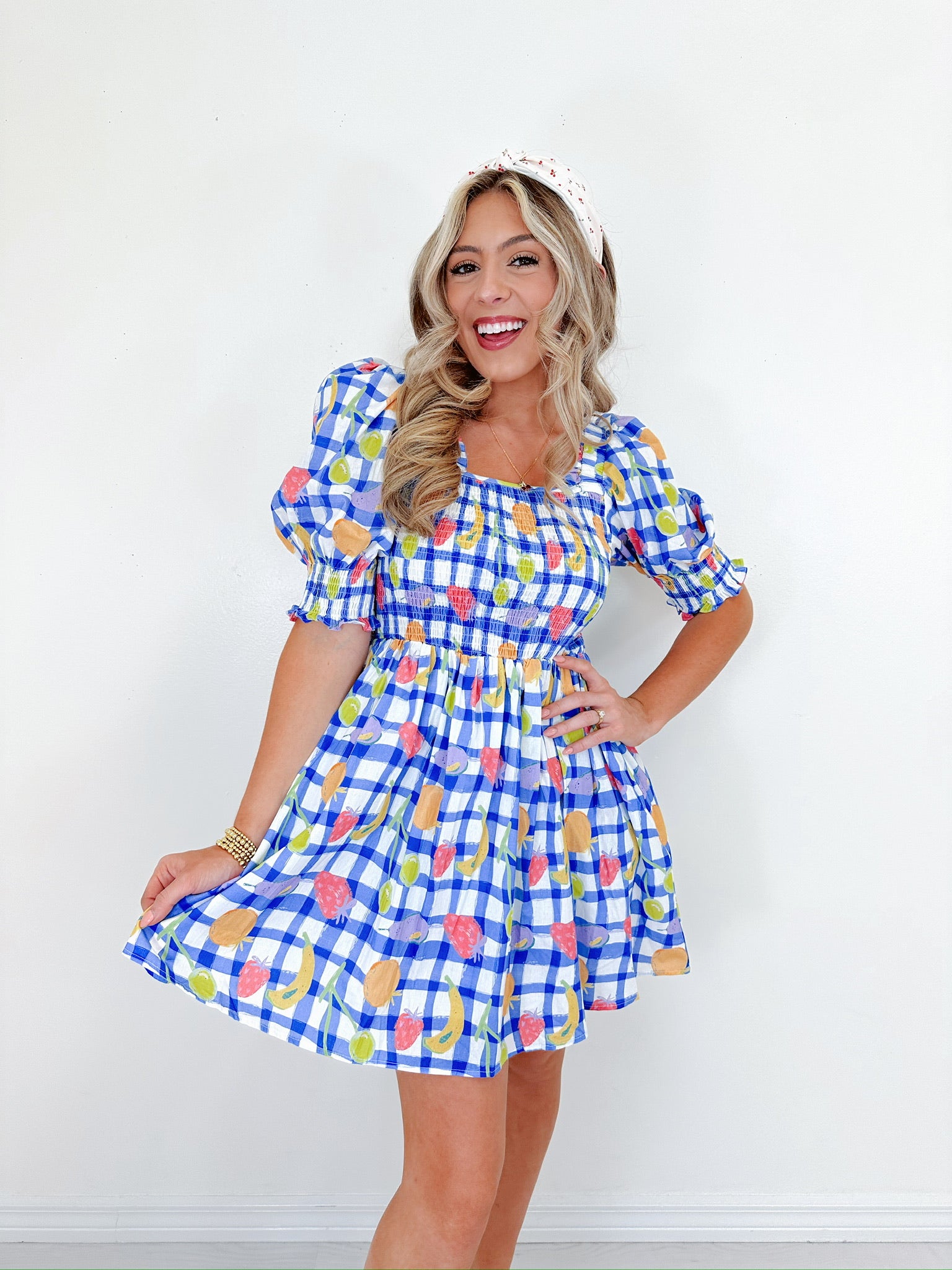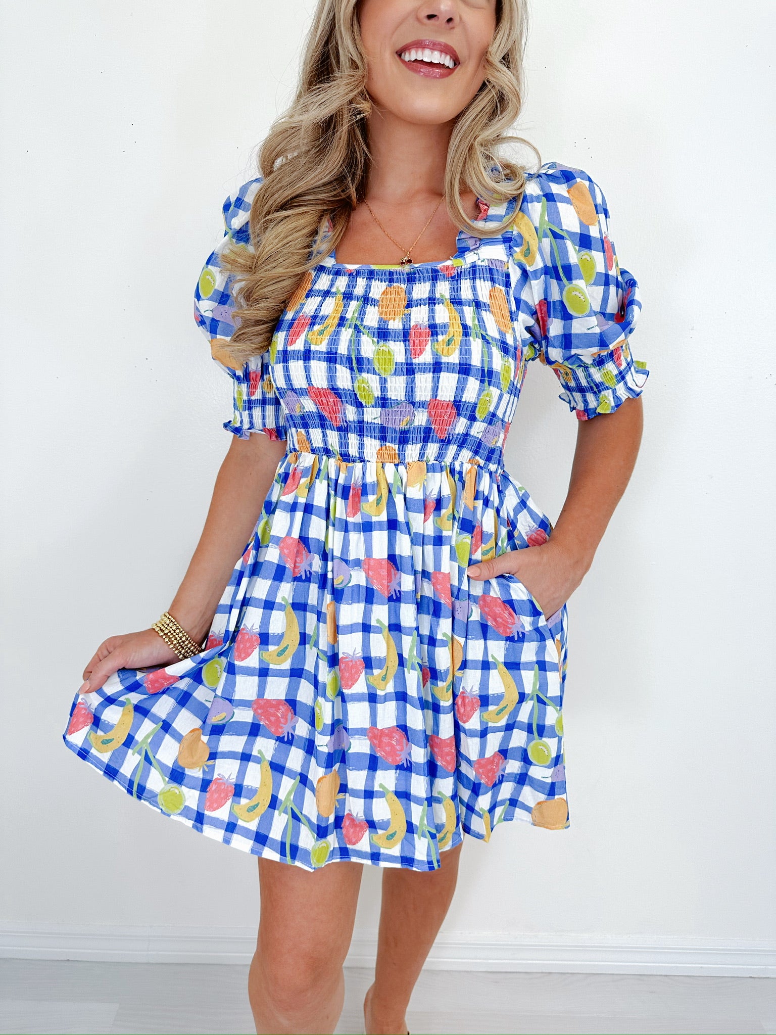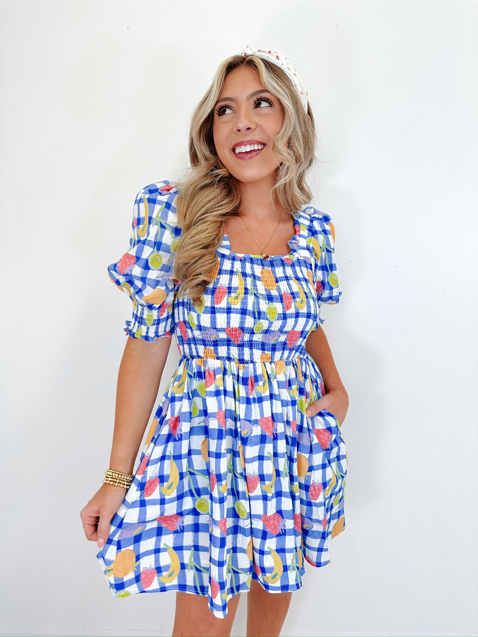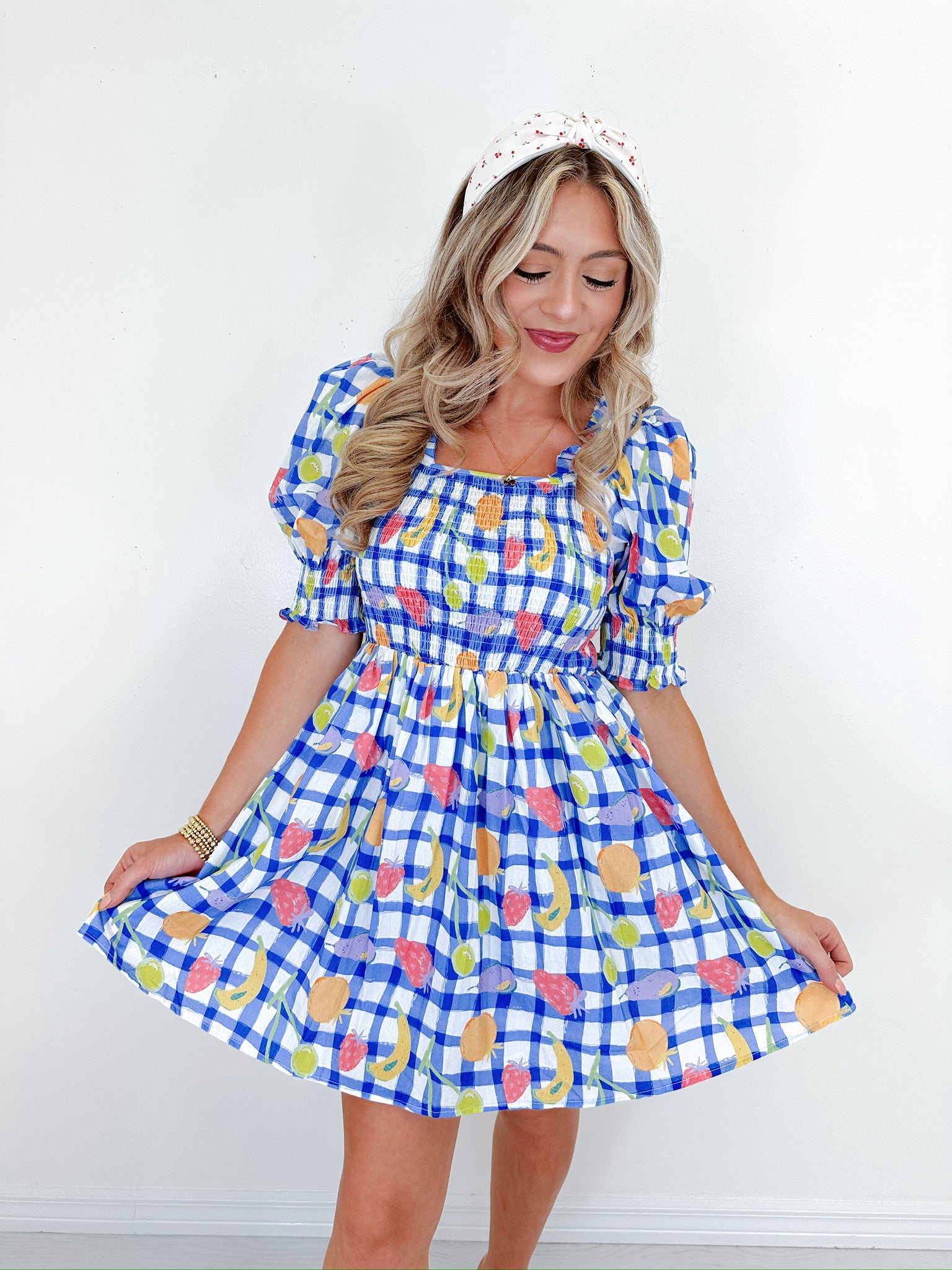 Naturally Sweet Fruit Print Mini Dress - Blue
