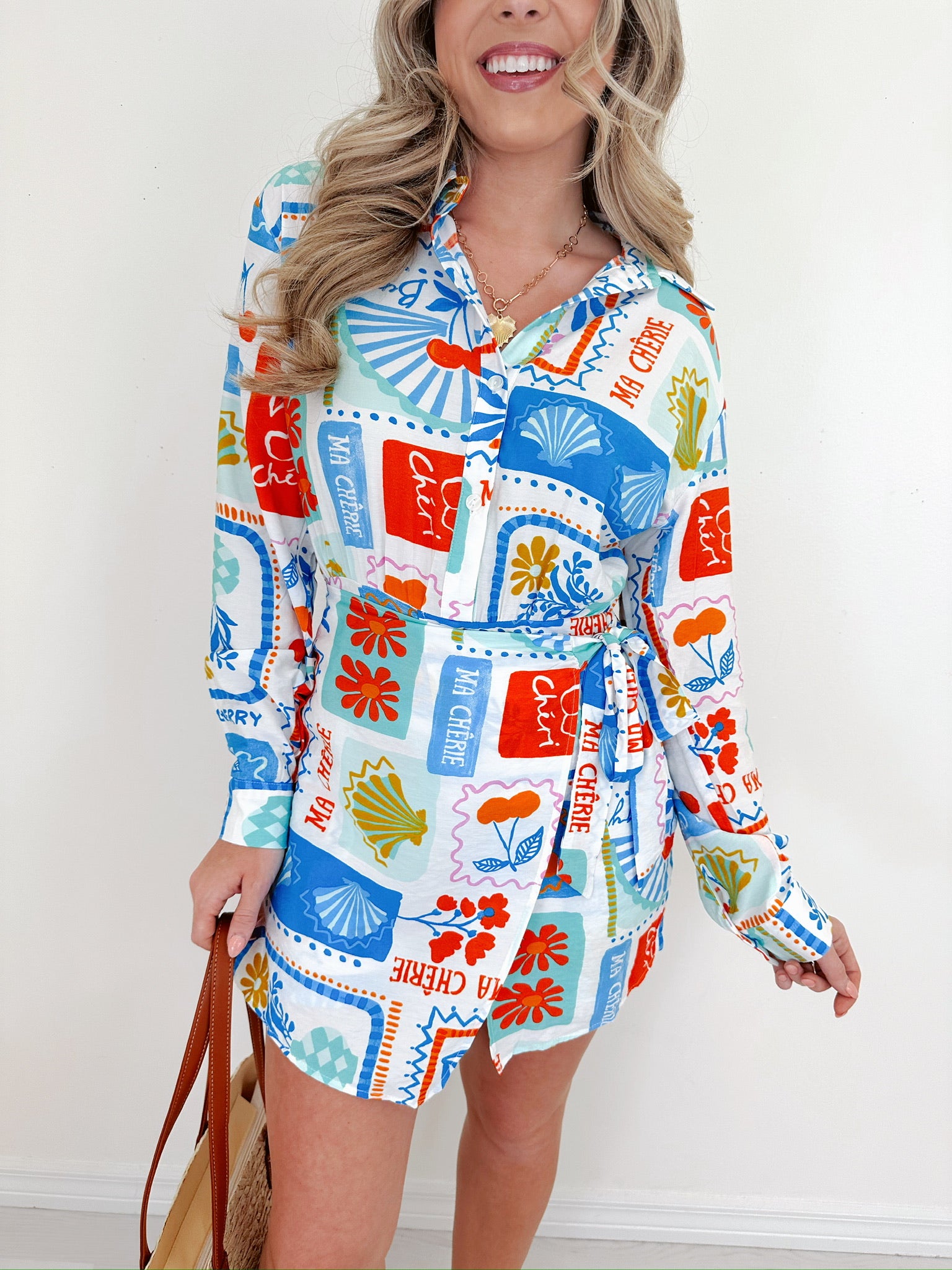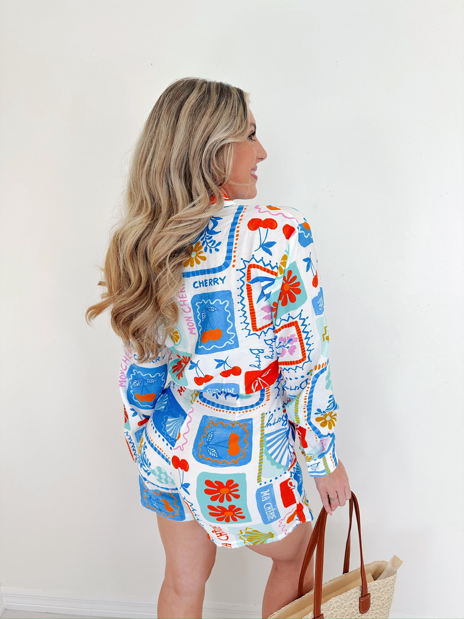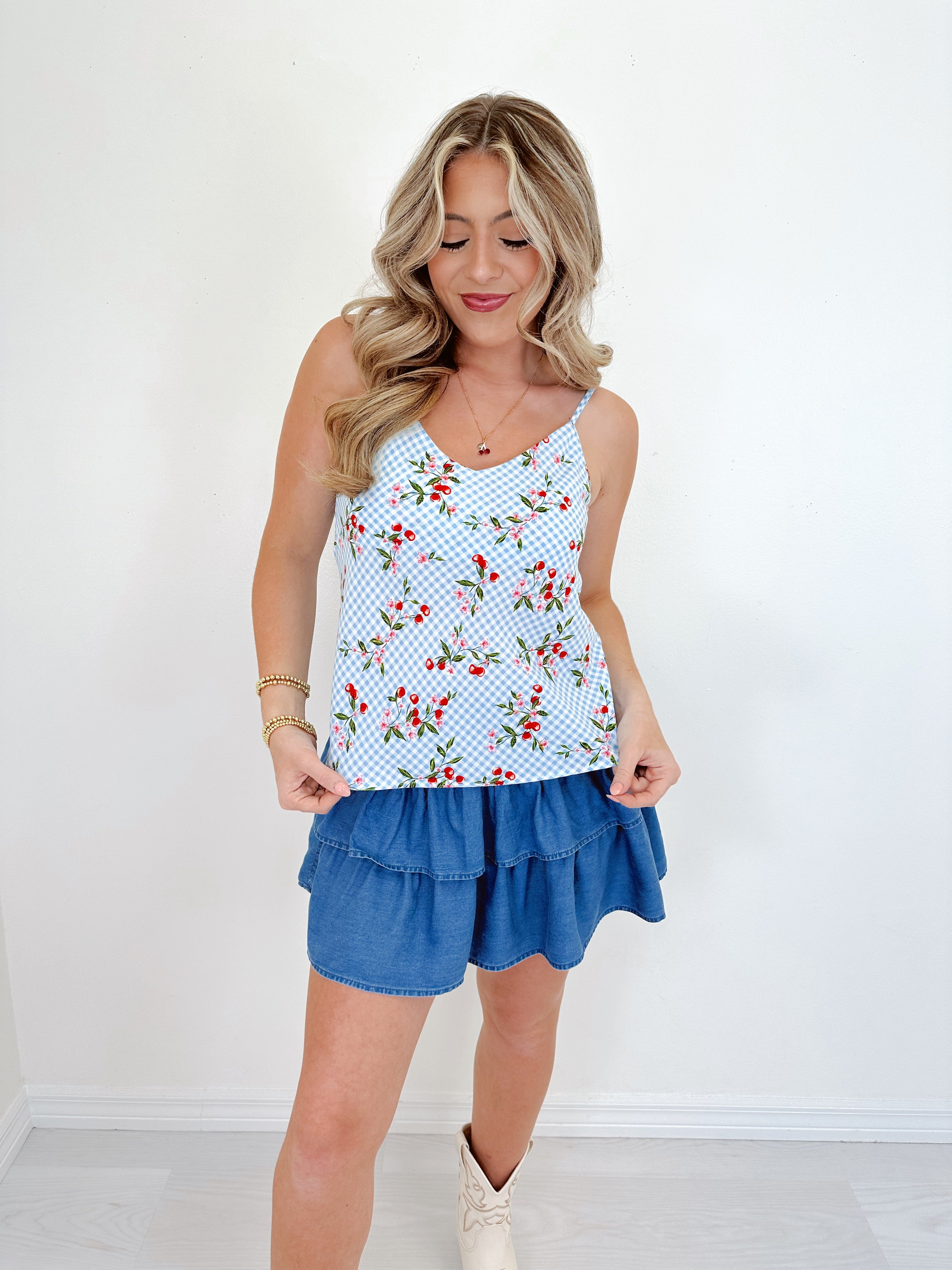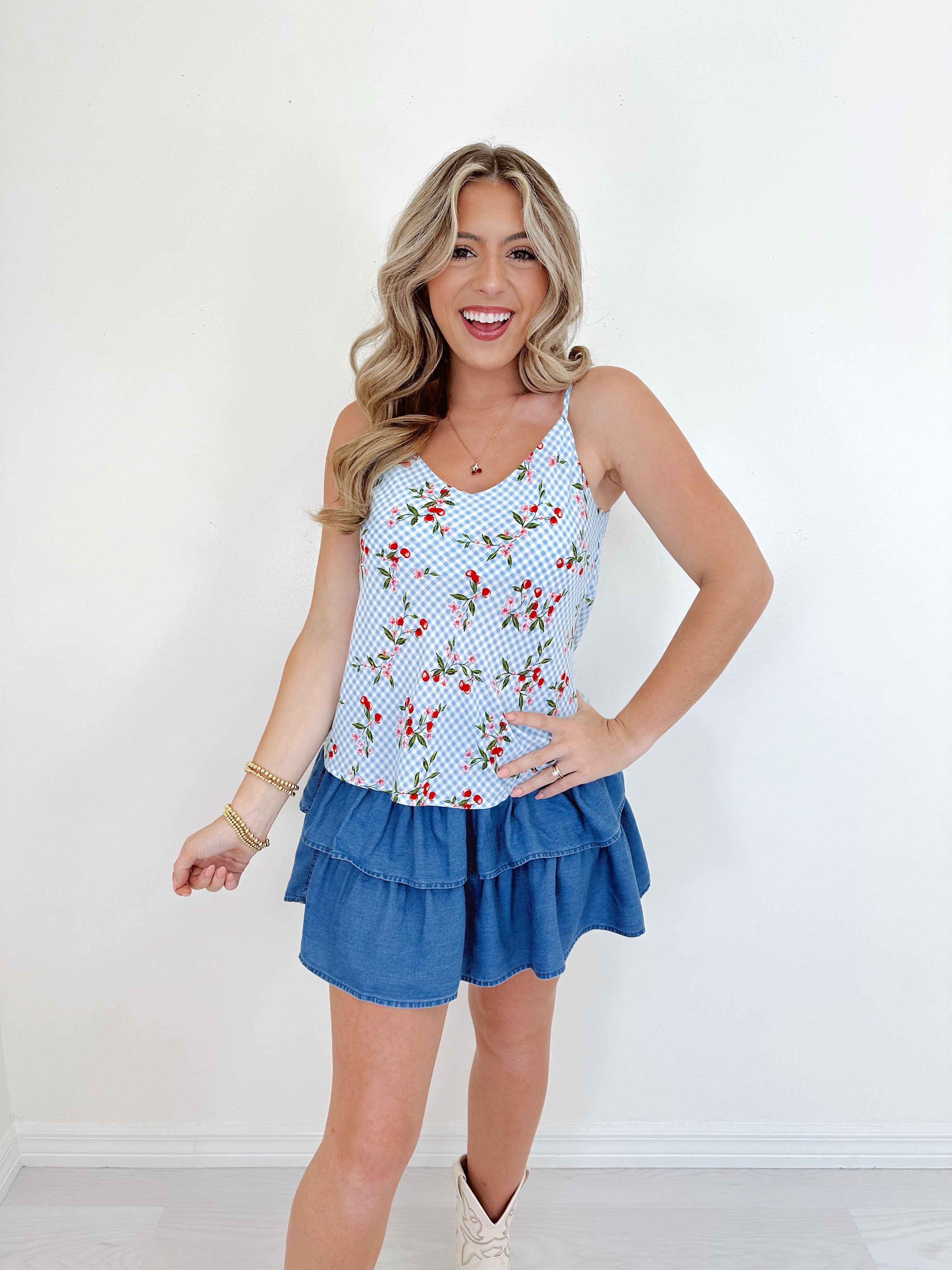 Naturally Sweet Fruit Print Mini Dress - Blue