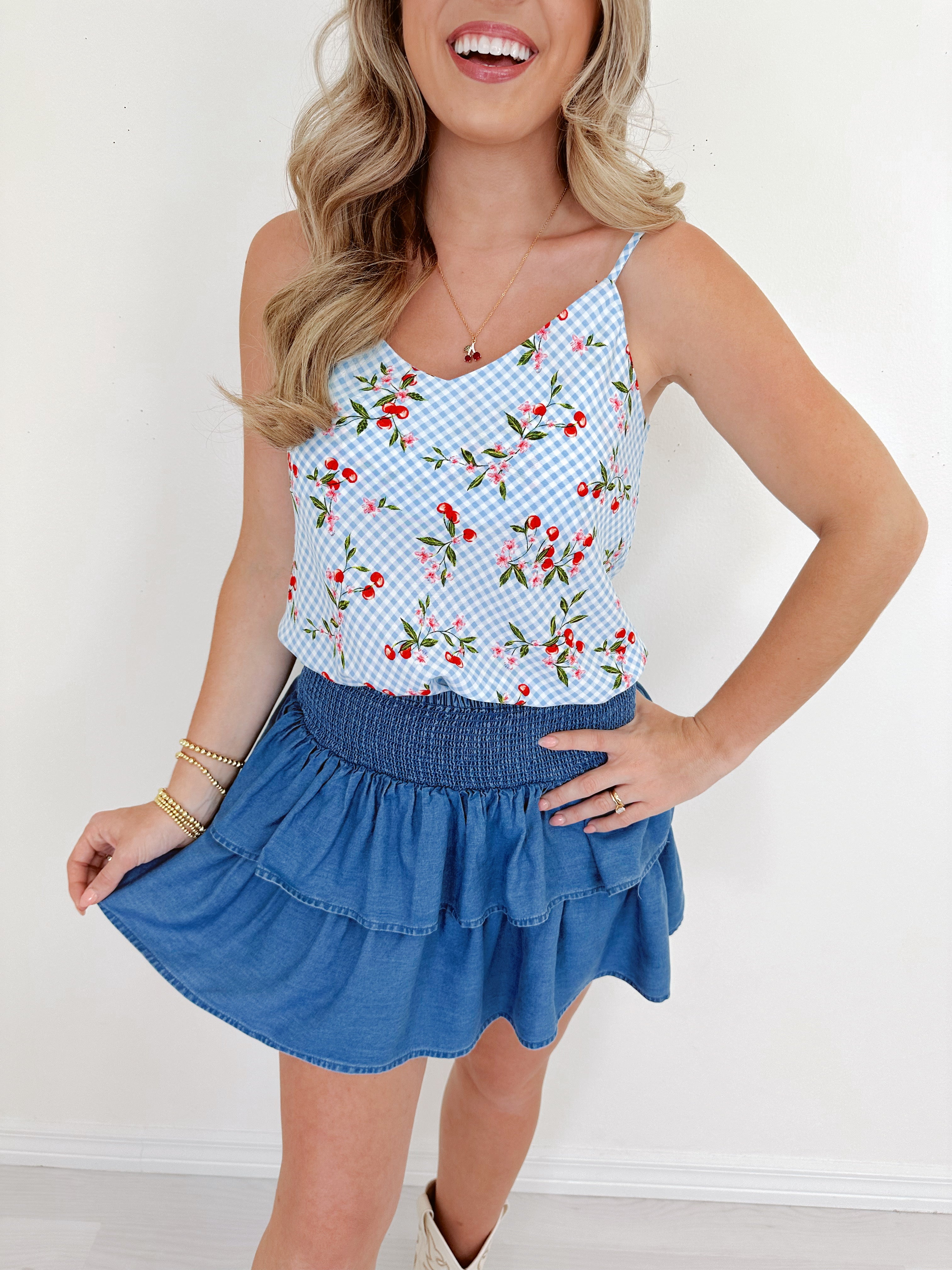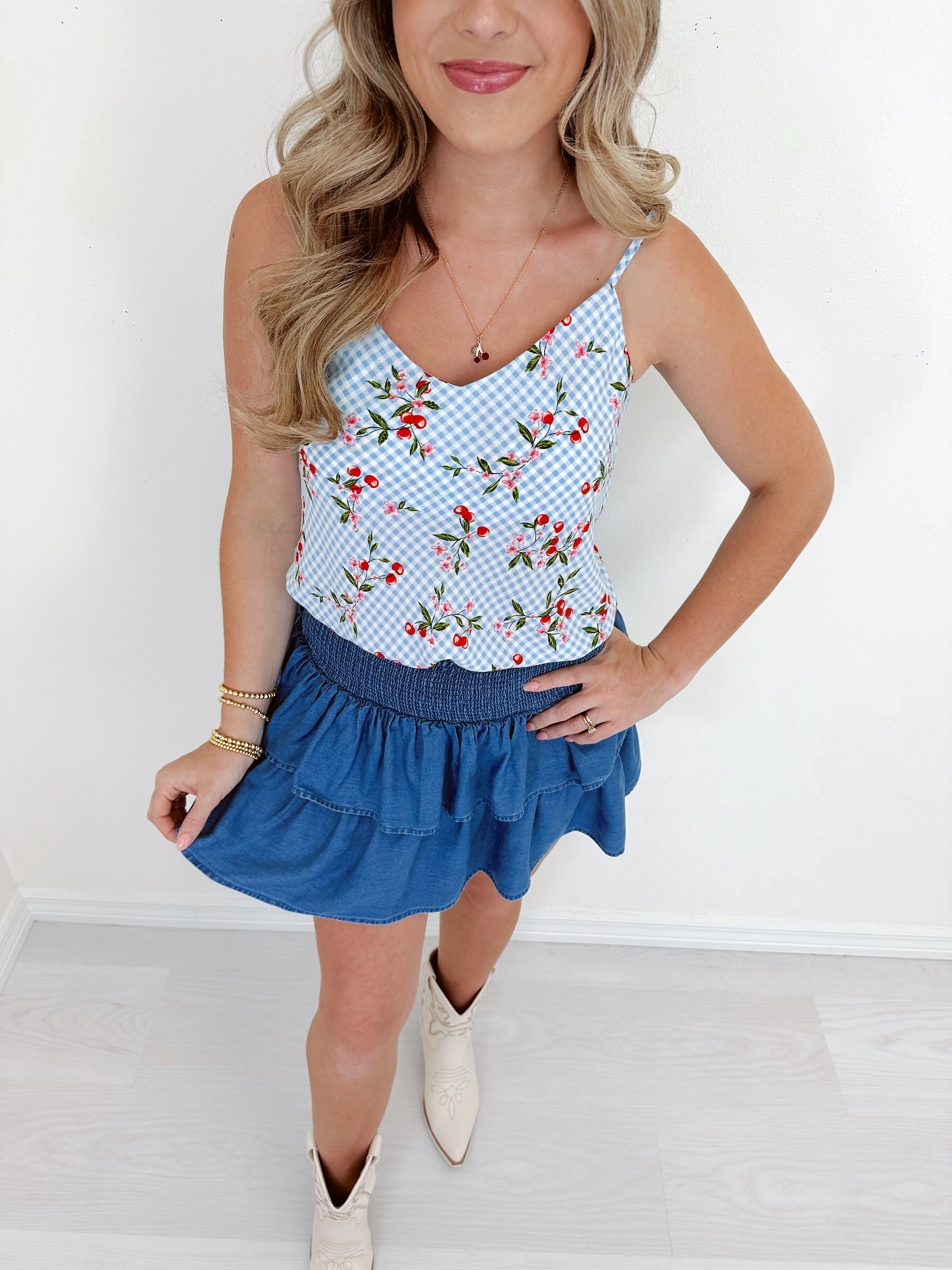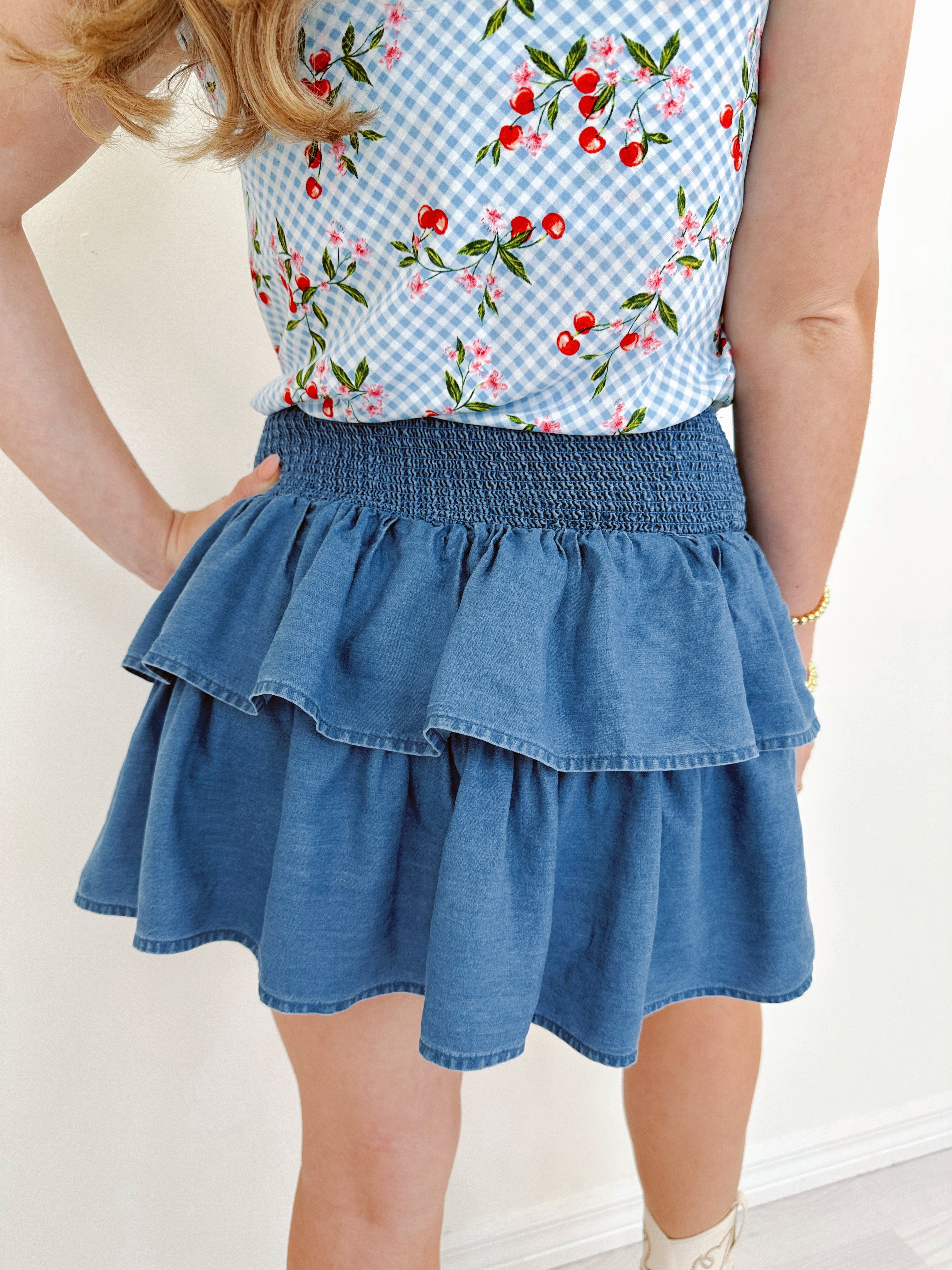 Sunnie Smocked Waist Mini Skirt - Blue Denim