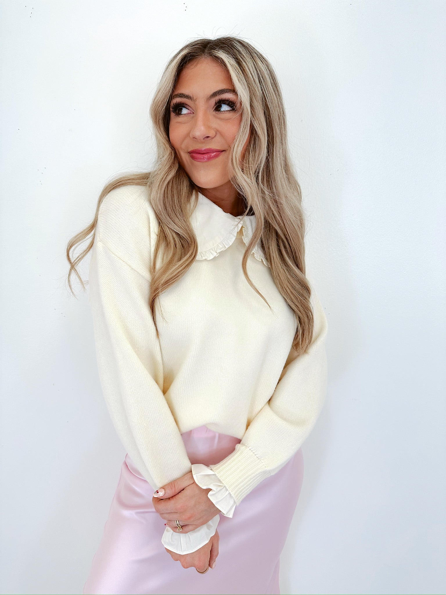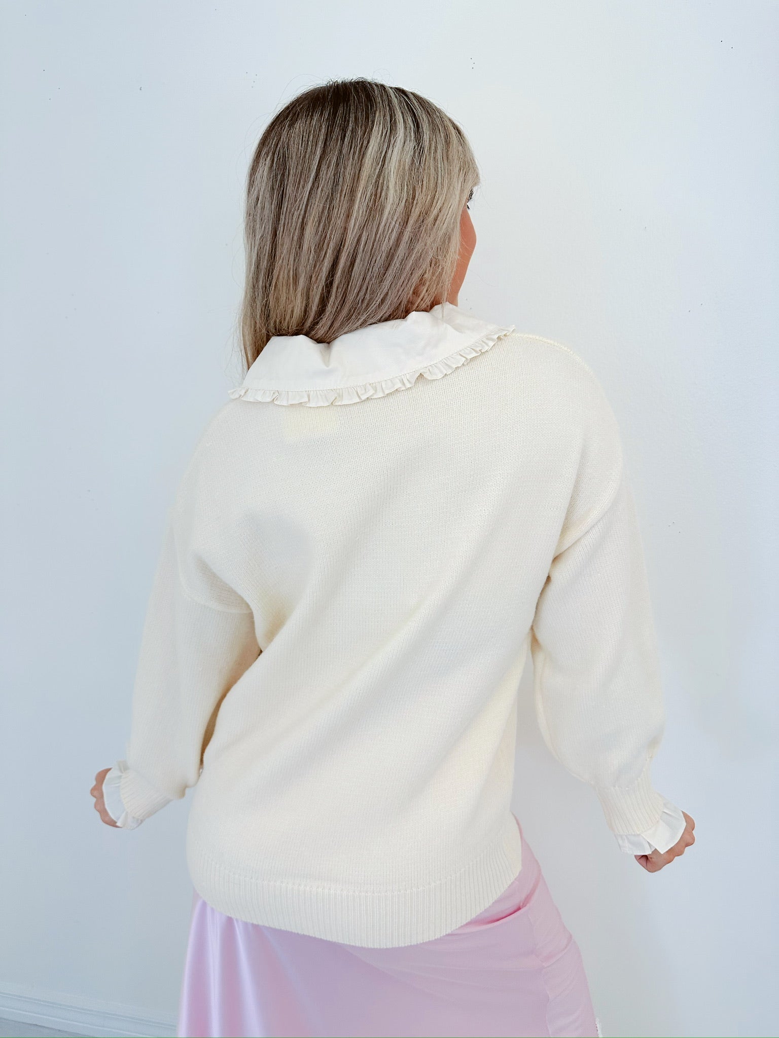 Elouise Elevated Ruffle Collar Sweater - Ivory