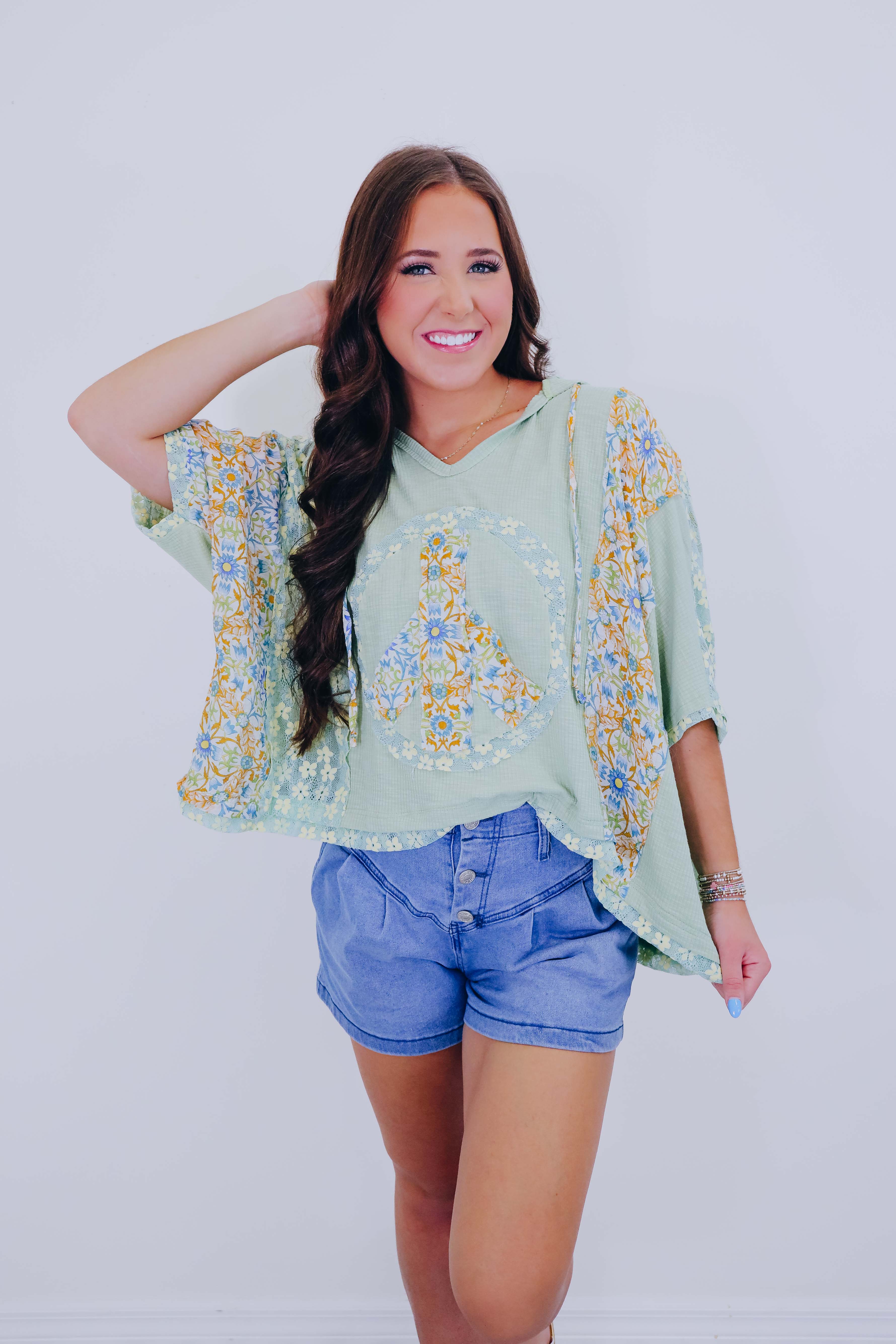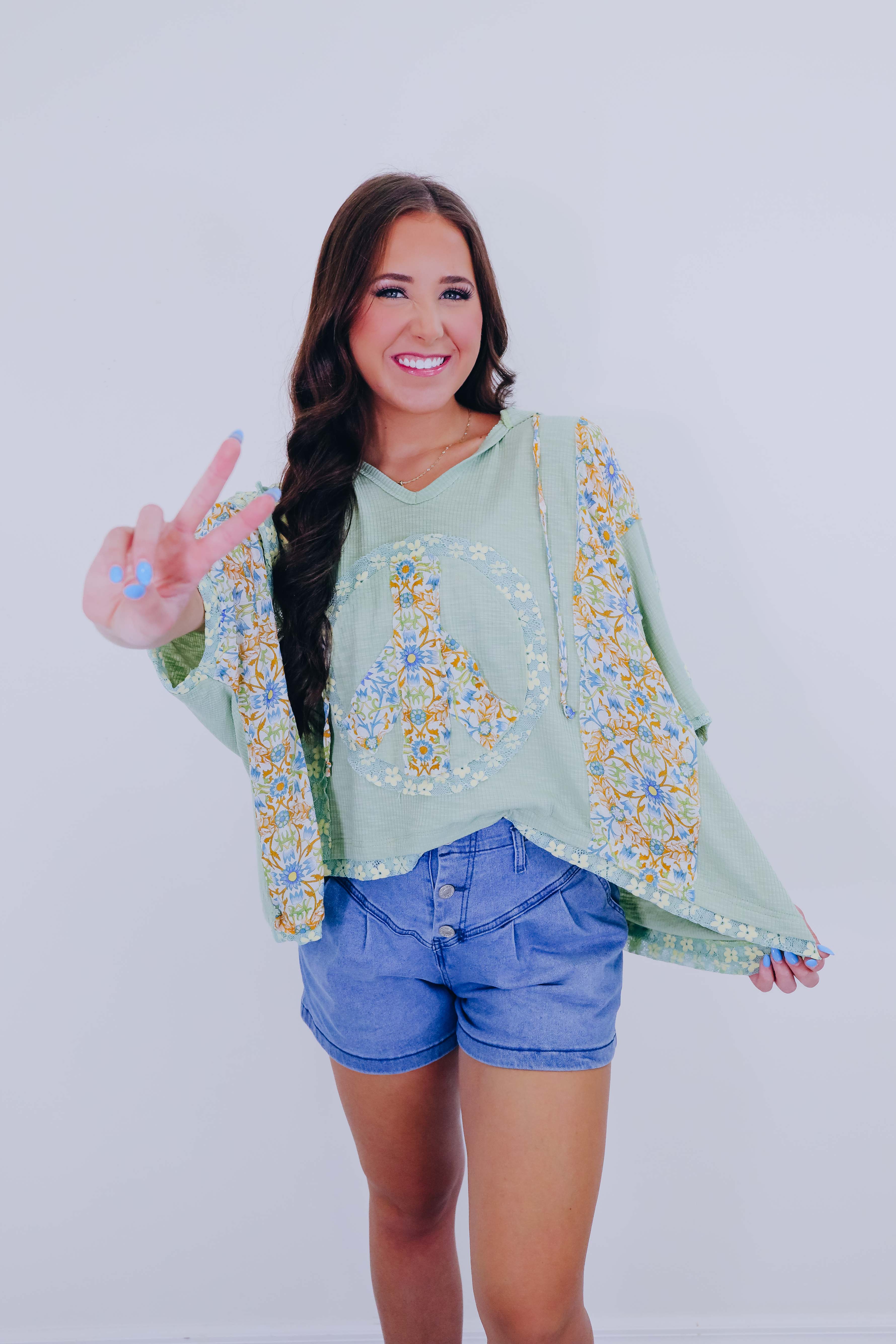 Harmony V-Neck Floral Hoodie Top By POL- Sage