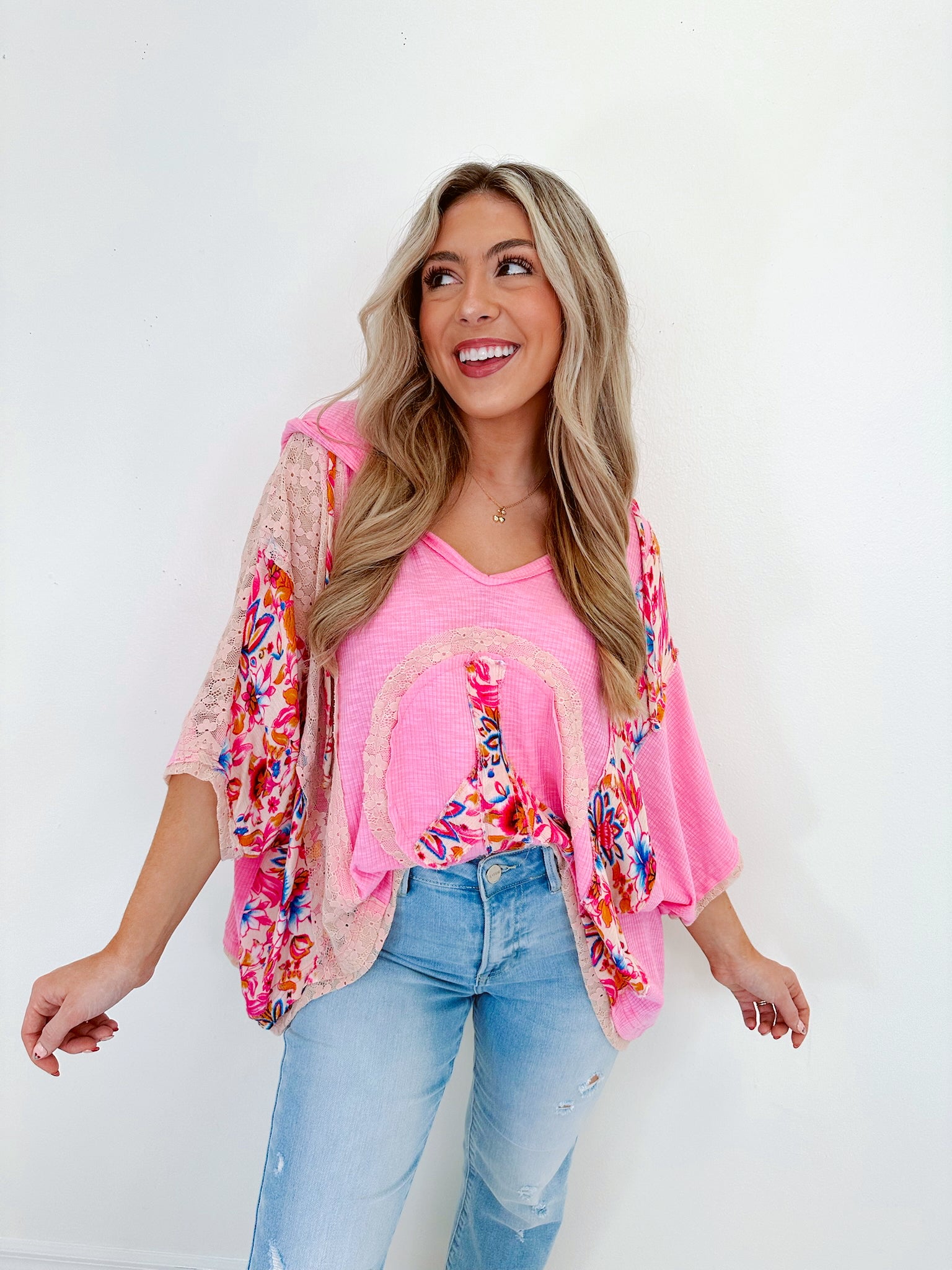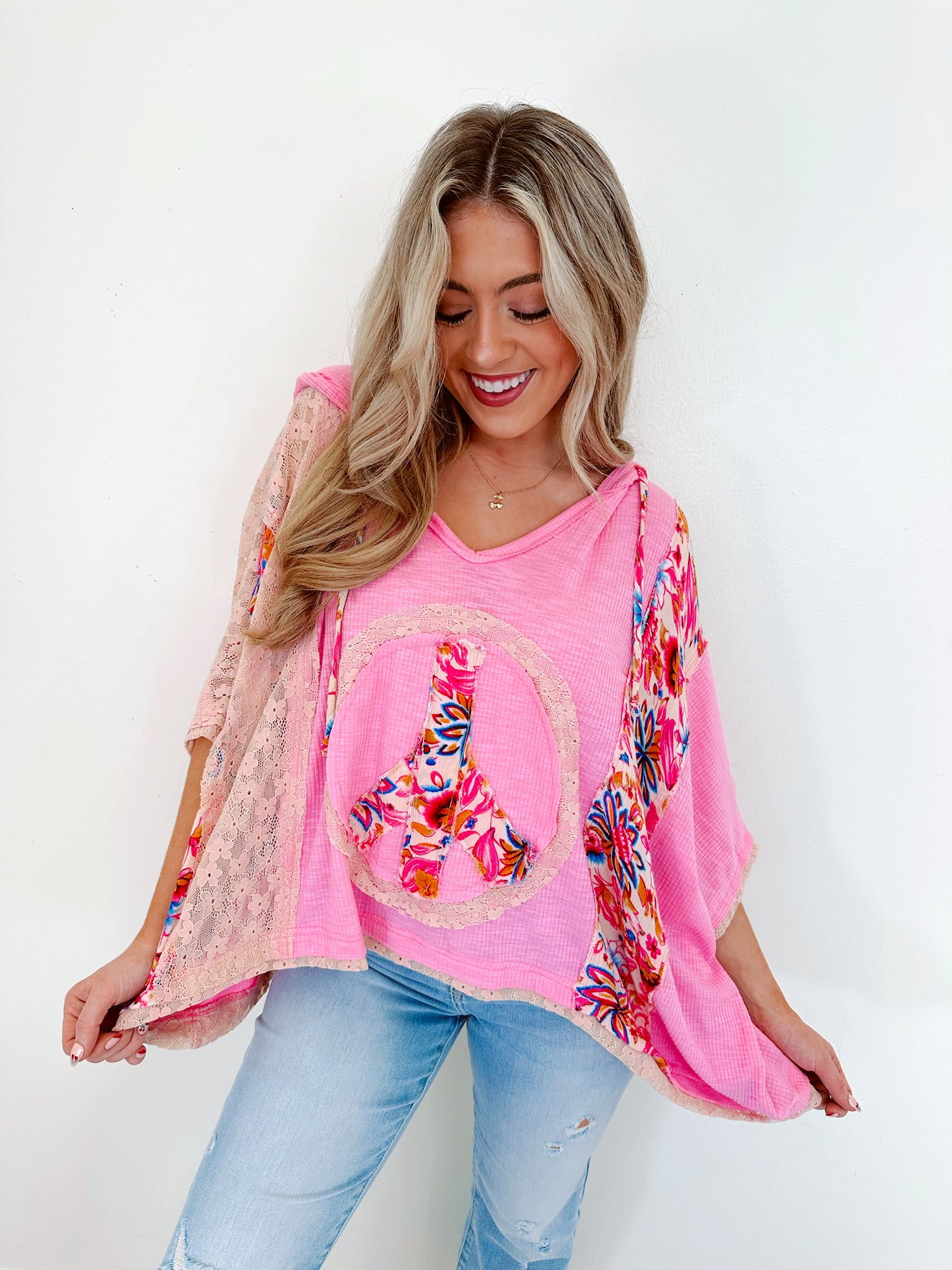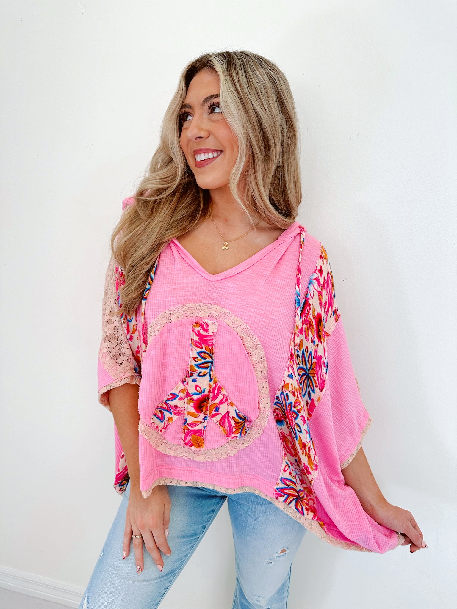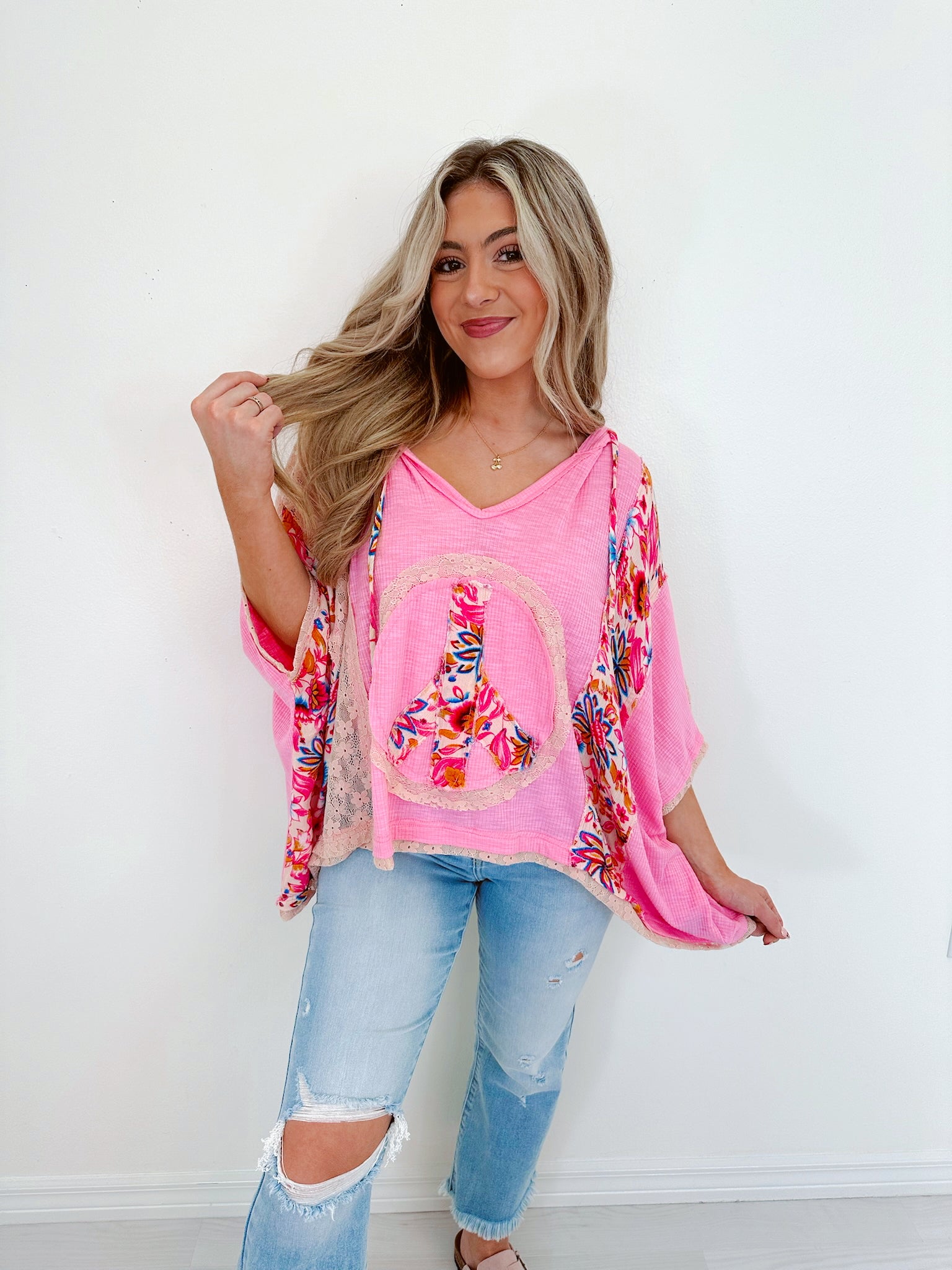 Harmony V-Neck Floral Hoodie Top By POL