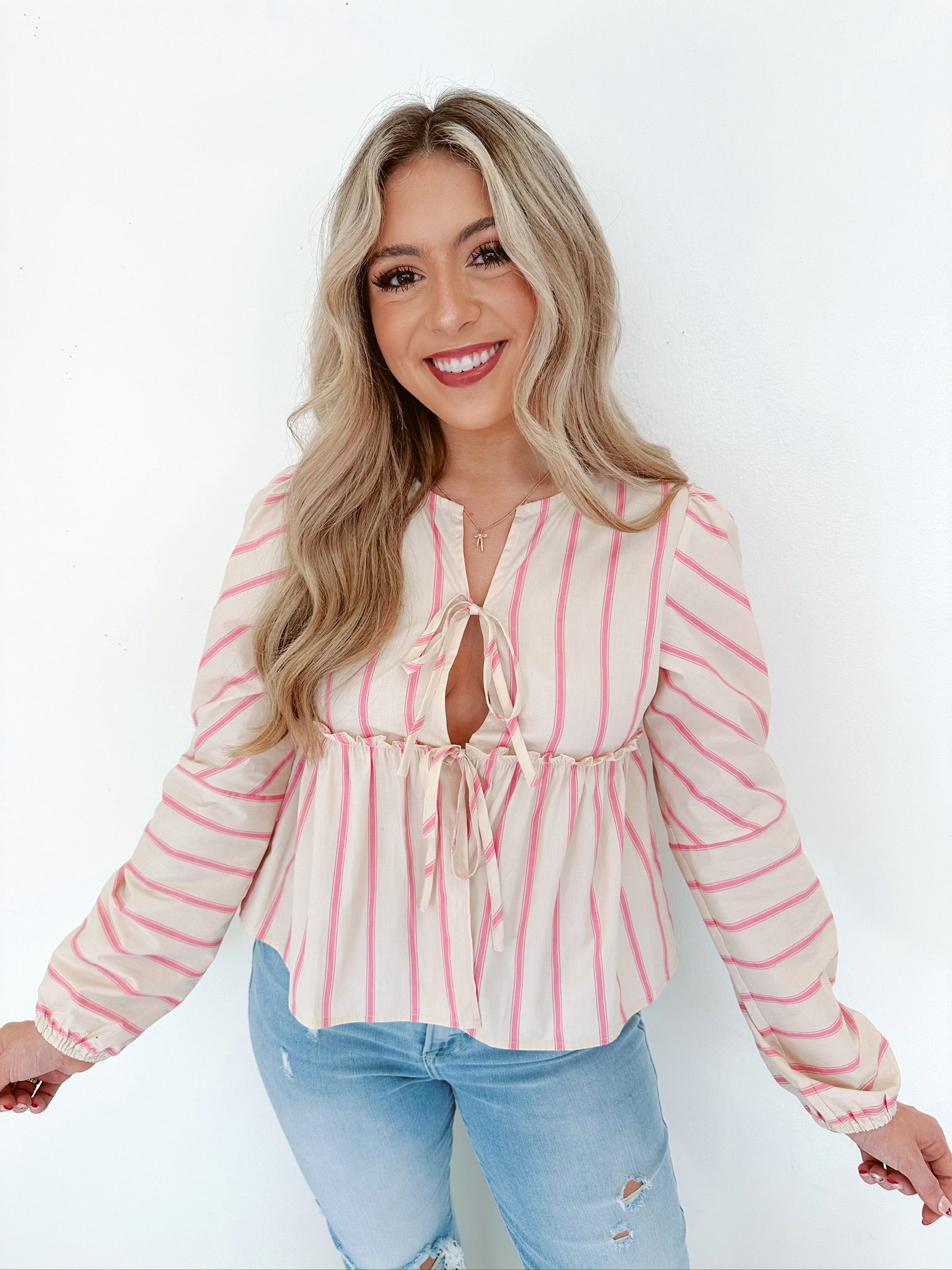 Stand Out Striped Bow Front Crop Top