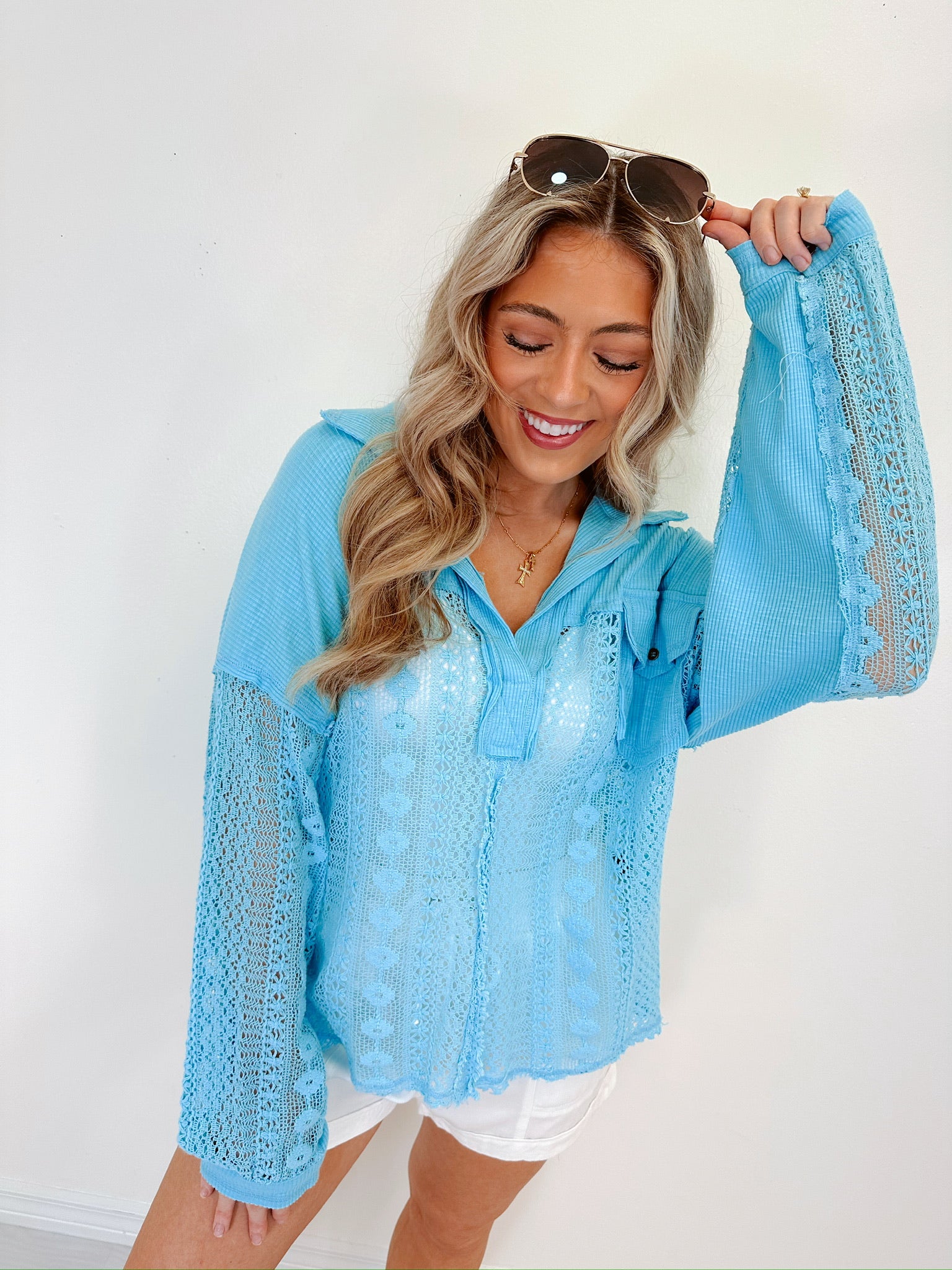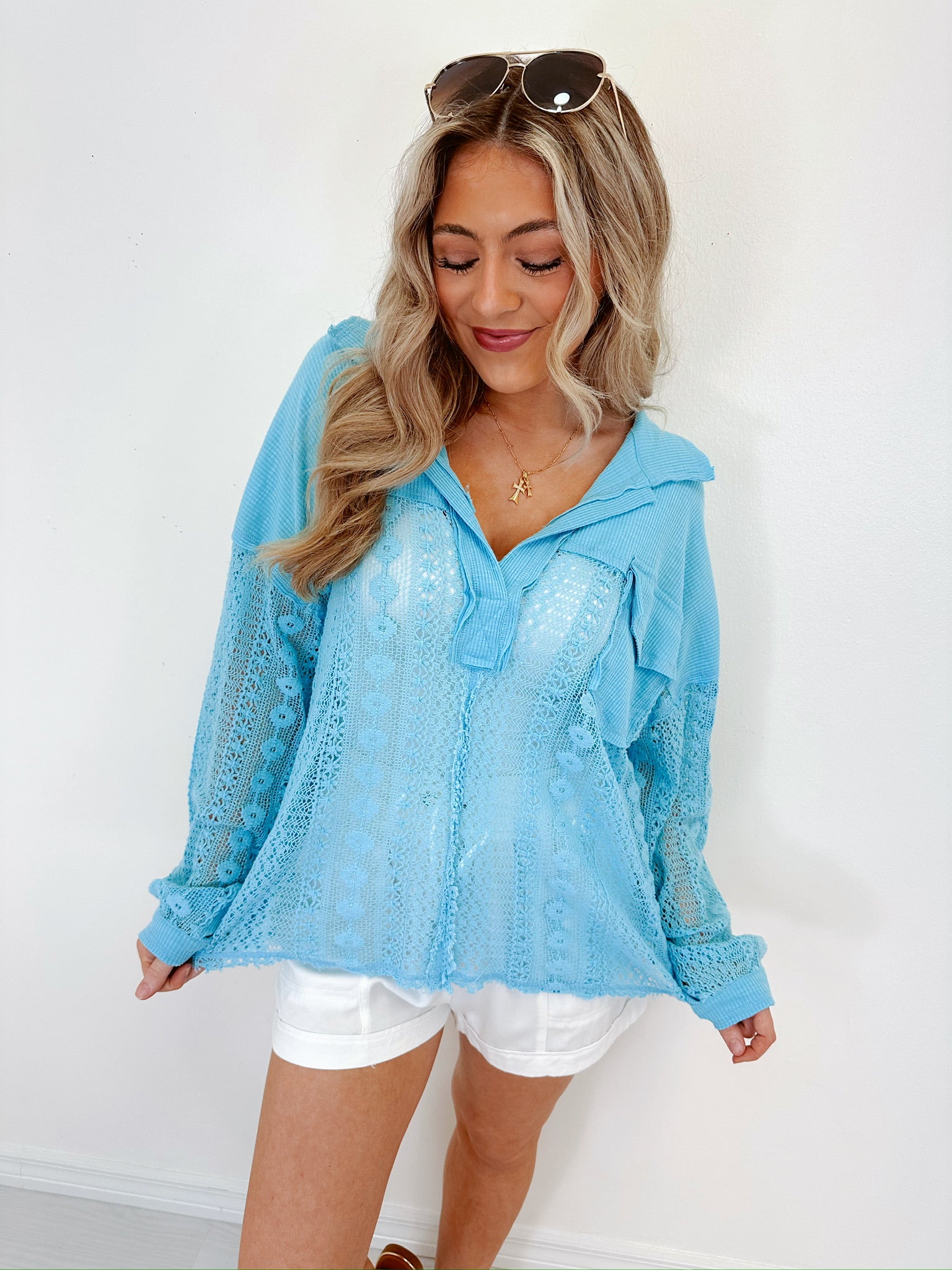 Peek-A-Boo Lace Top - Blue