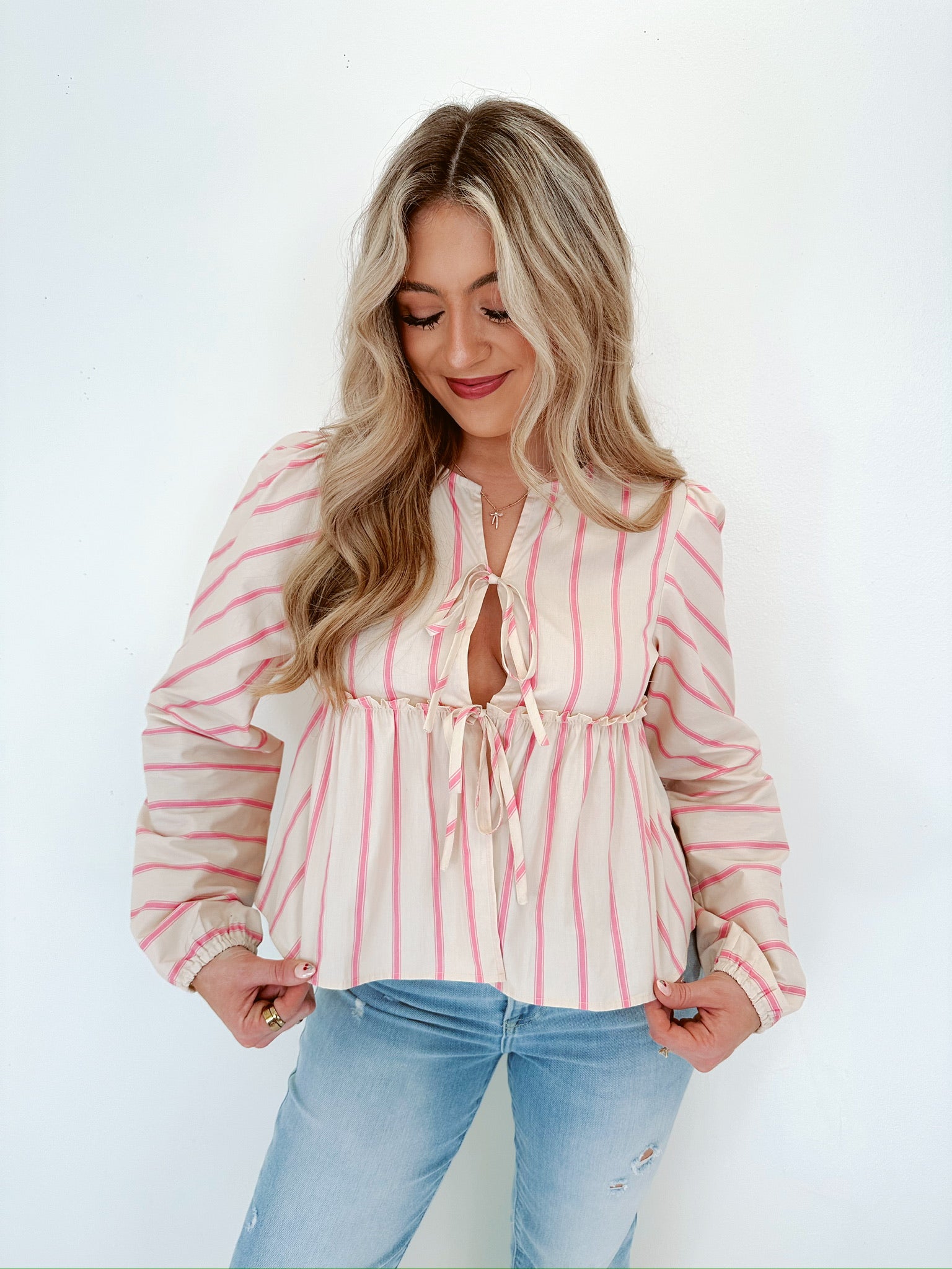 Amelia Embroidered Tassel Trim Top - Blush