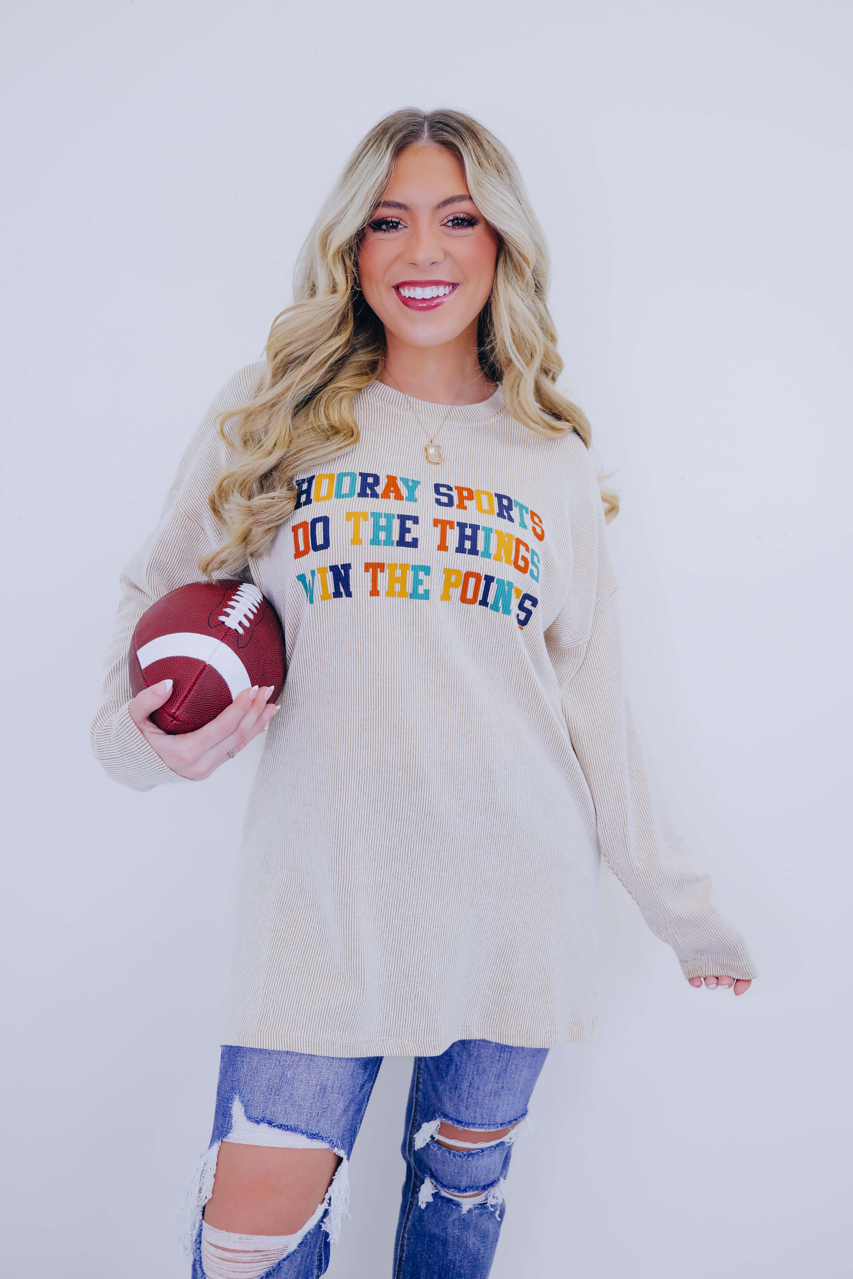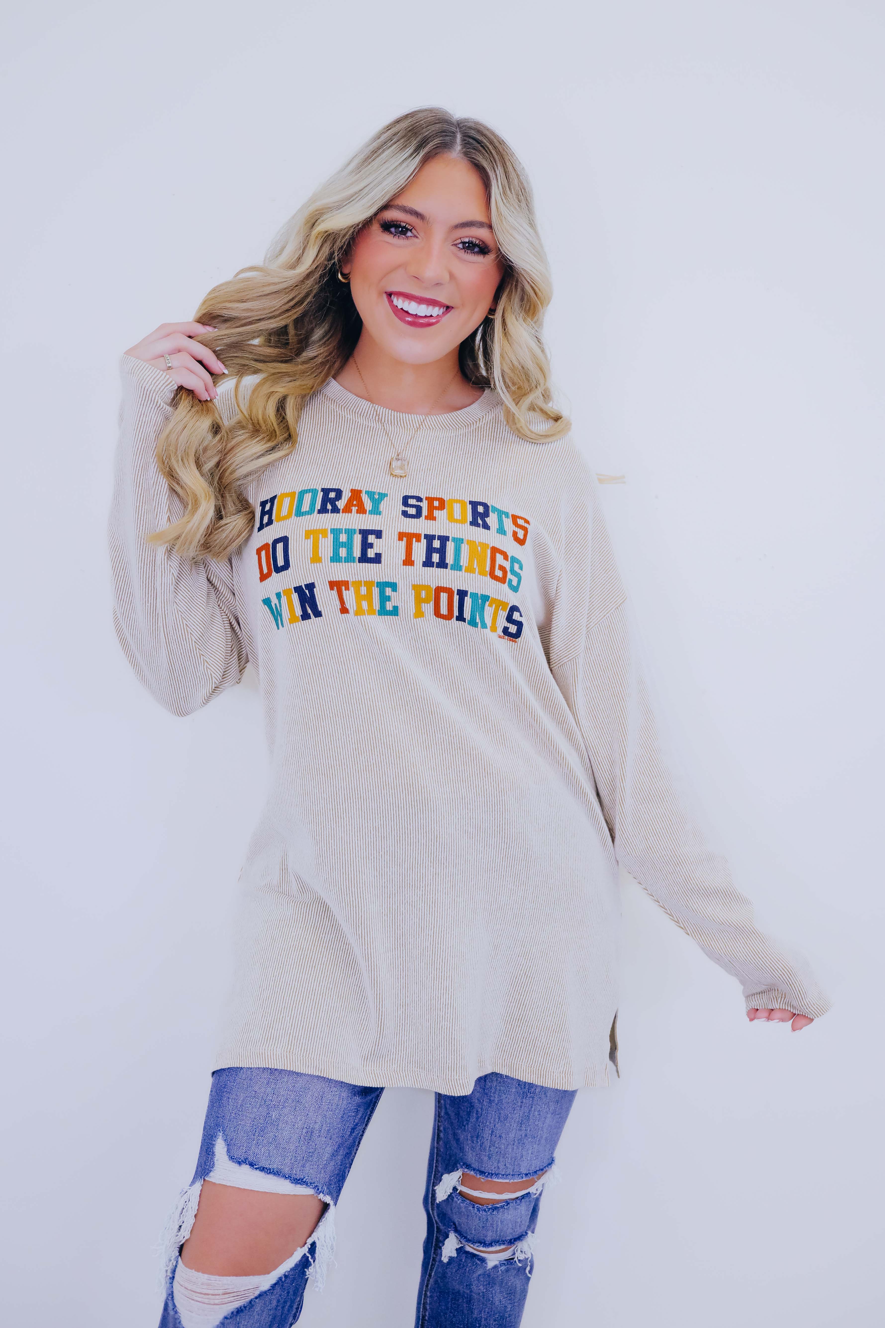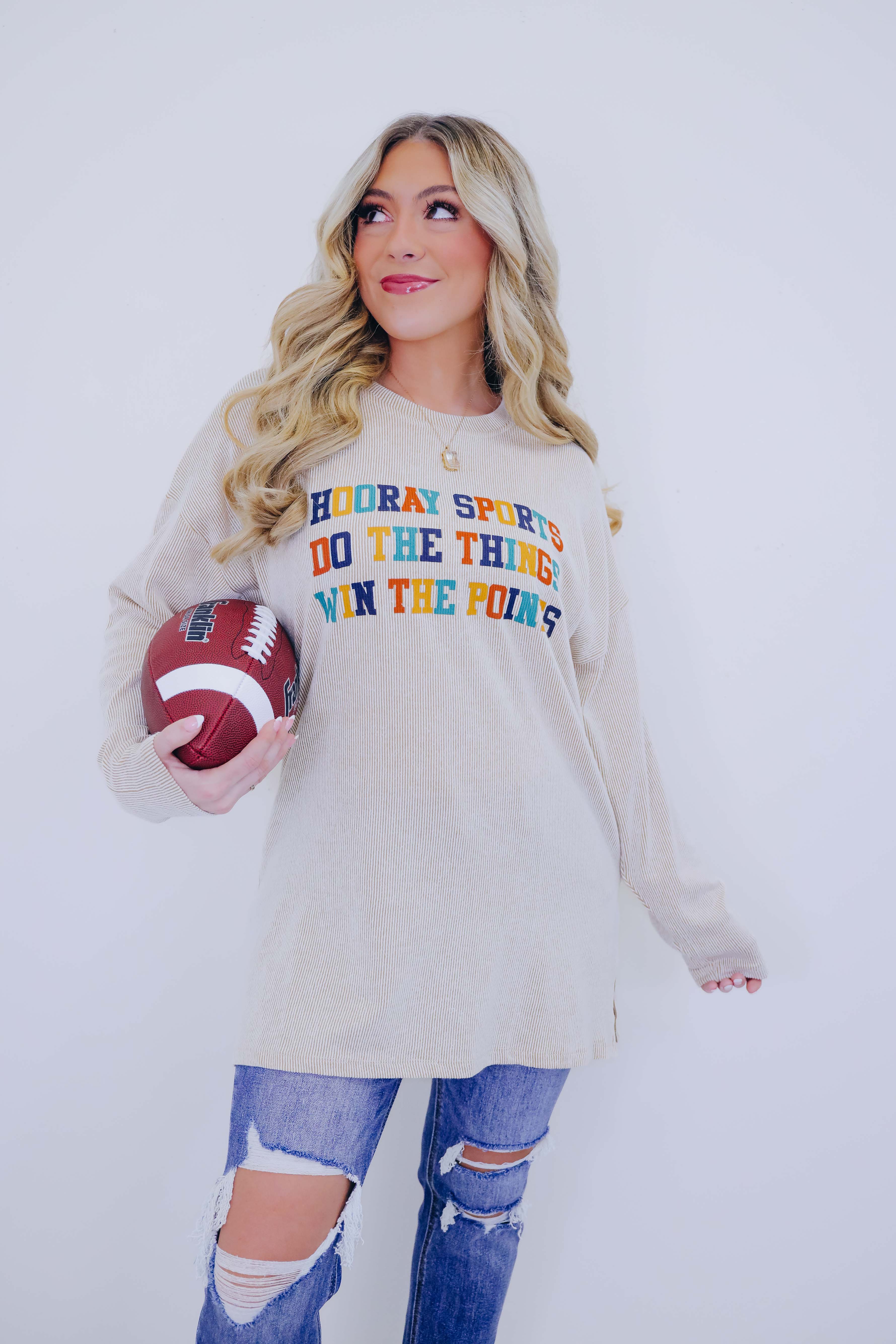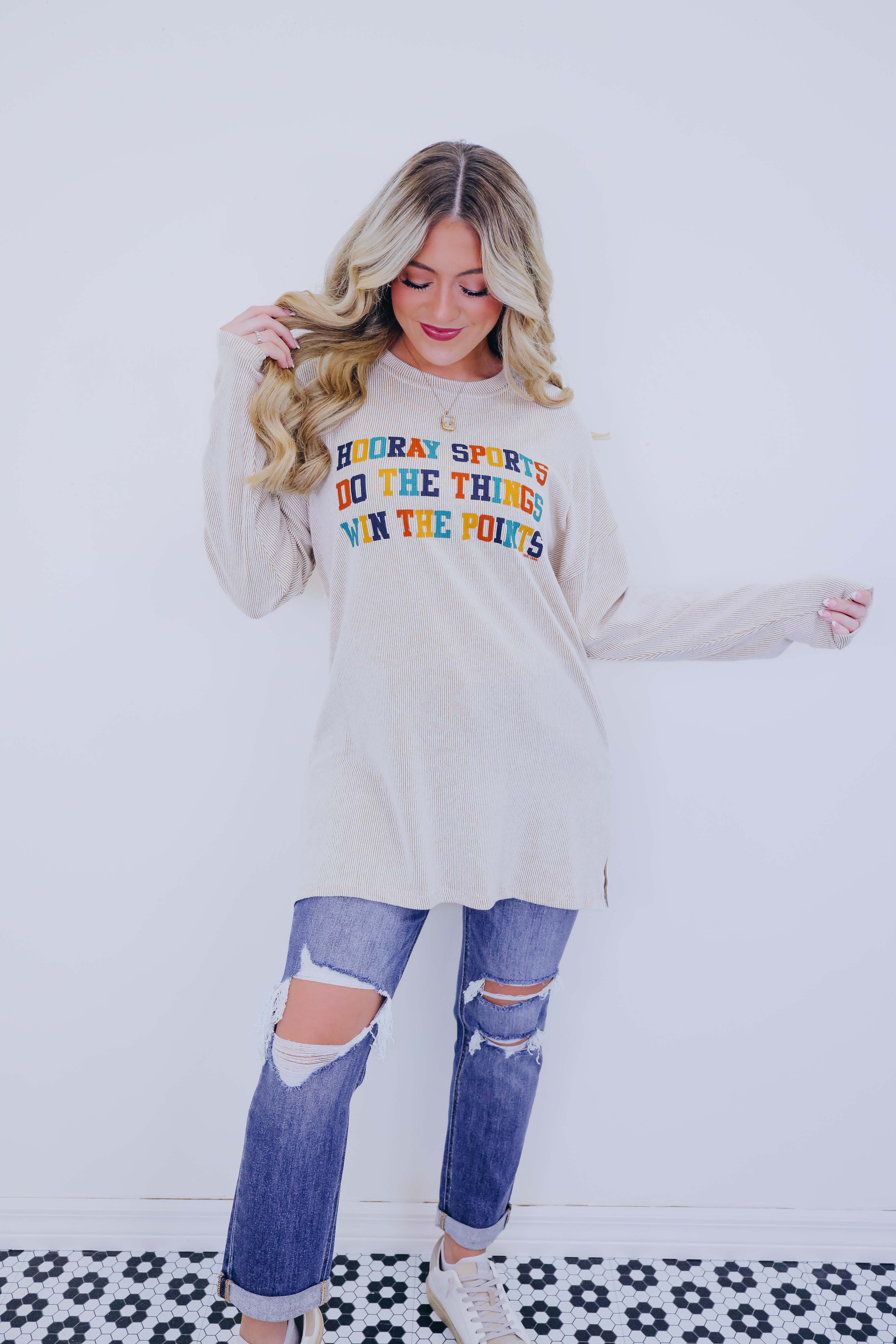 Hooray Sports Ribbed Graphic Tunic - Beige