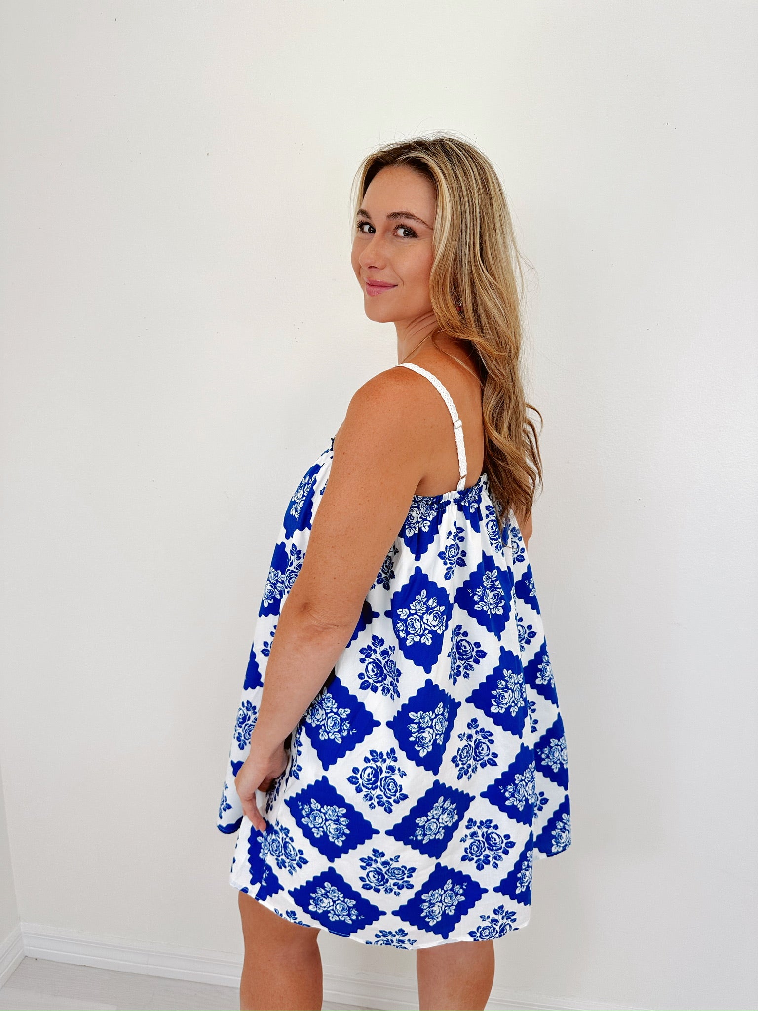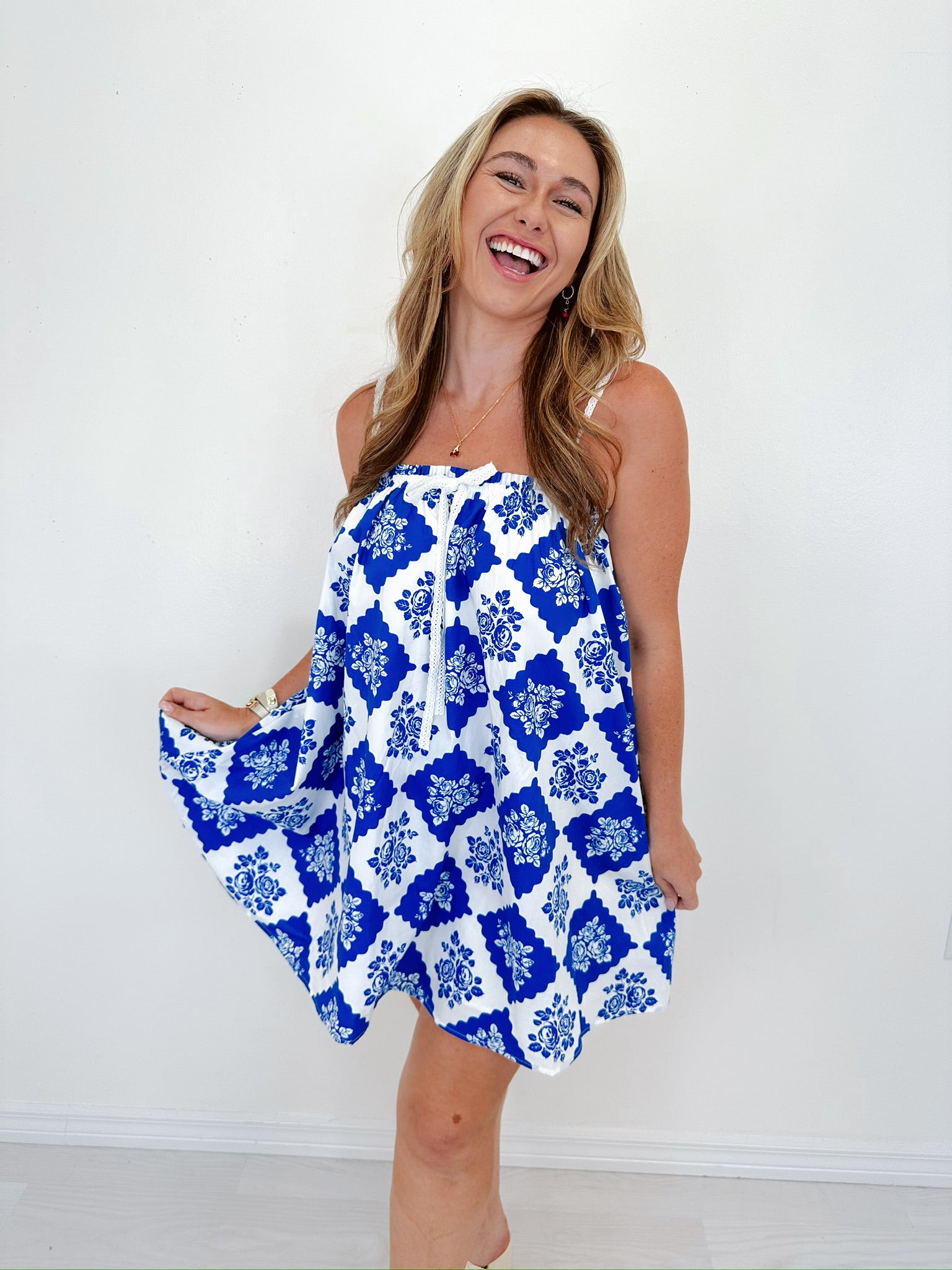 Bloom & Breeze Lace Strap Mini Dress