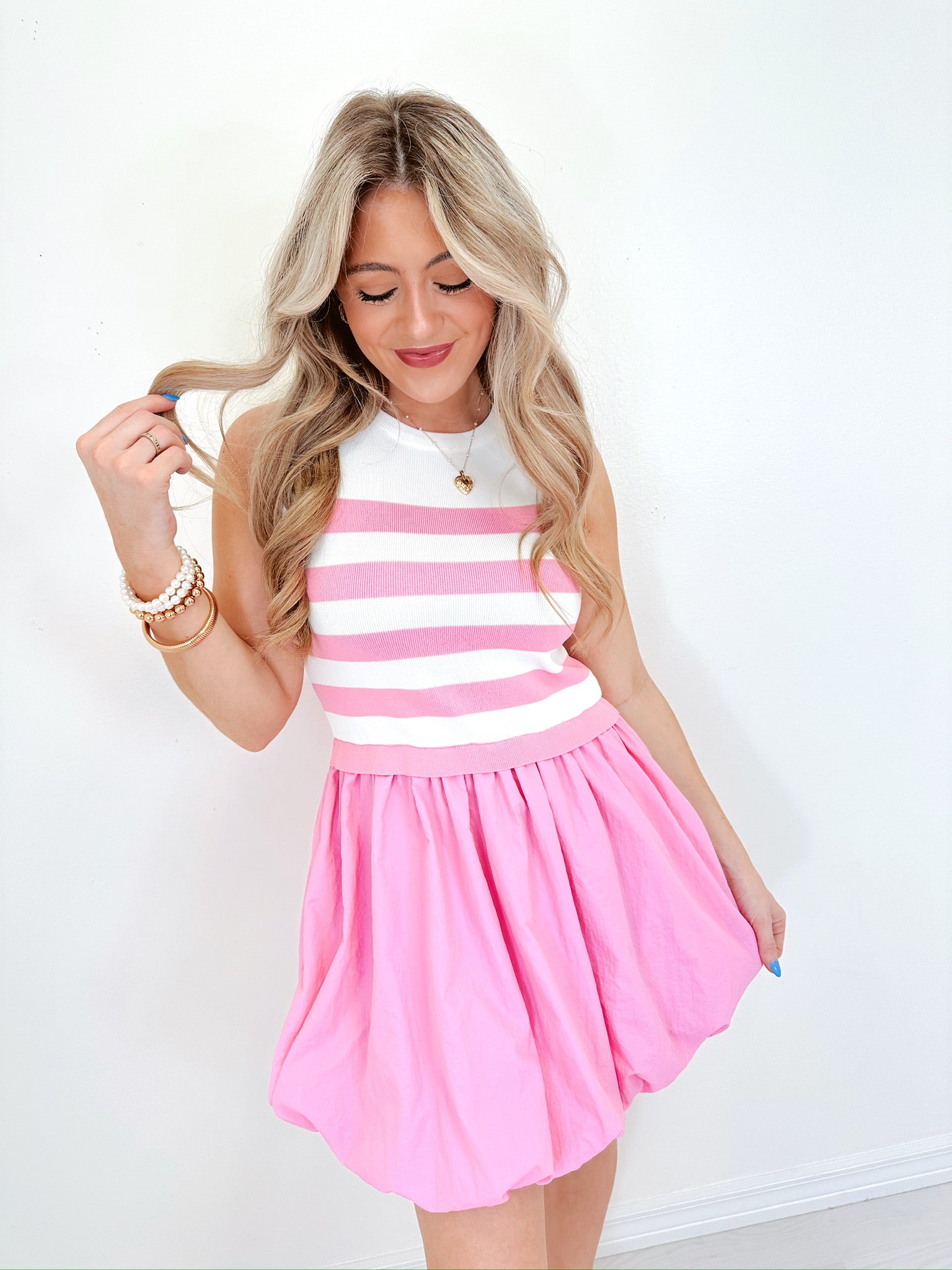 Bexley Bubble Hem Mini Dress - Pink
