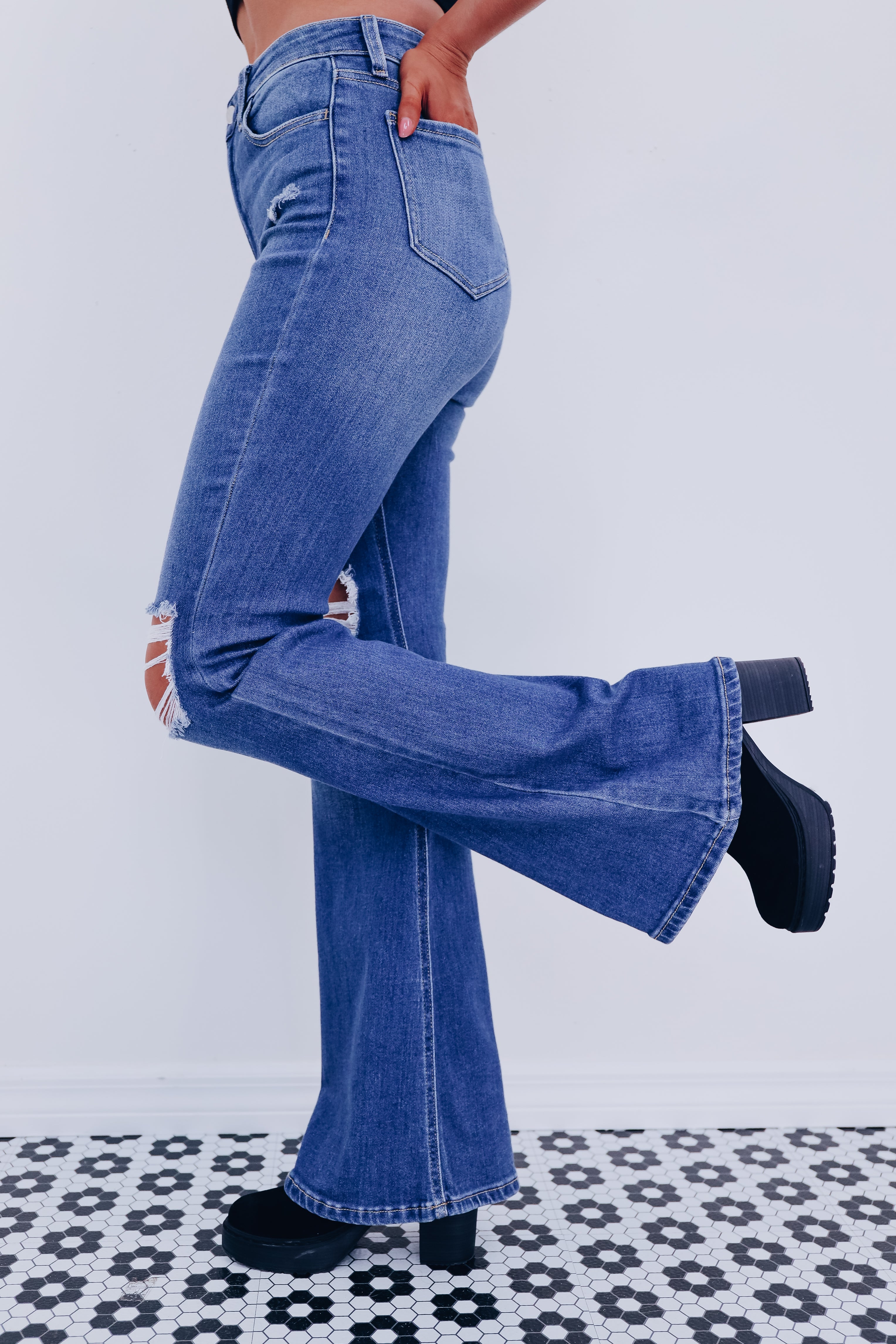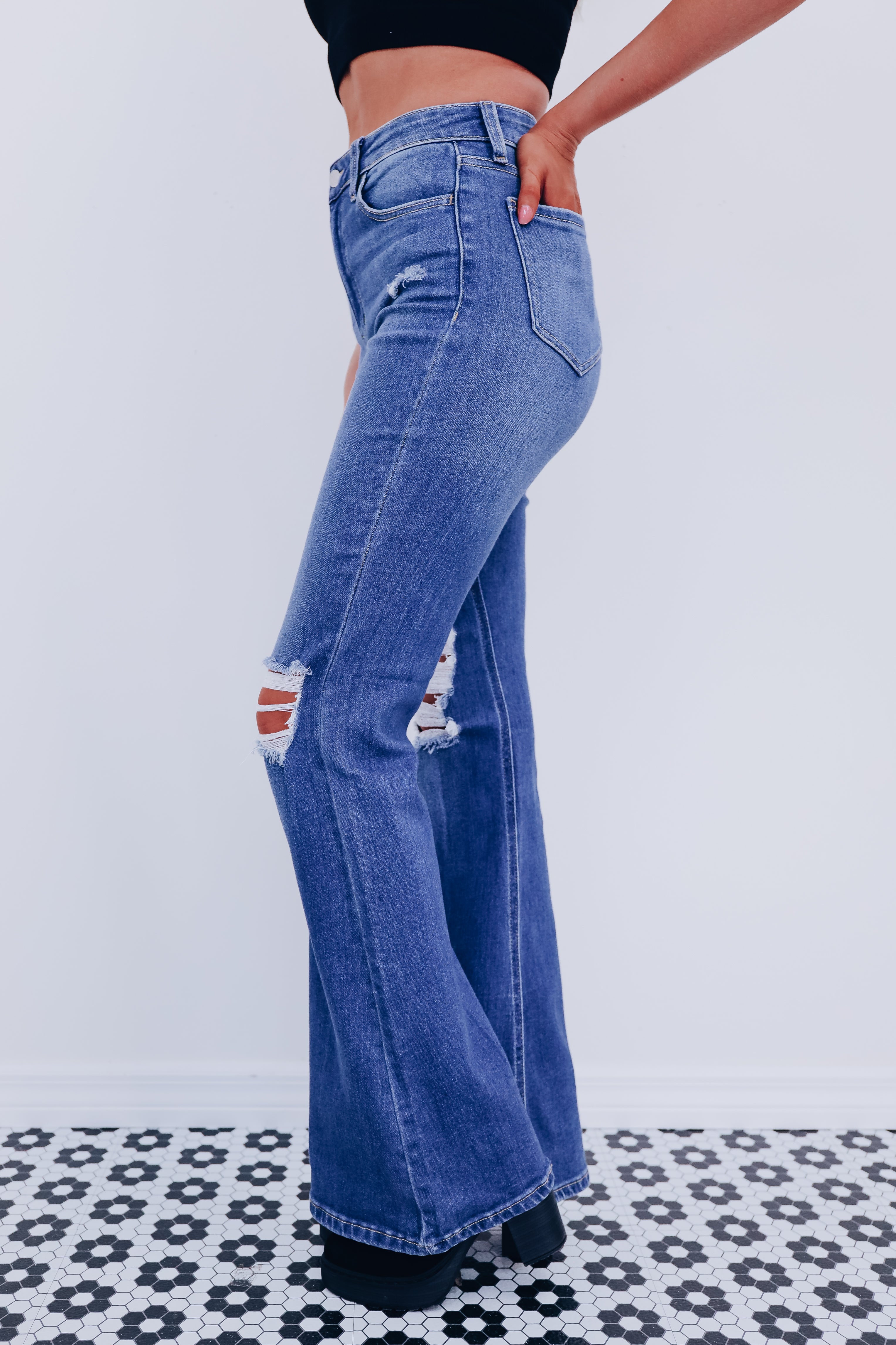 Davi Distressed Flare Jeans - Medium Wash