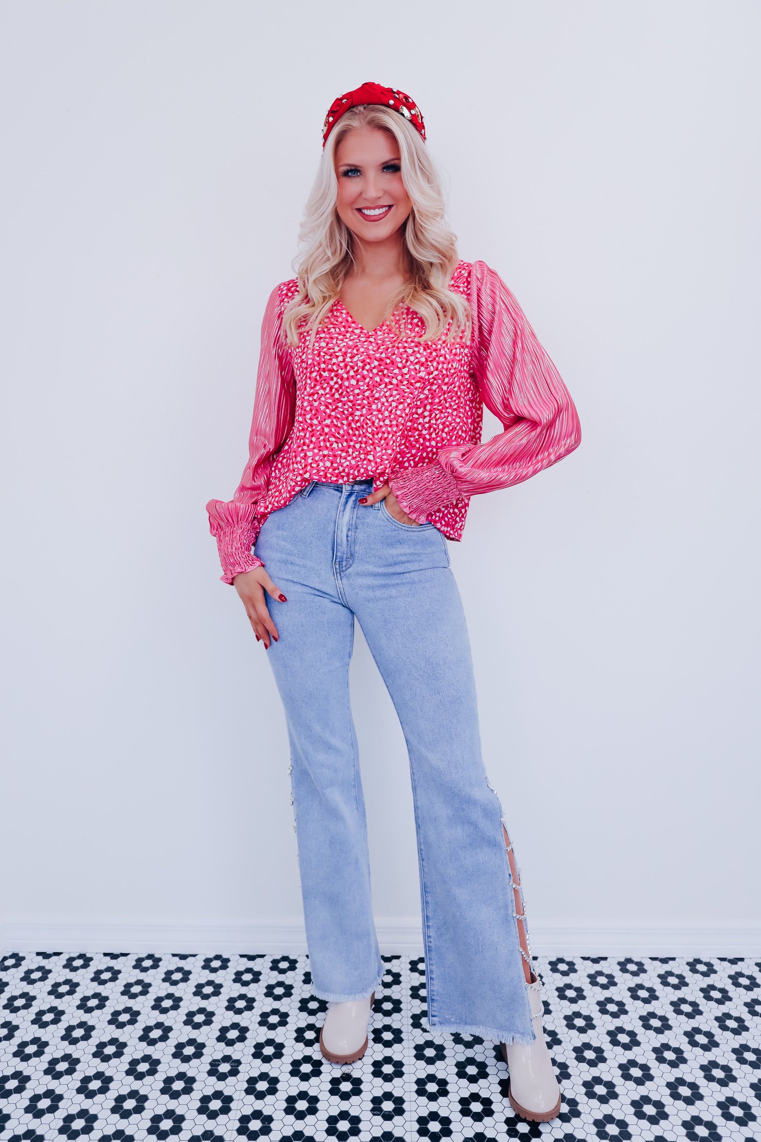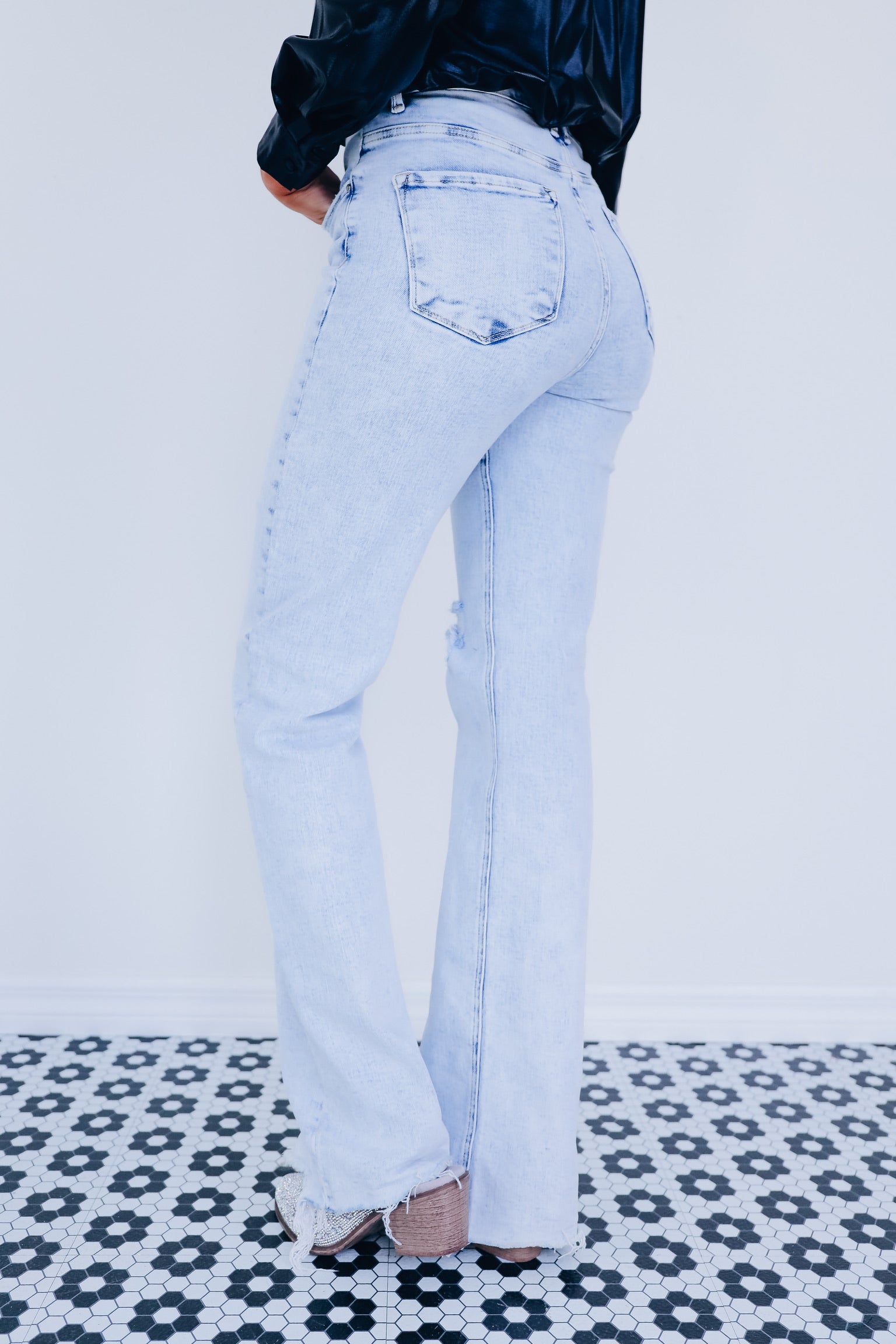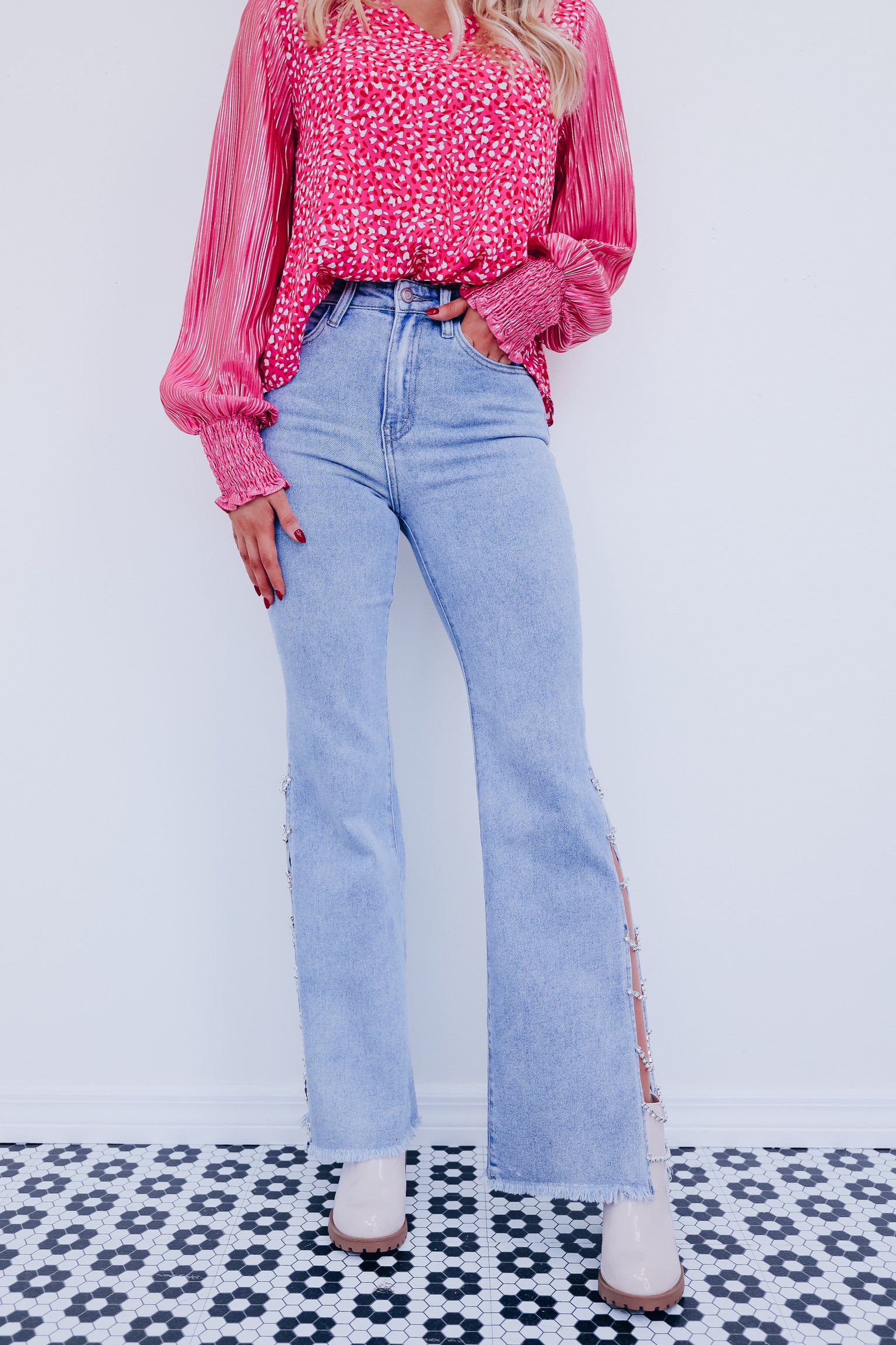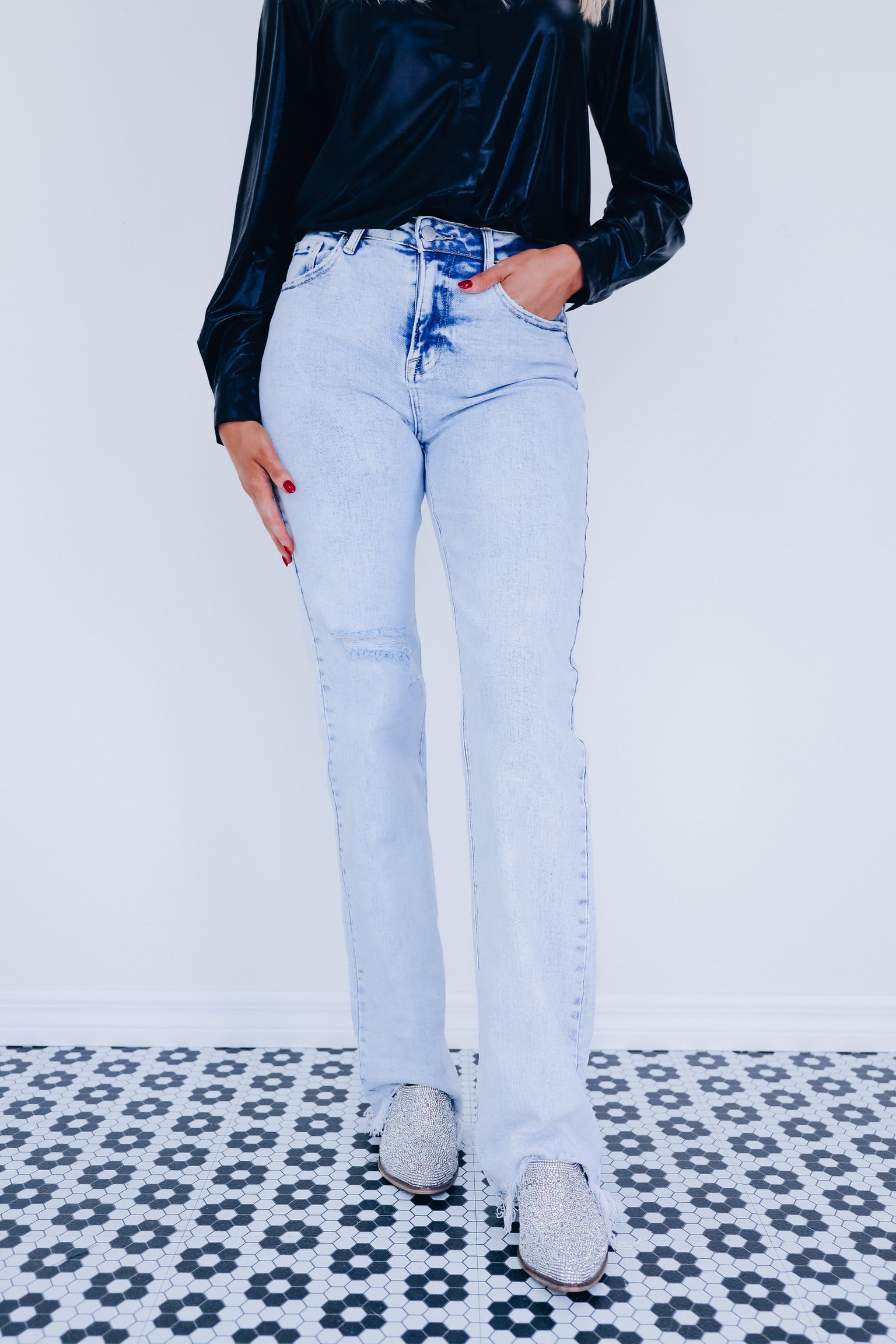 Crystal Side Slit High Rise Jeans