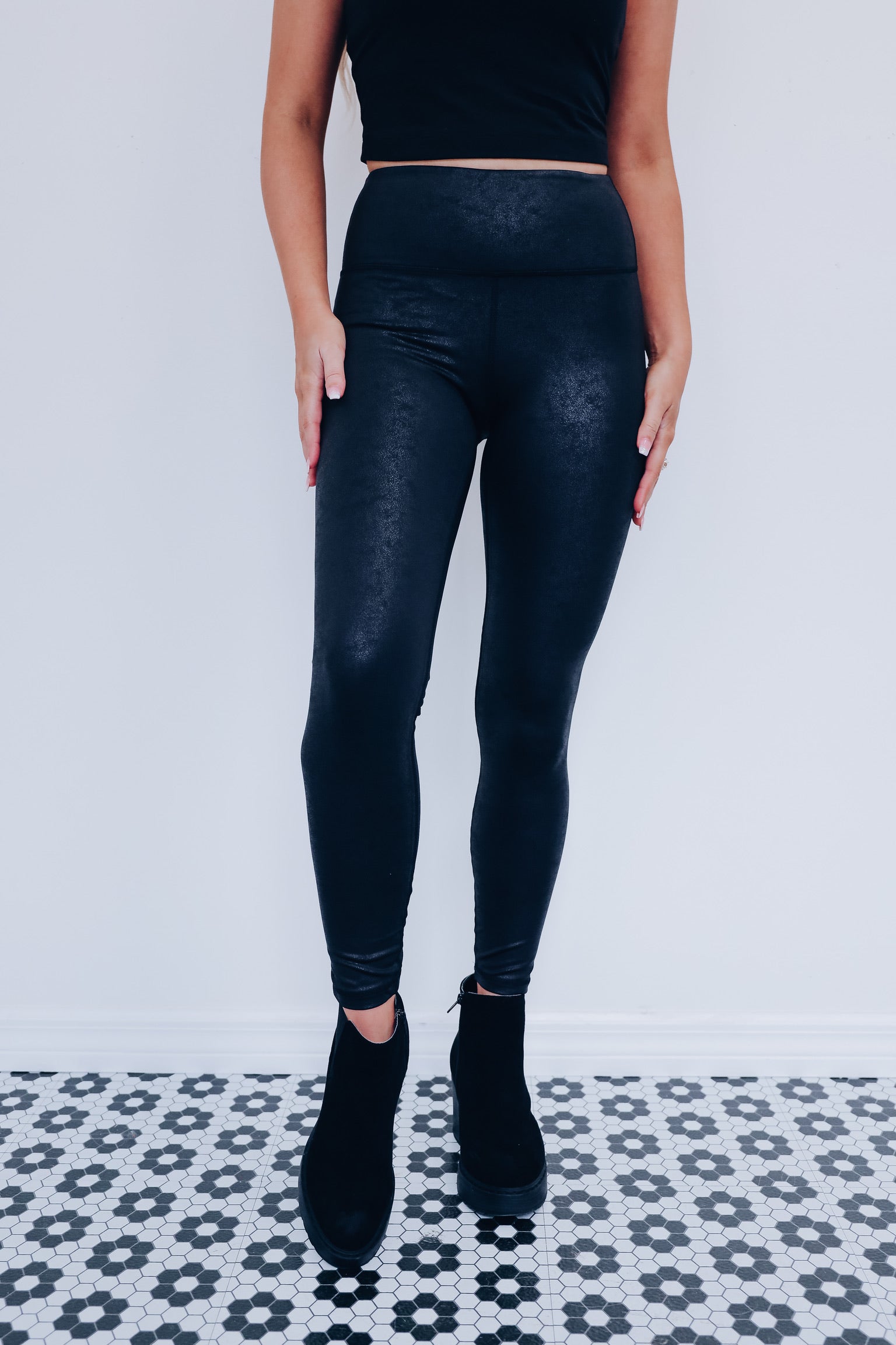 Titus Tummy Control PU Leggings - Black