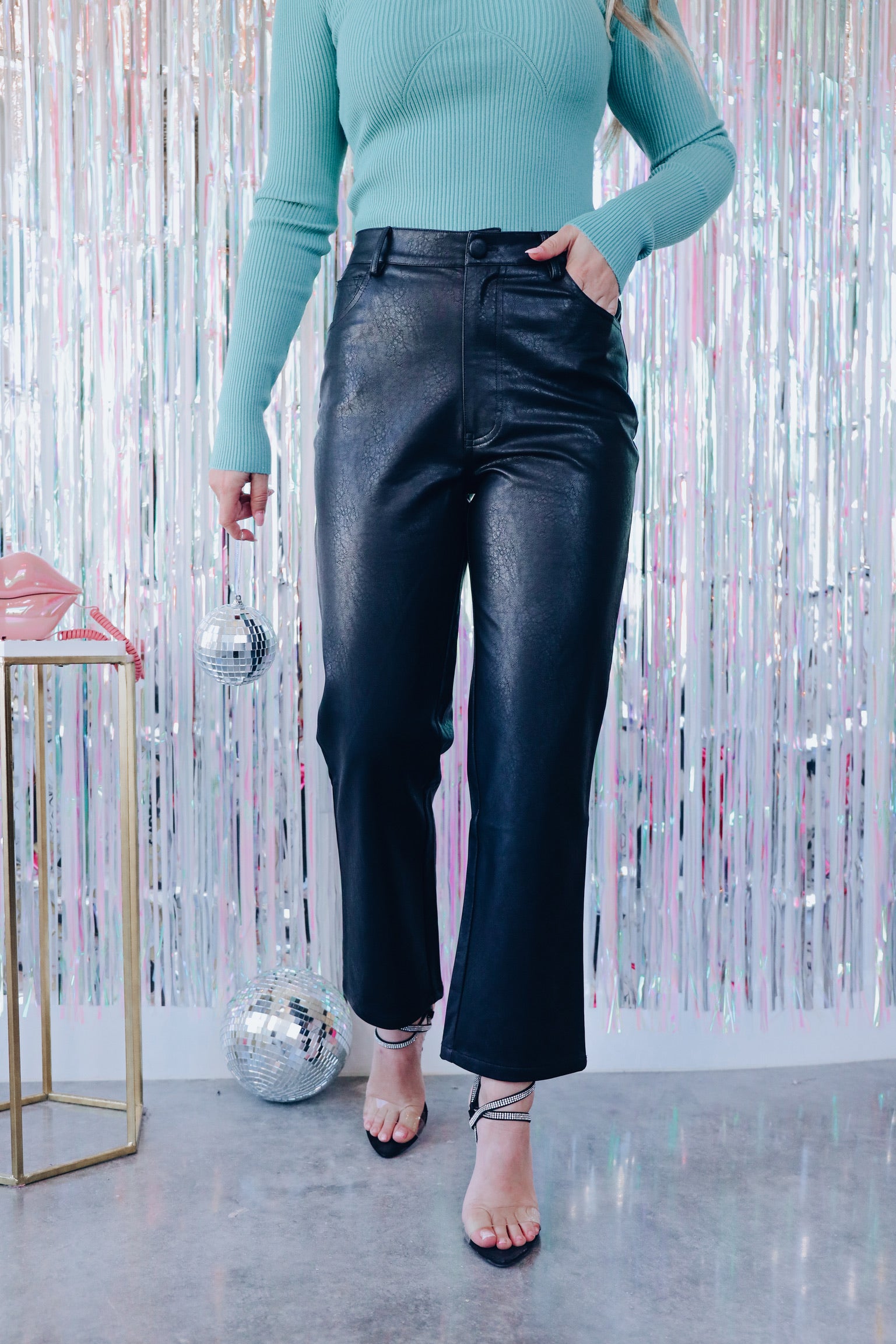 Sleek Straight Leg Faux Leather Pants - Black