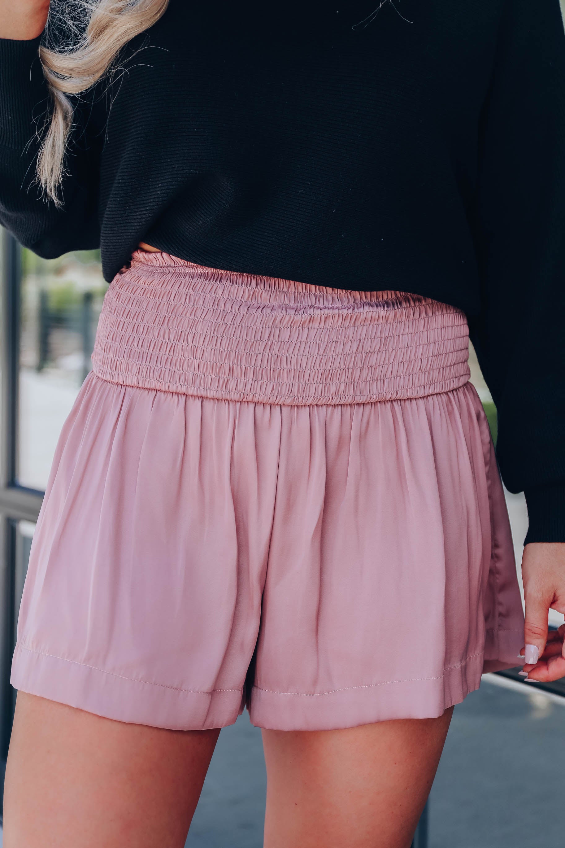 Mauve Smocked Shorts