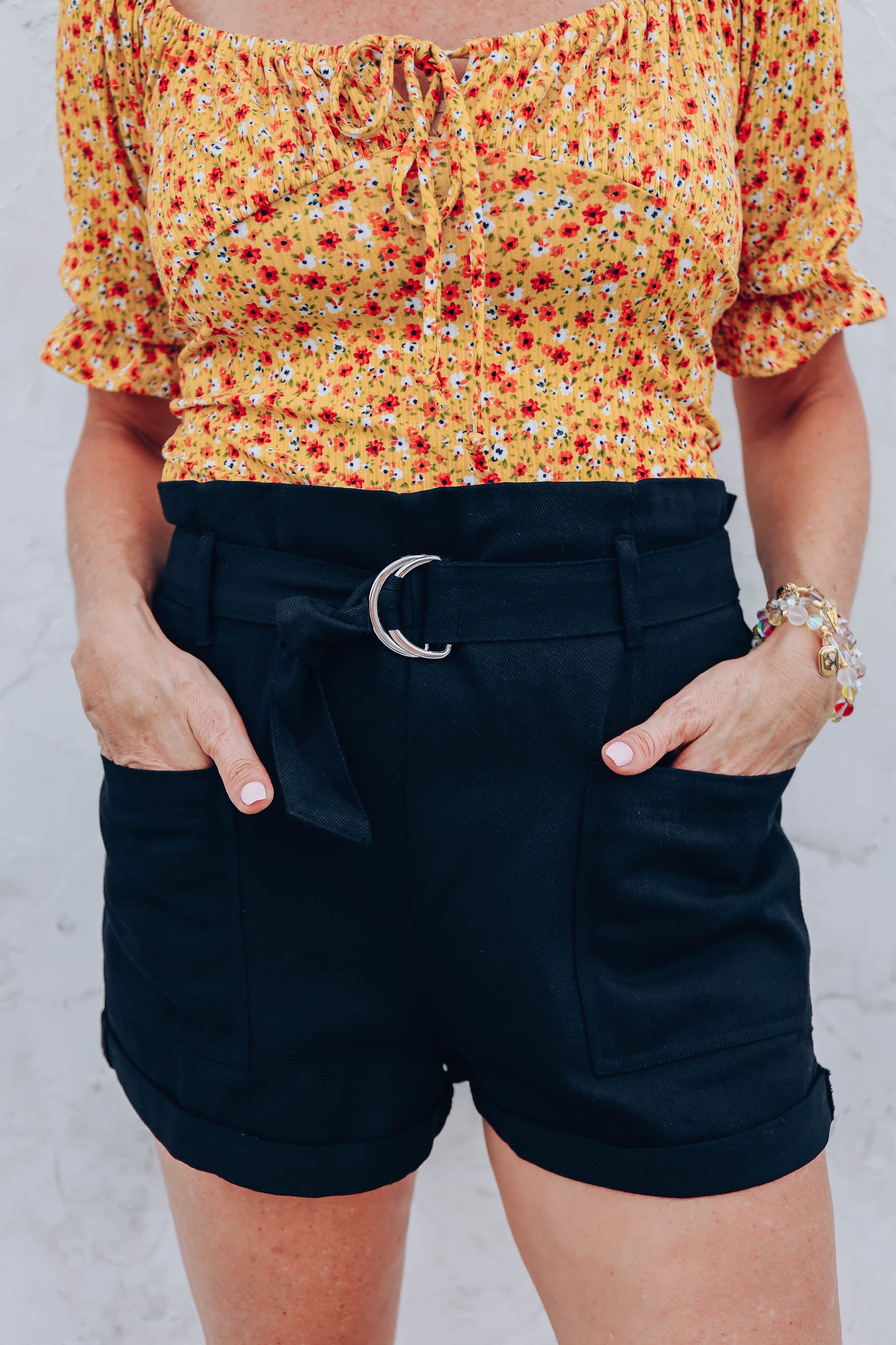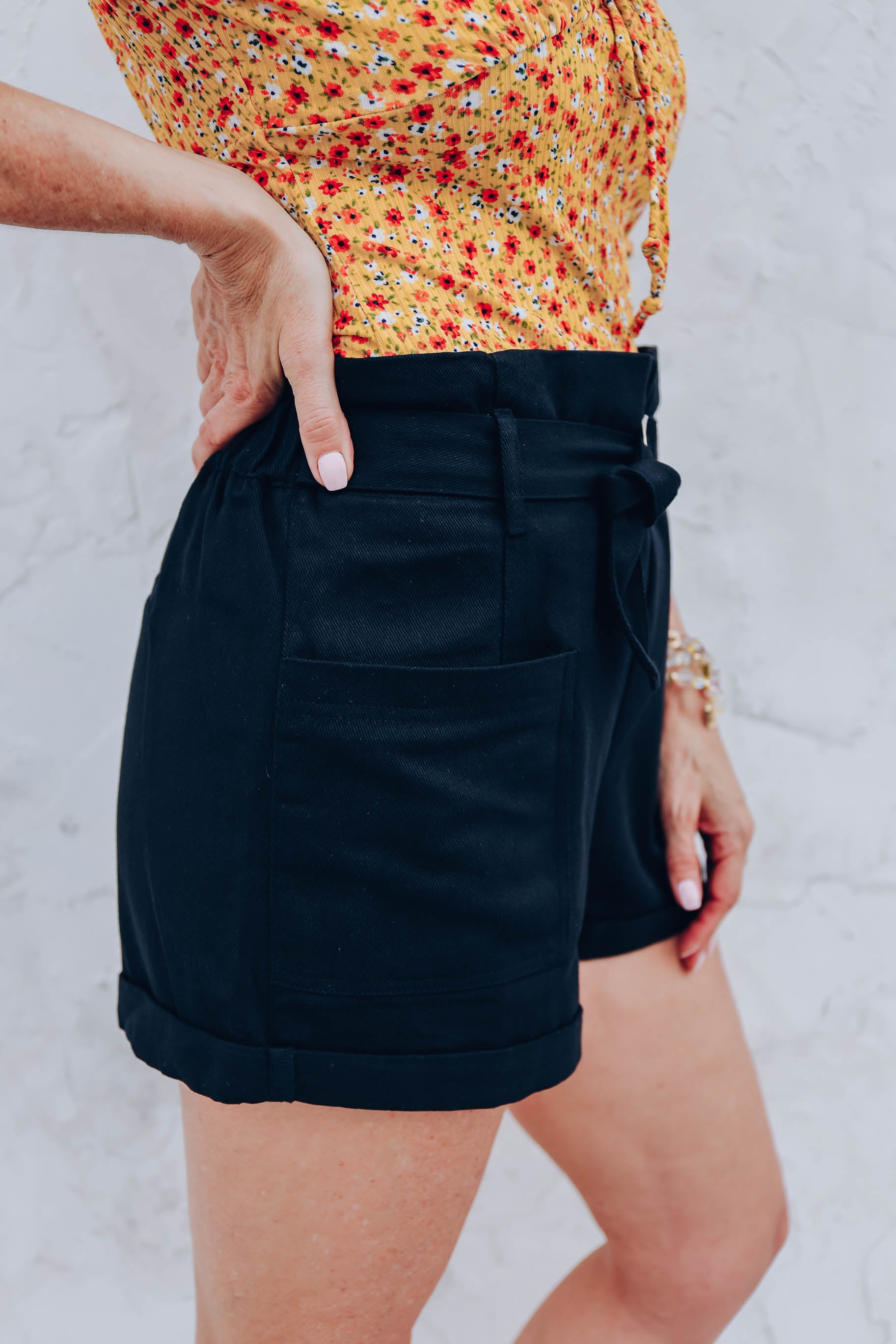 Georgia Belted Shorts - Black