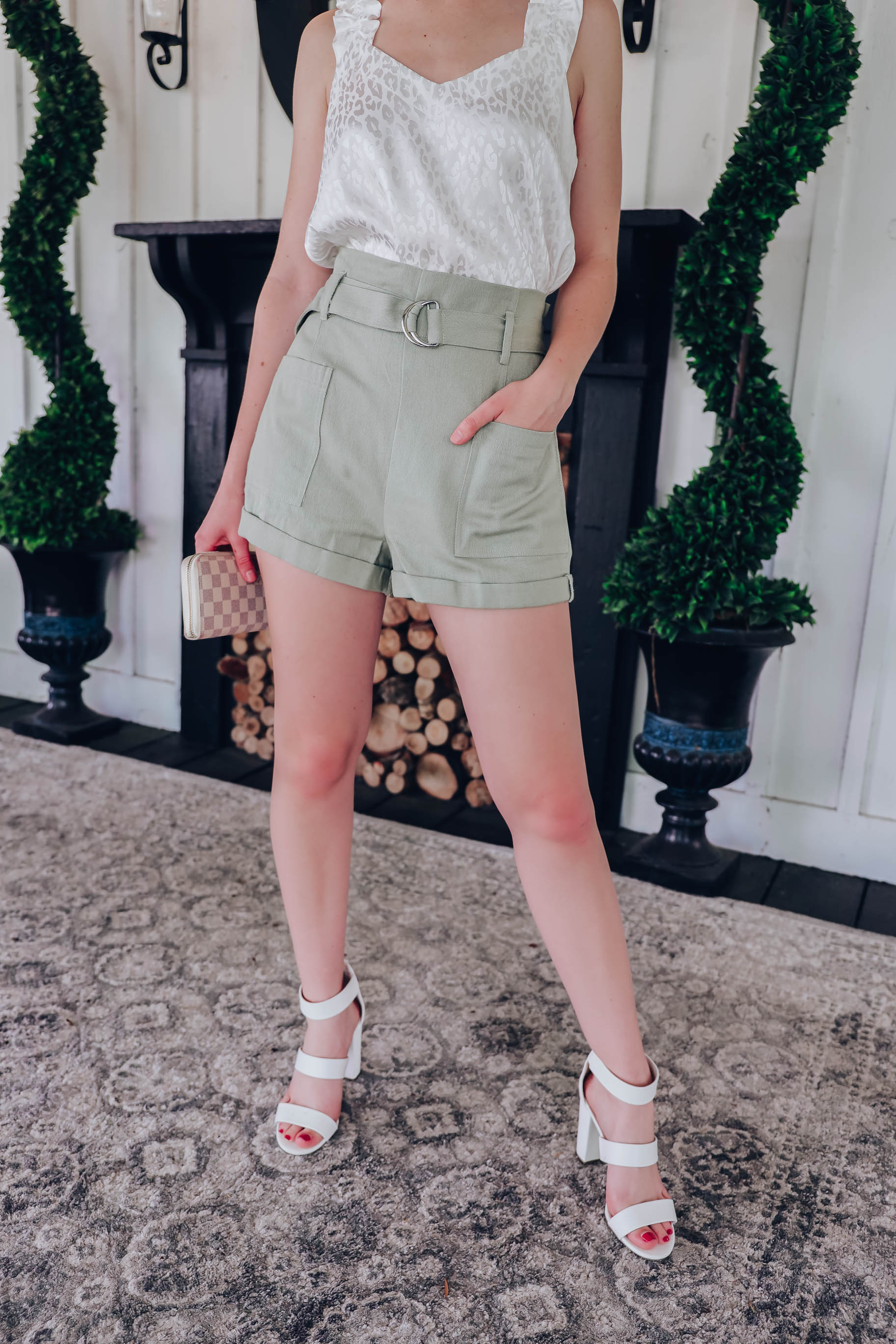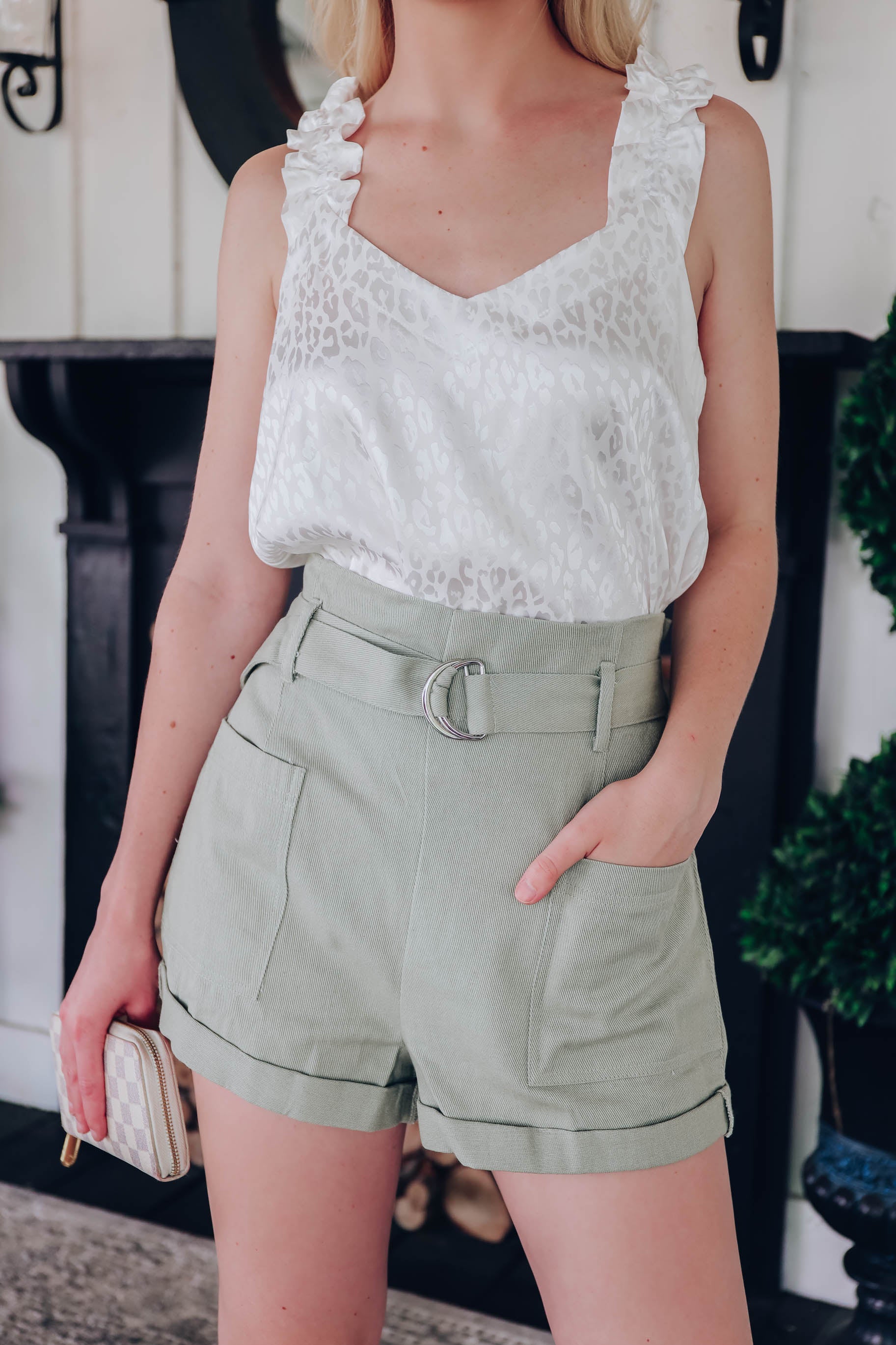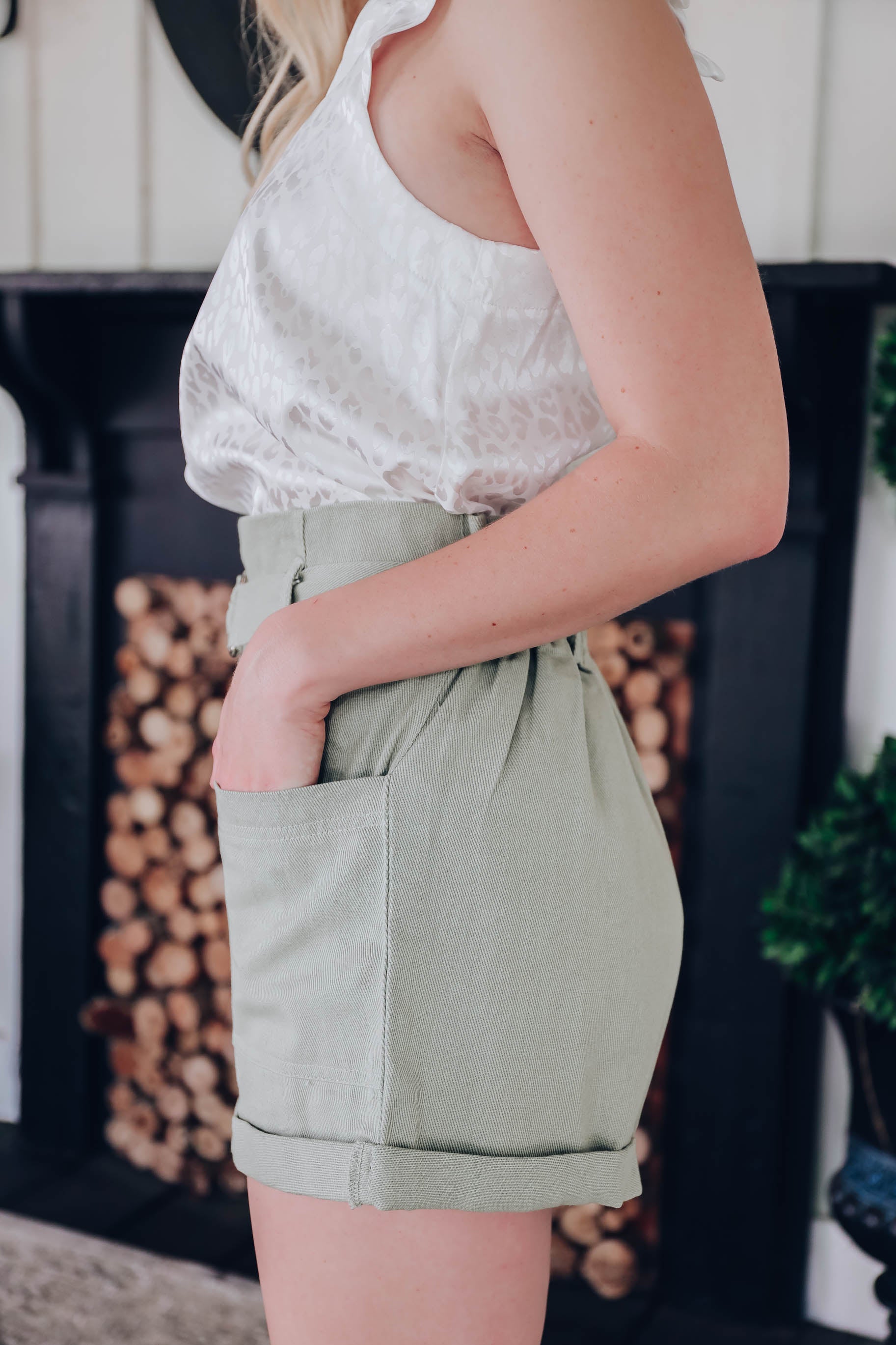 Georgia Belted Shorts - Sage