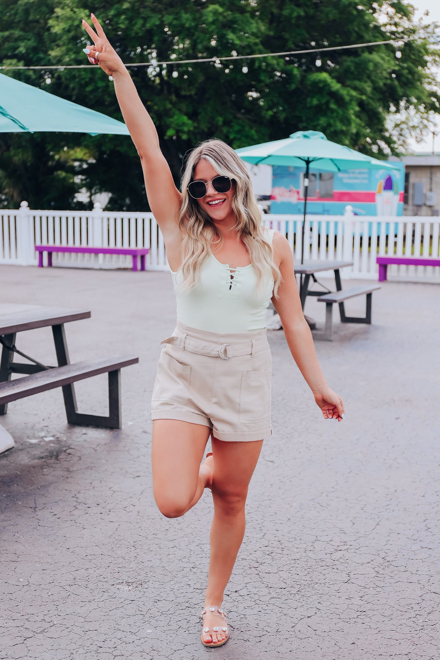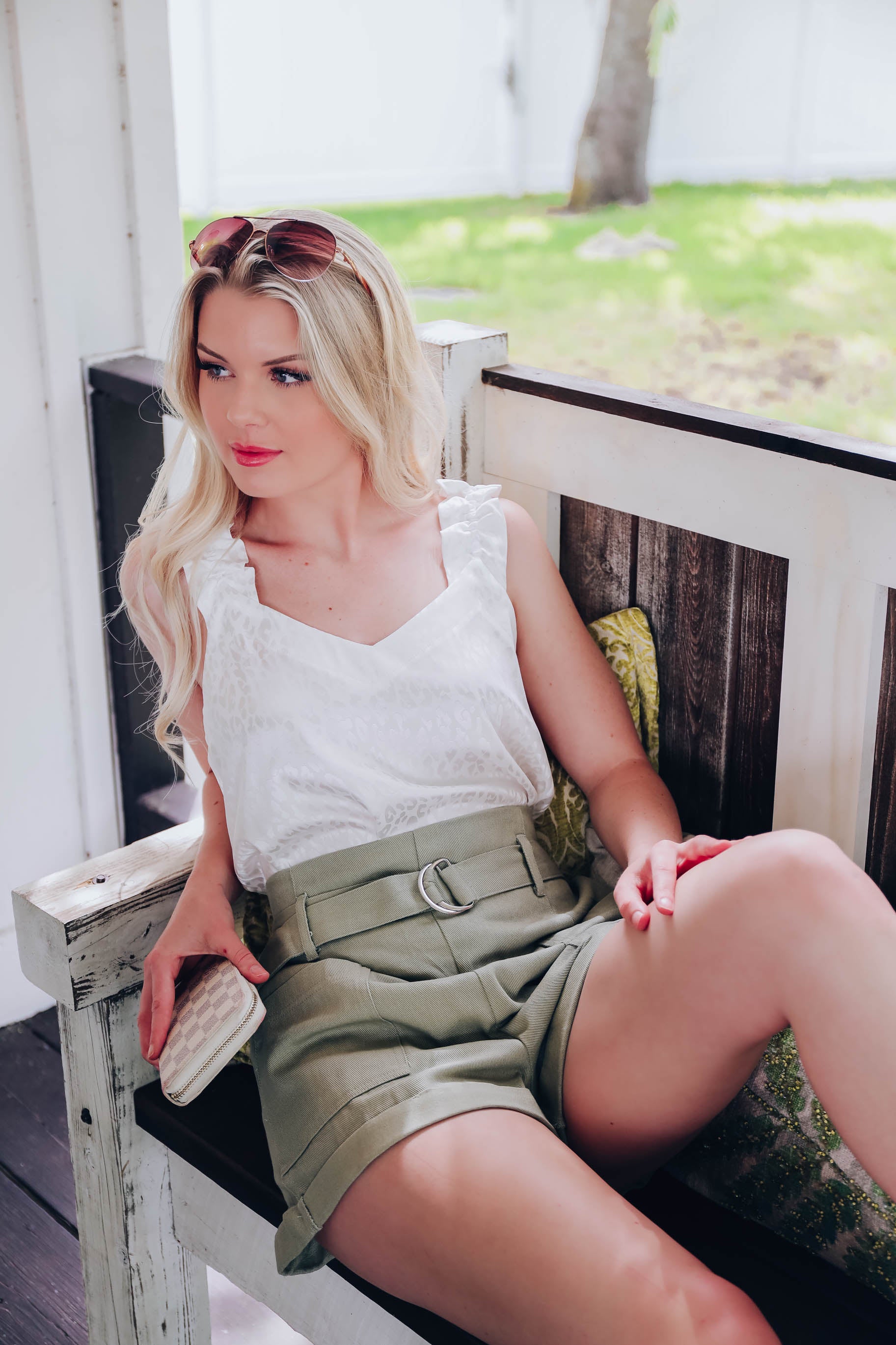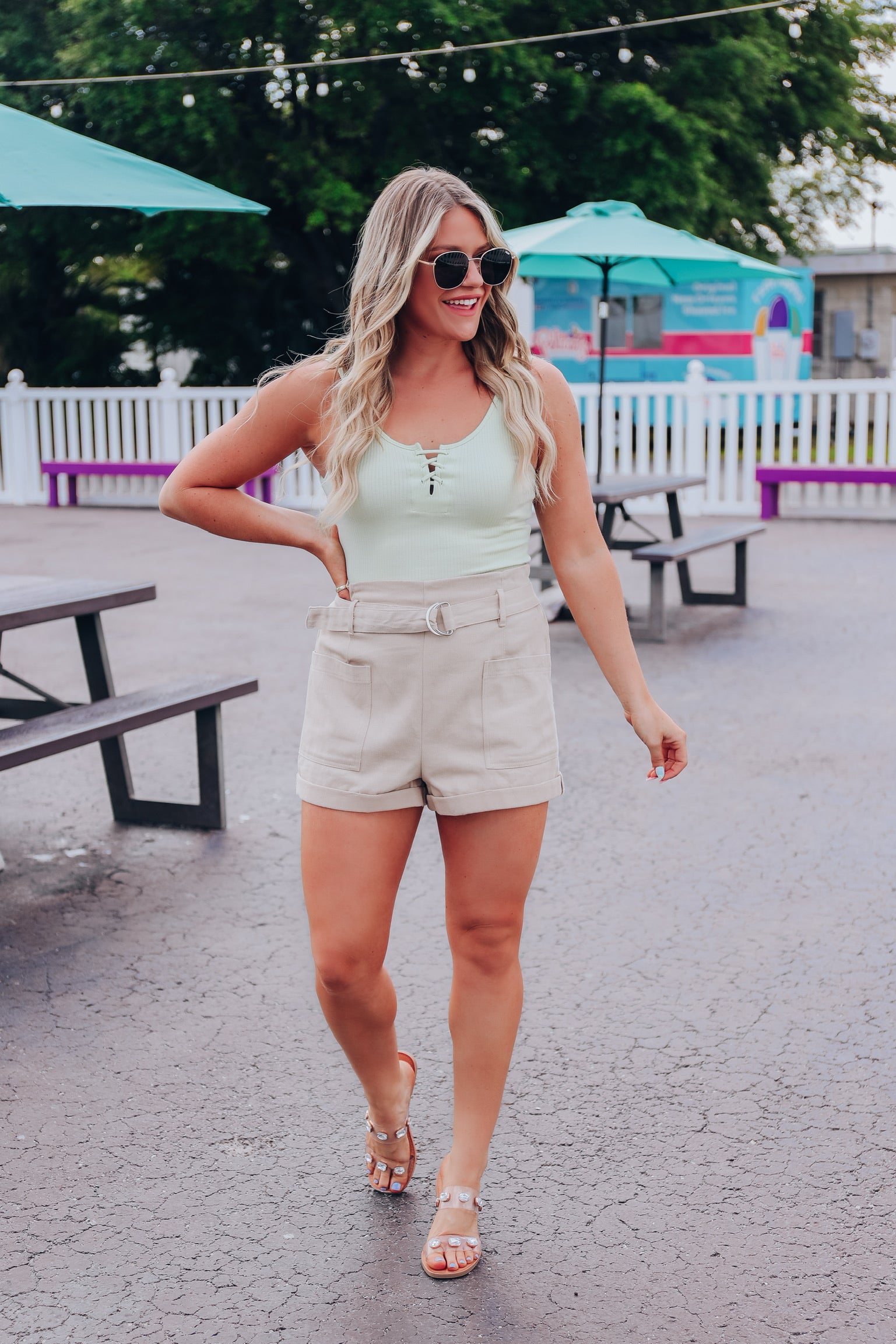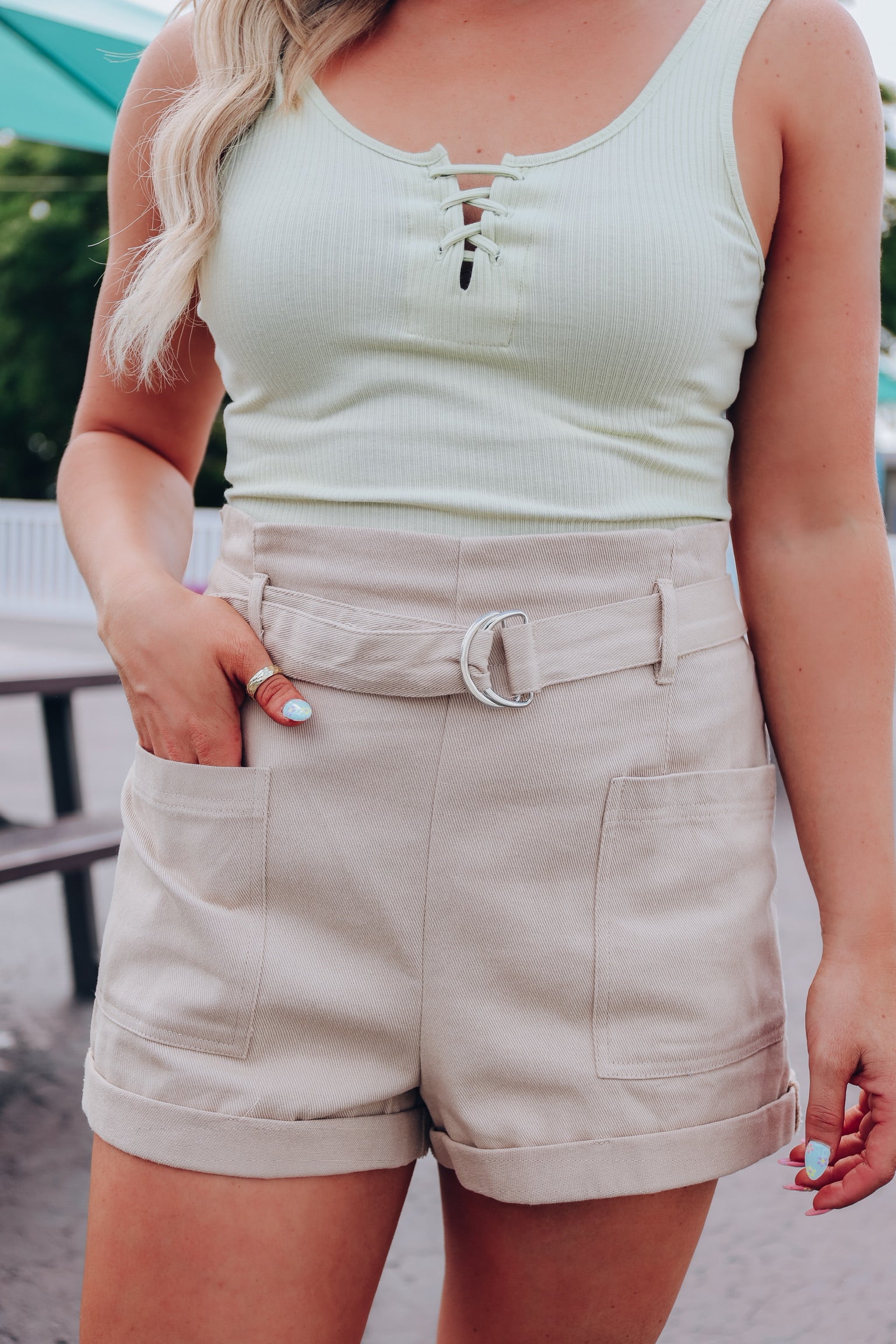 Georgia Belted Shorts - Sage