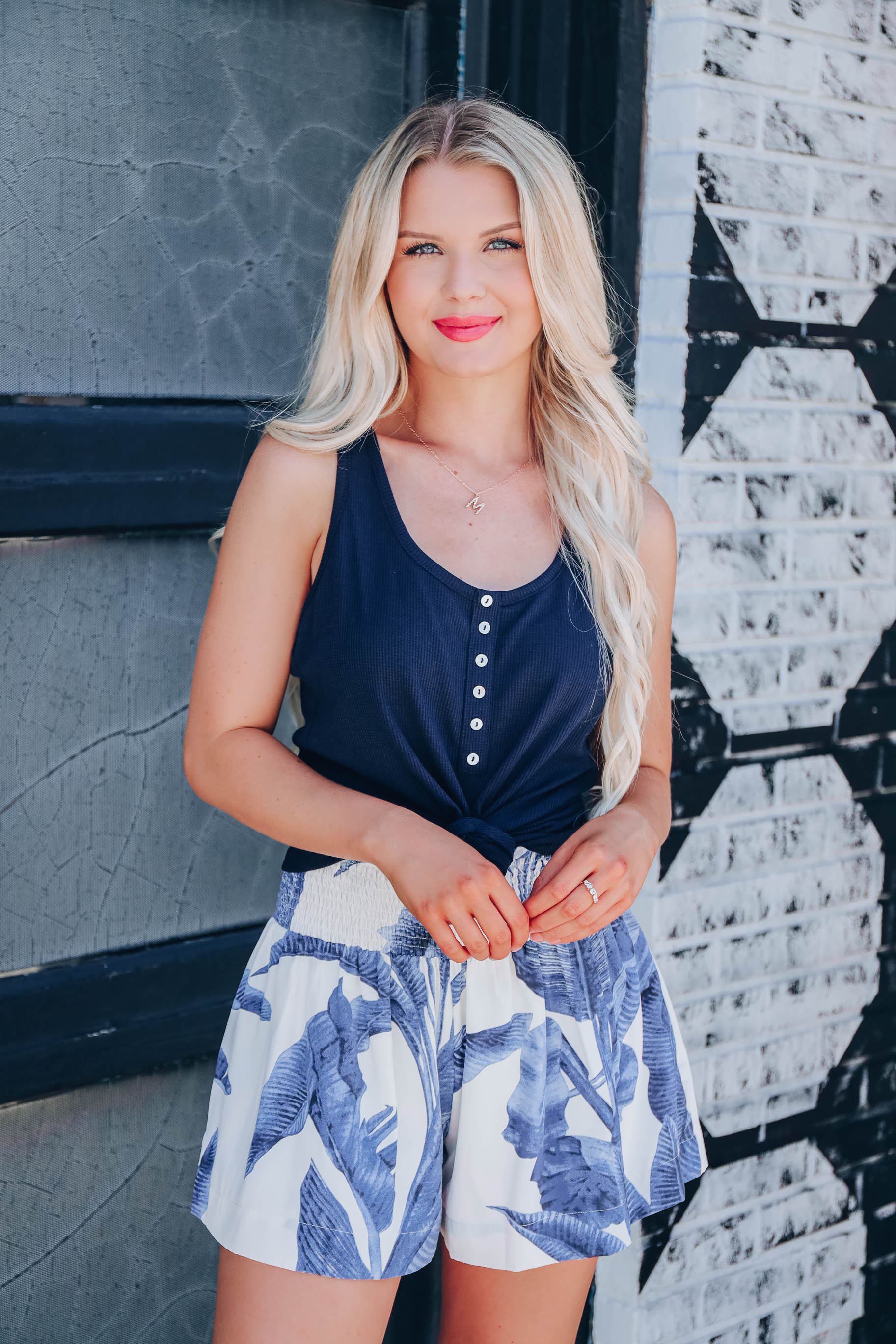 Tropical Leaf Smocked Shorts - Blue