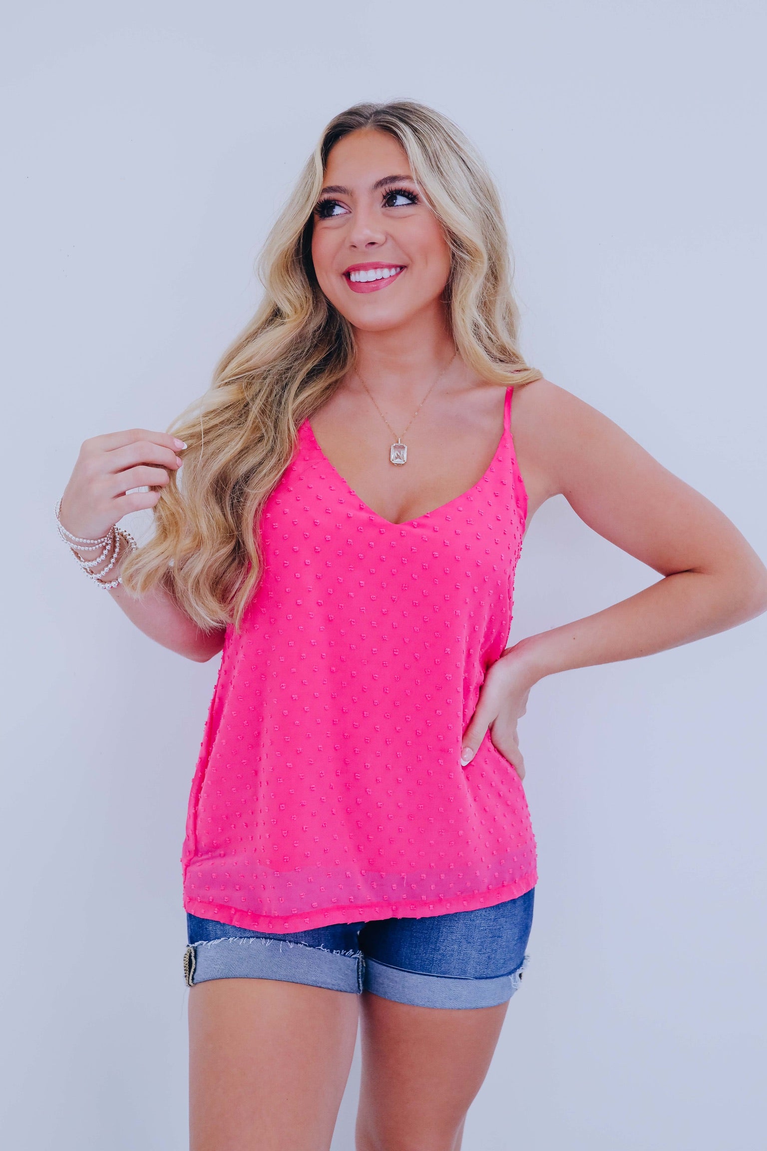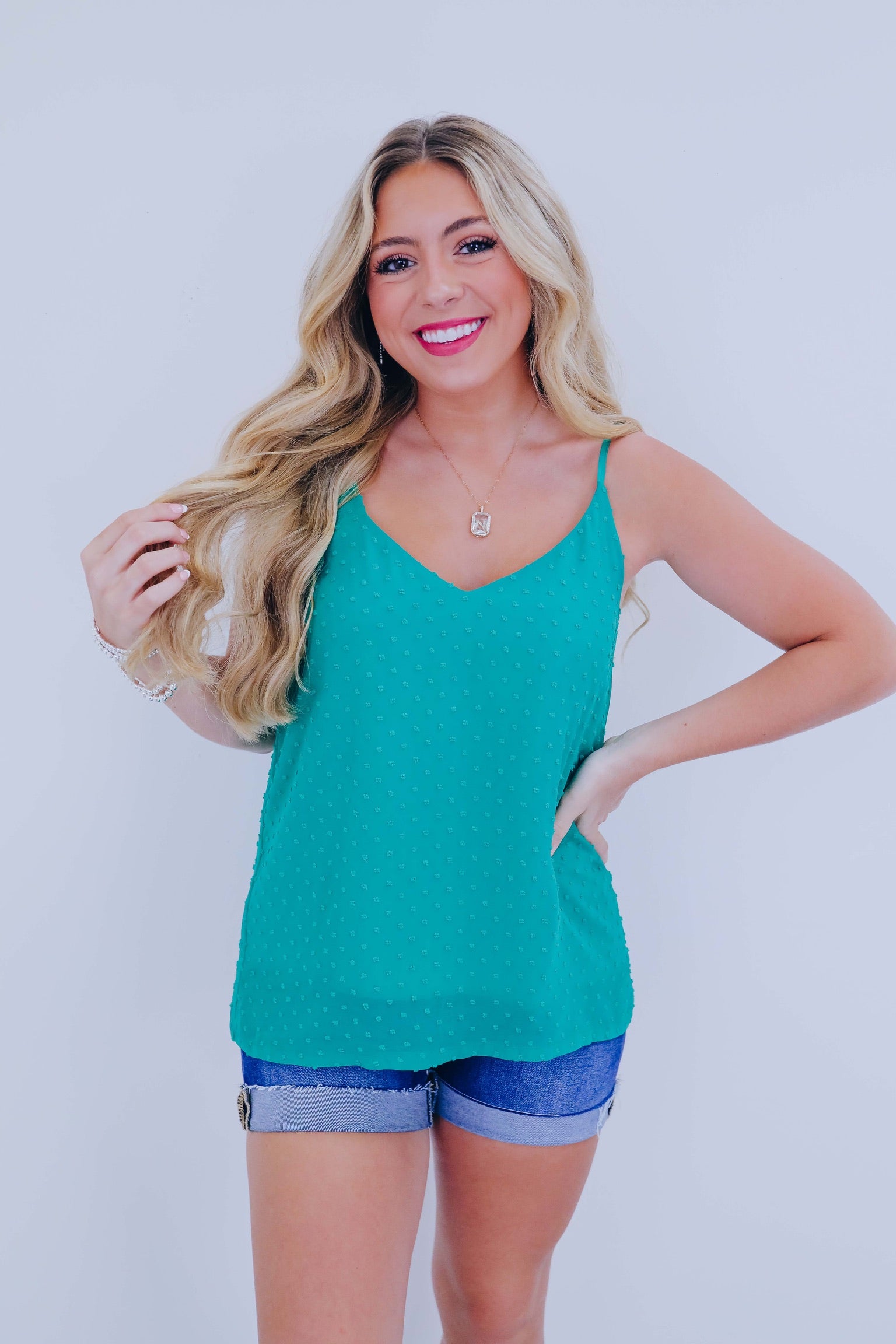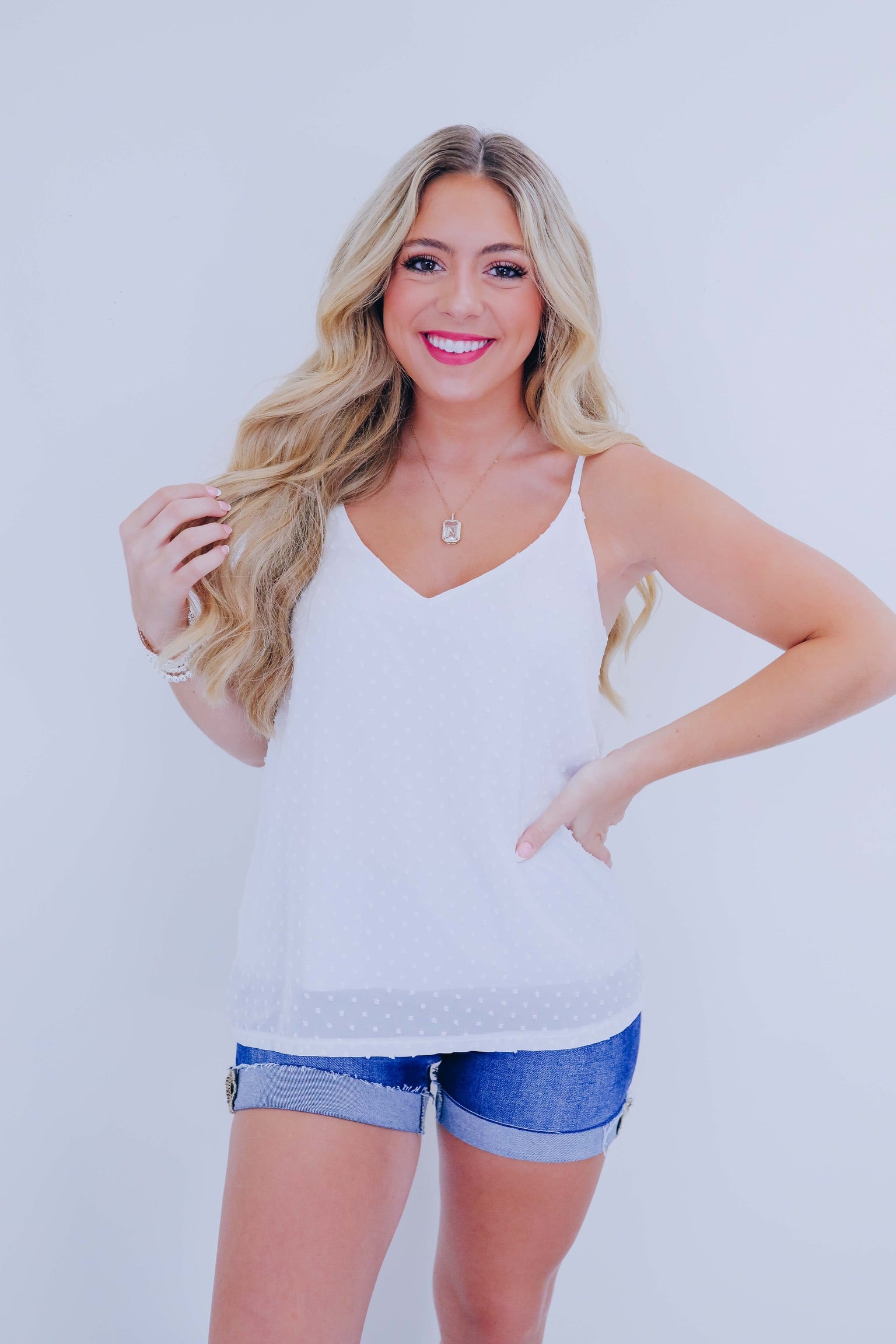 • Tanks are an absolute must-have for summer and our all-new Delicate Dotted Swiss Tank is perfect for warm weather fits. Style a summer-ready girly fit with denim shorts and sneakers for a comfy OOTD.