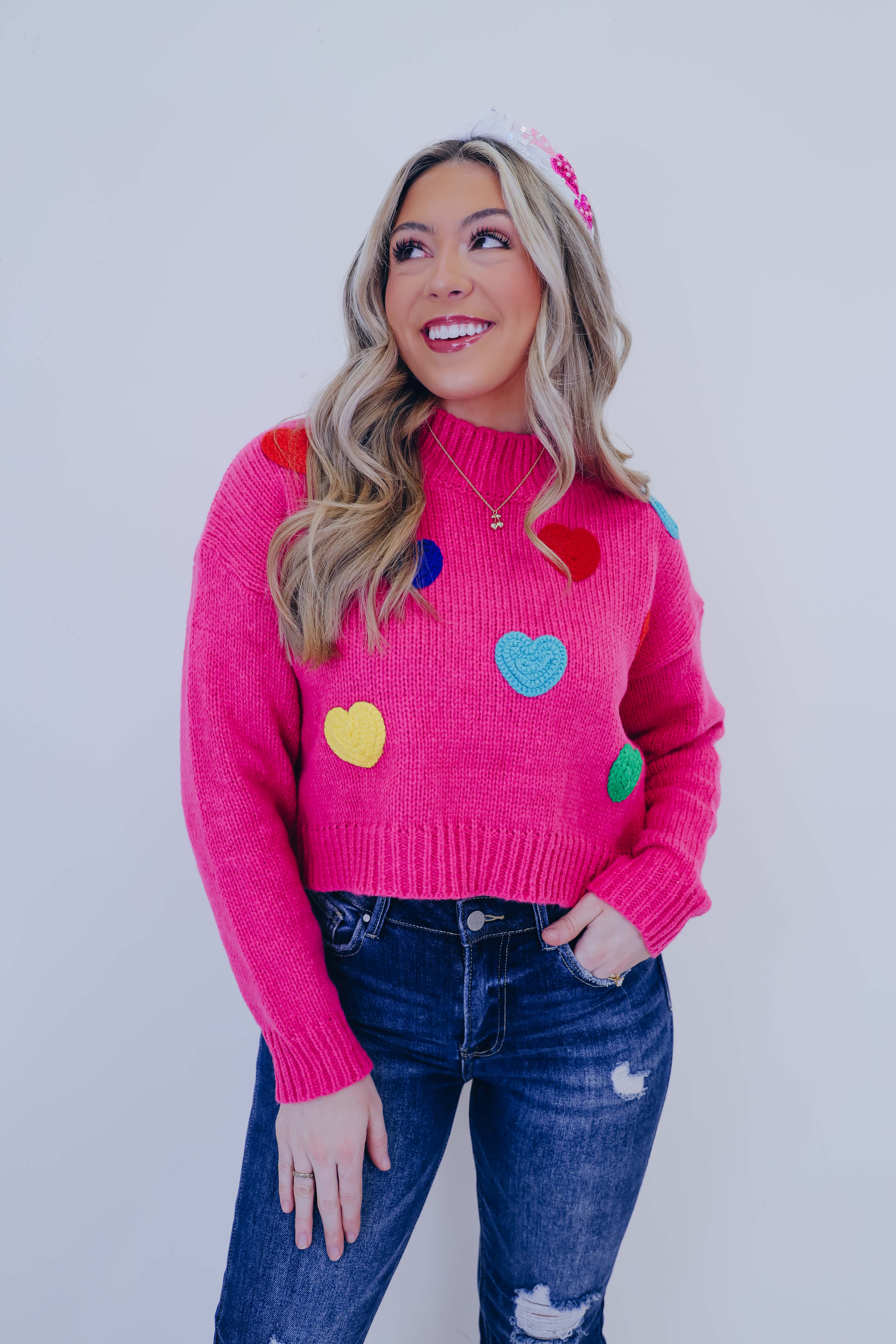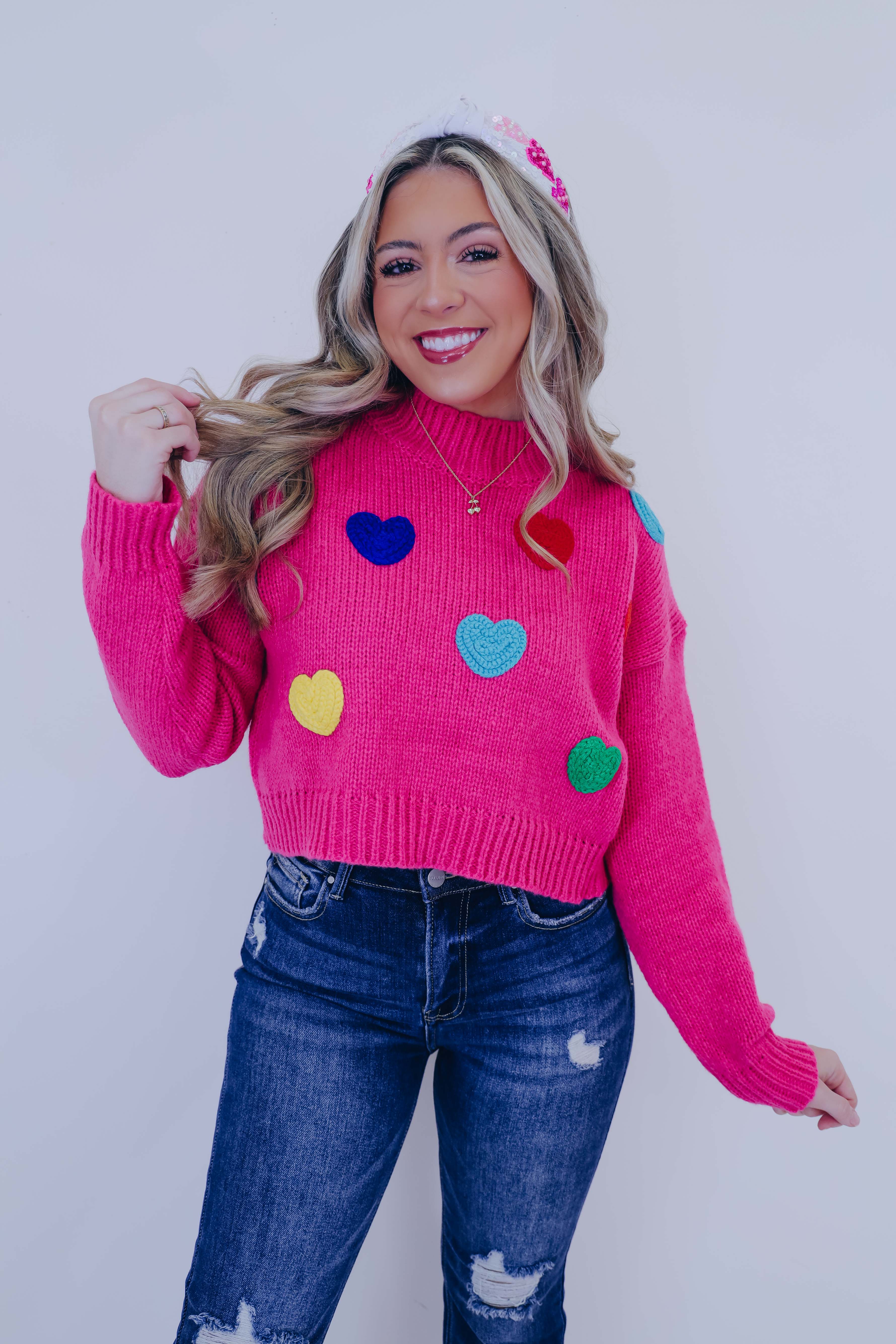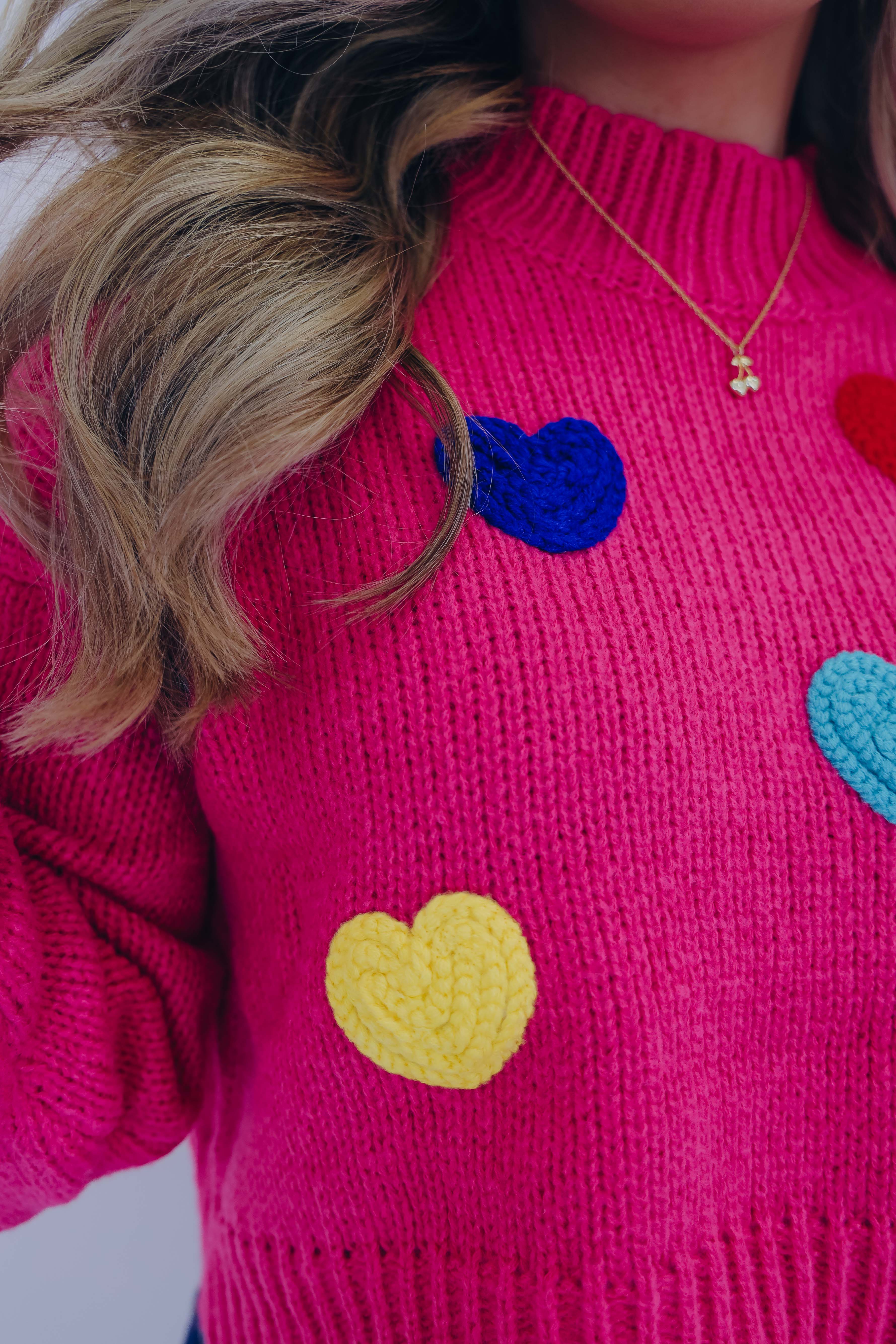 Boho Breezy Floral Crochet Knit Sweater - Pink