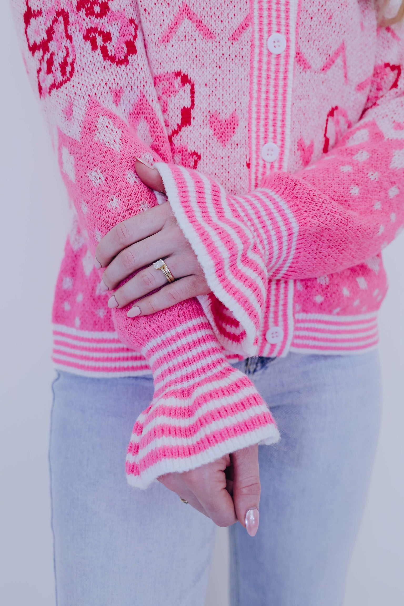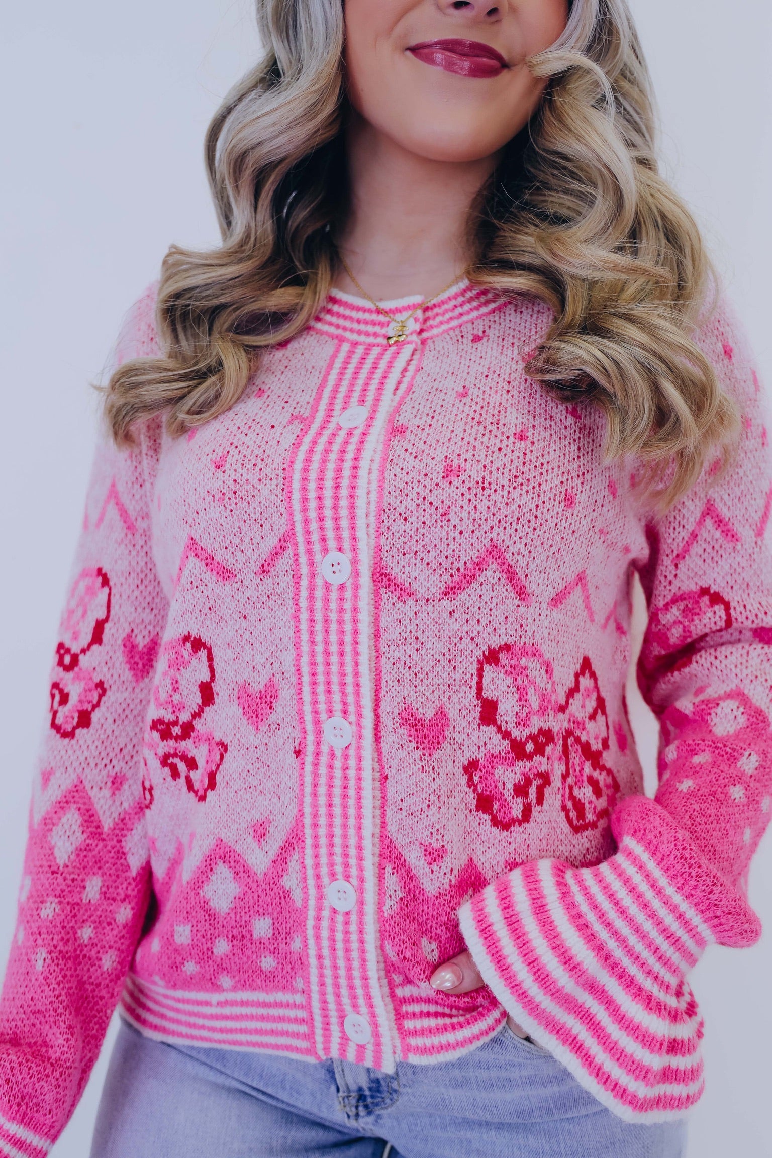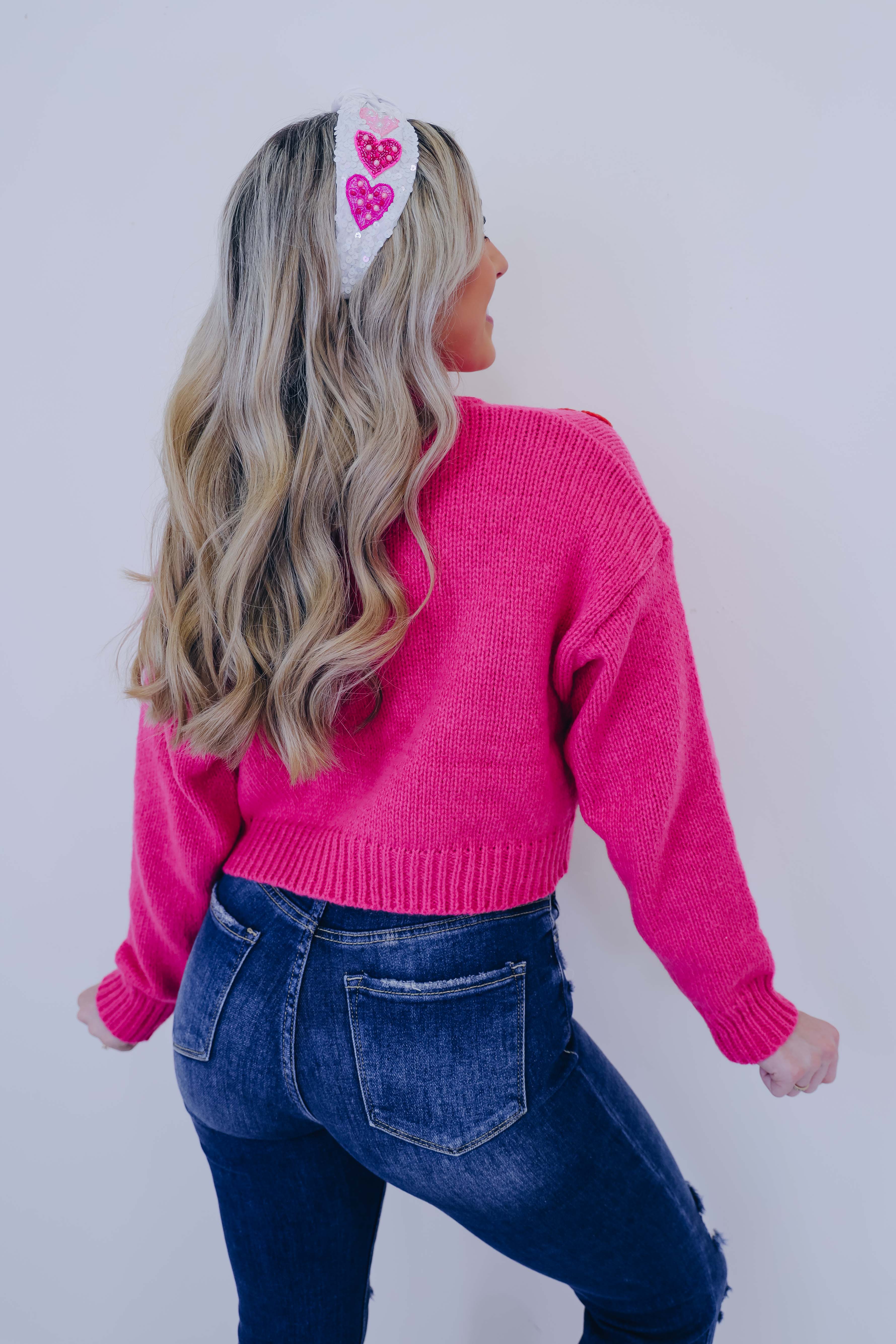 Boho Breezy Floral Crochet Knit Sweater - Pink