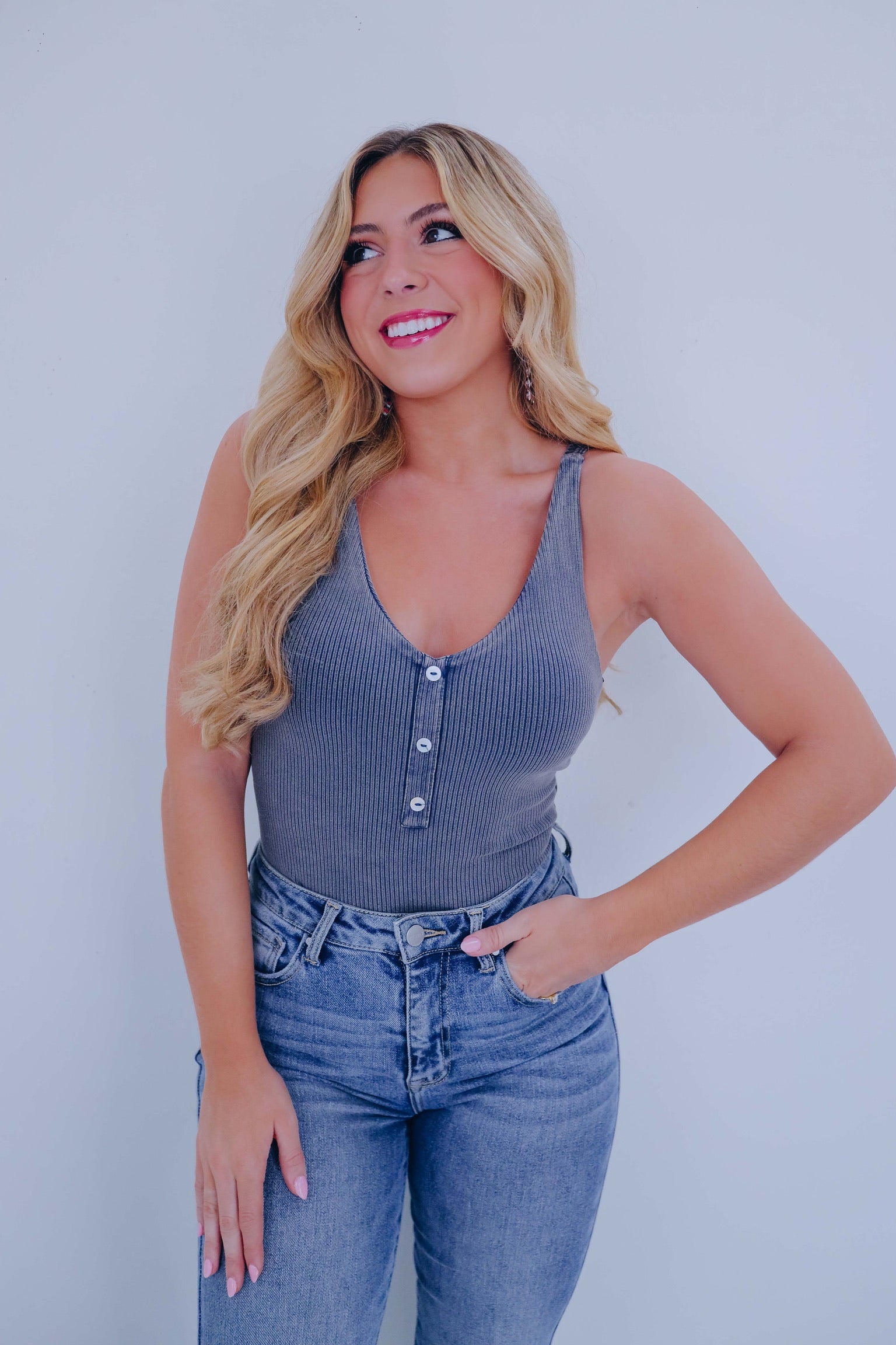 Henley Cross Back Strap Bodysuit - Washed Denim