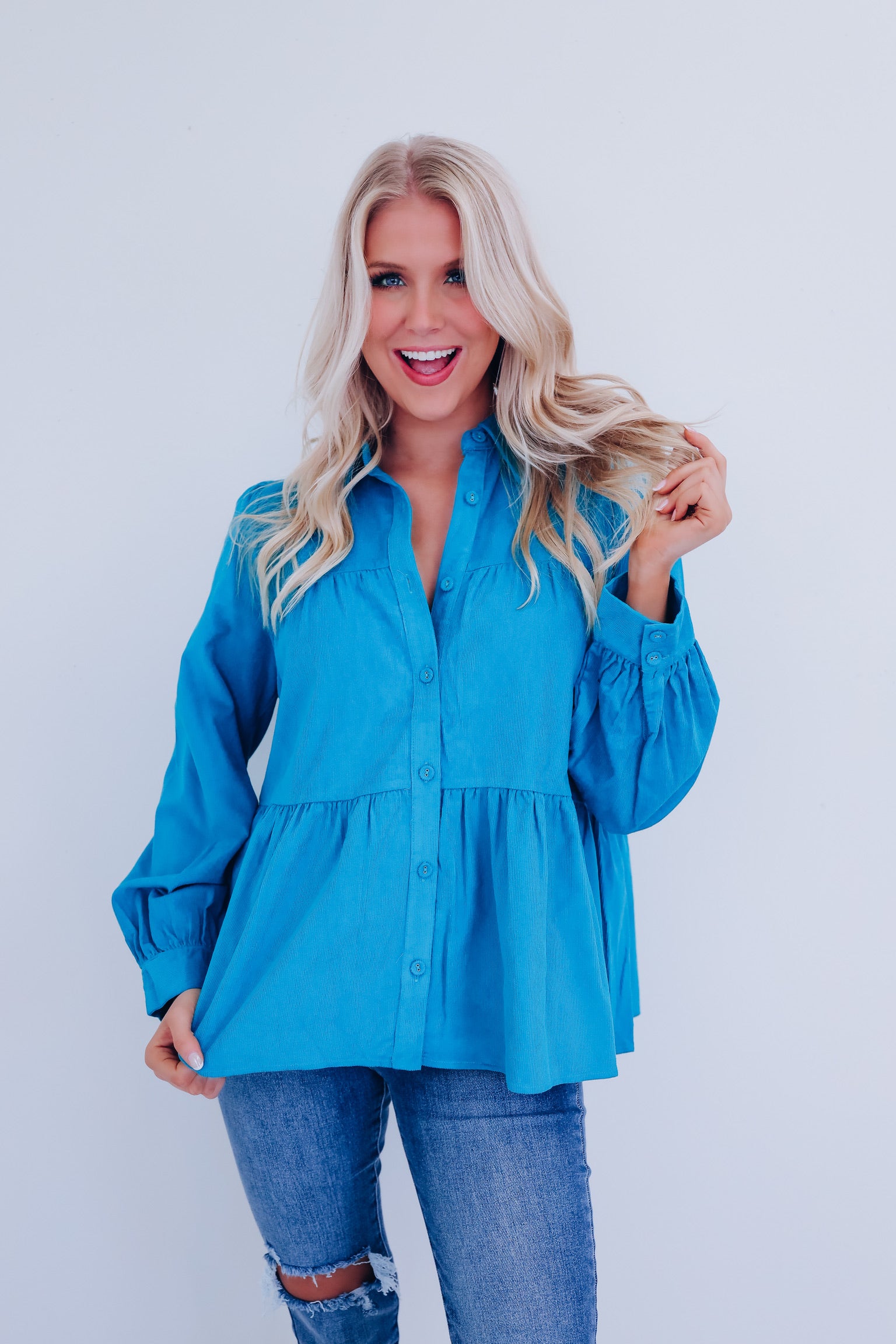 Kendra Micro Corduroy Baby Doll Top - Teal