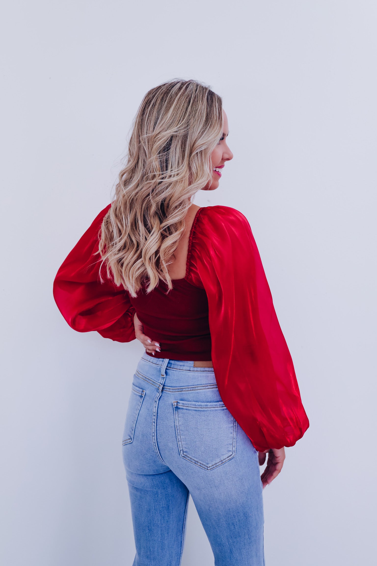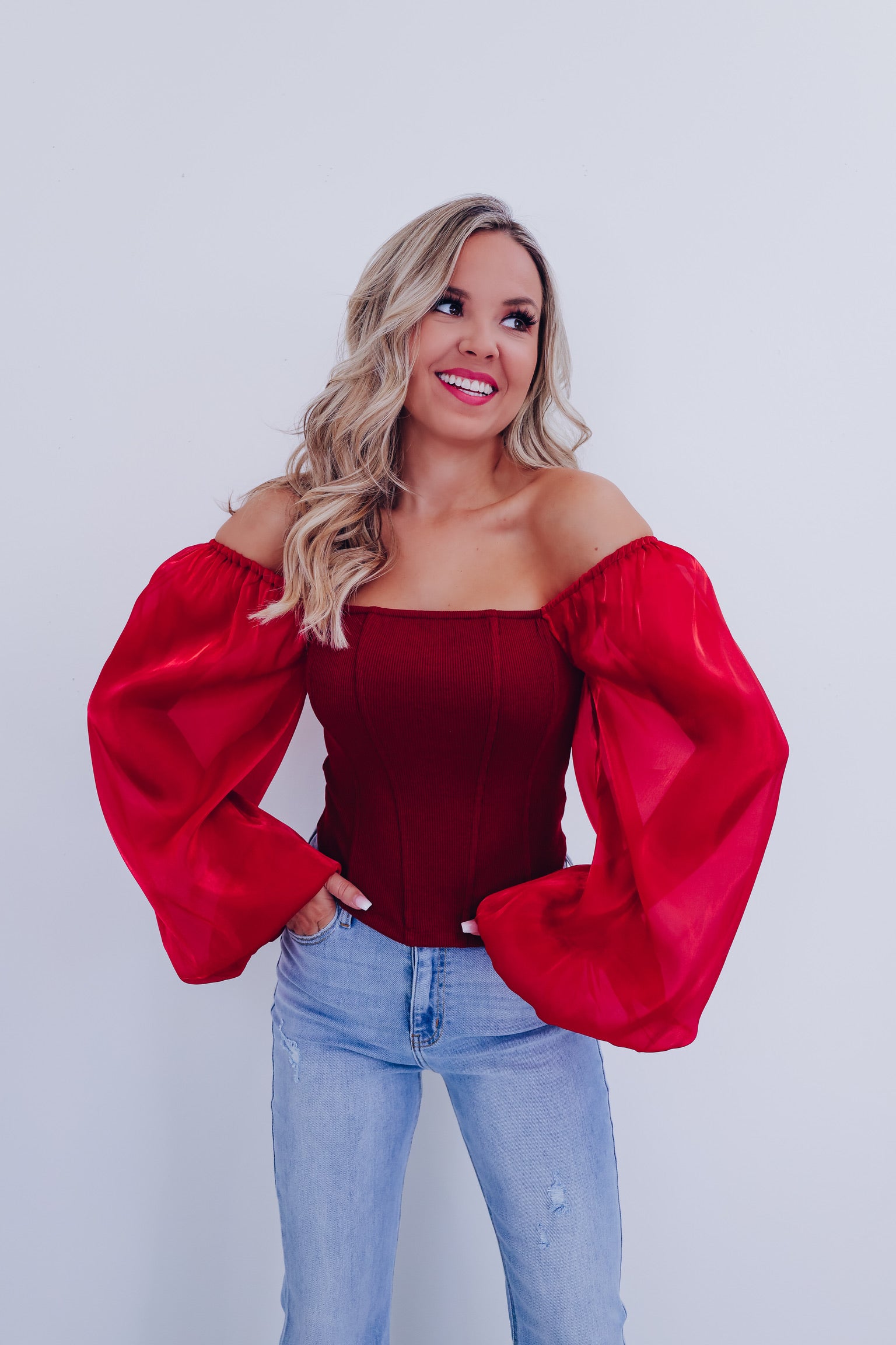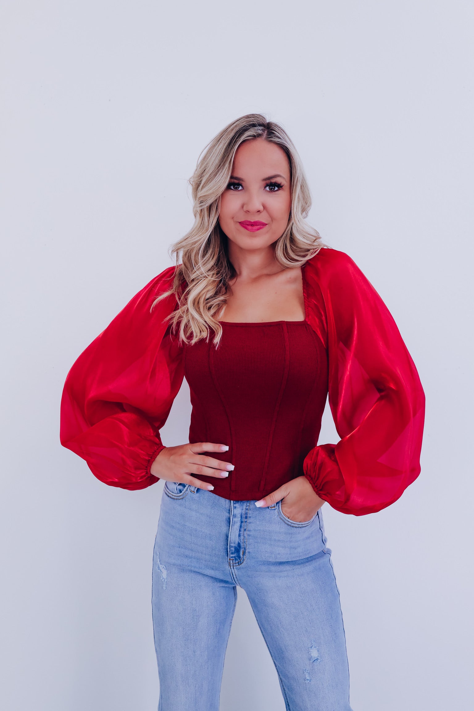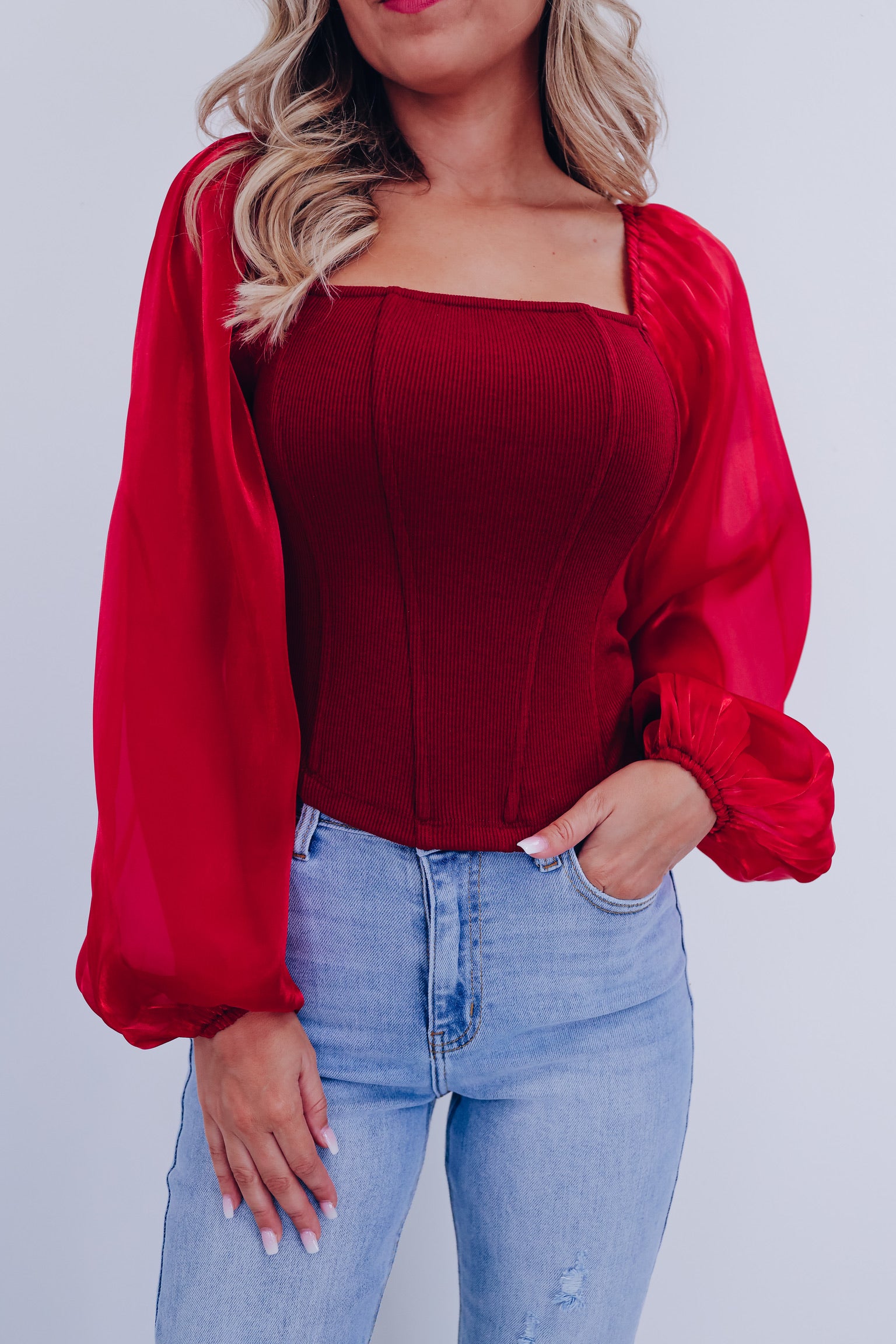 Ona Organza Sleeve Corset Top - Burgundy