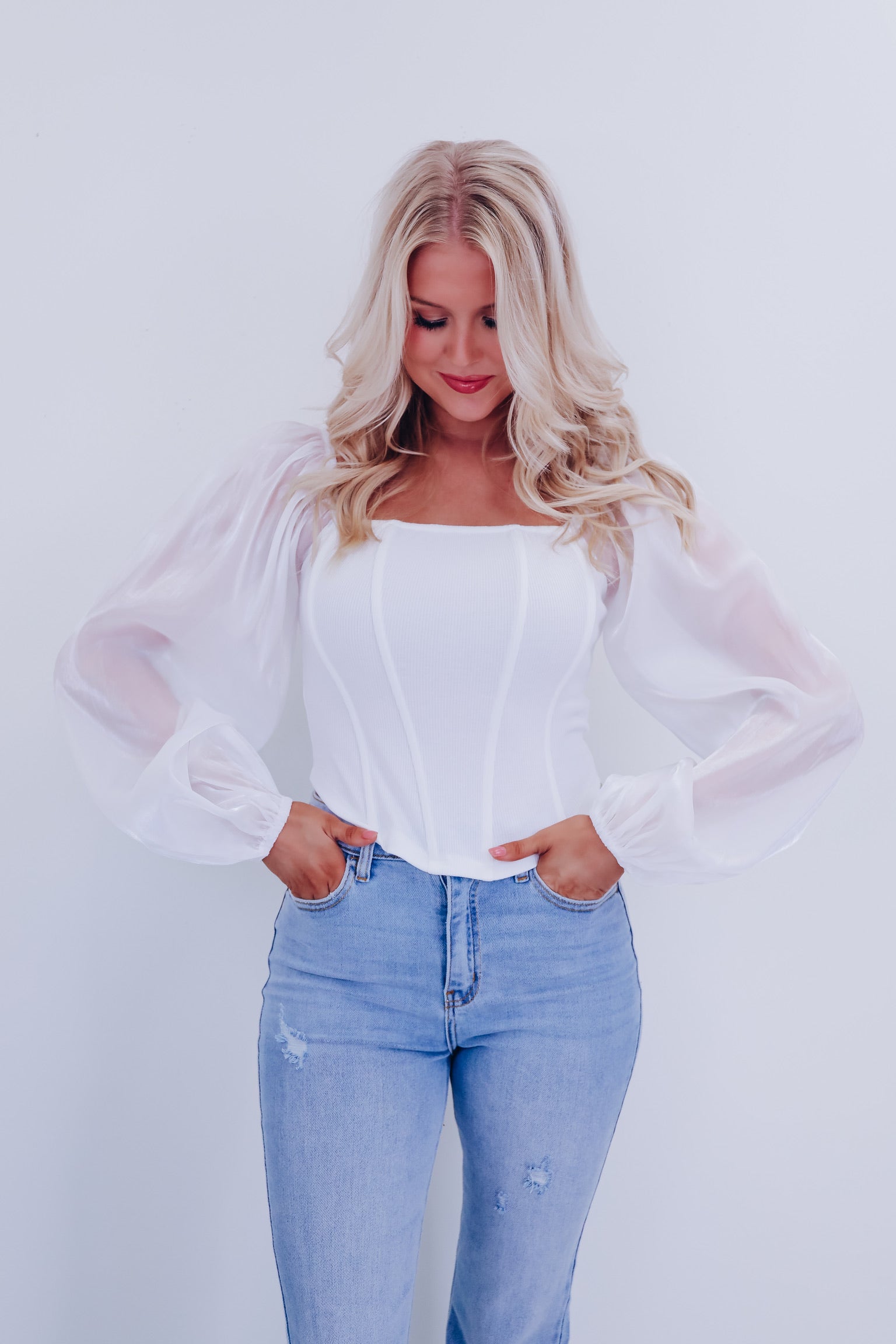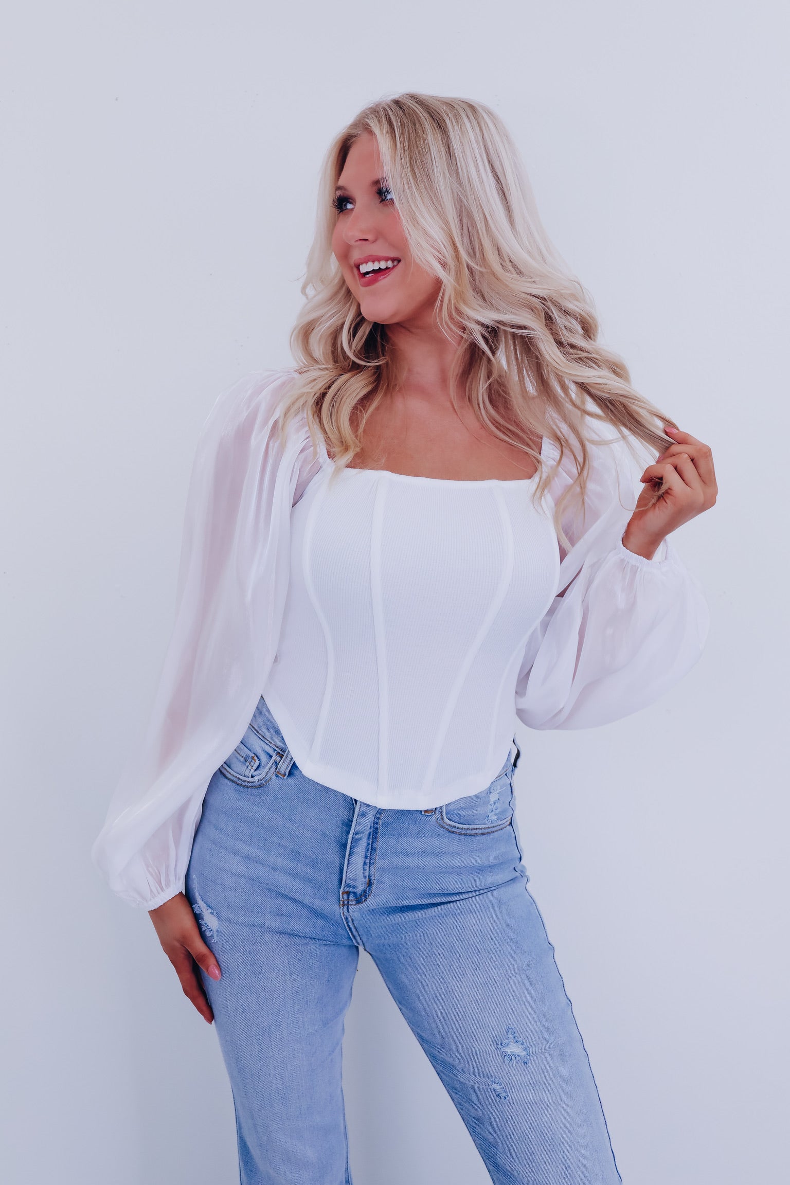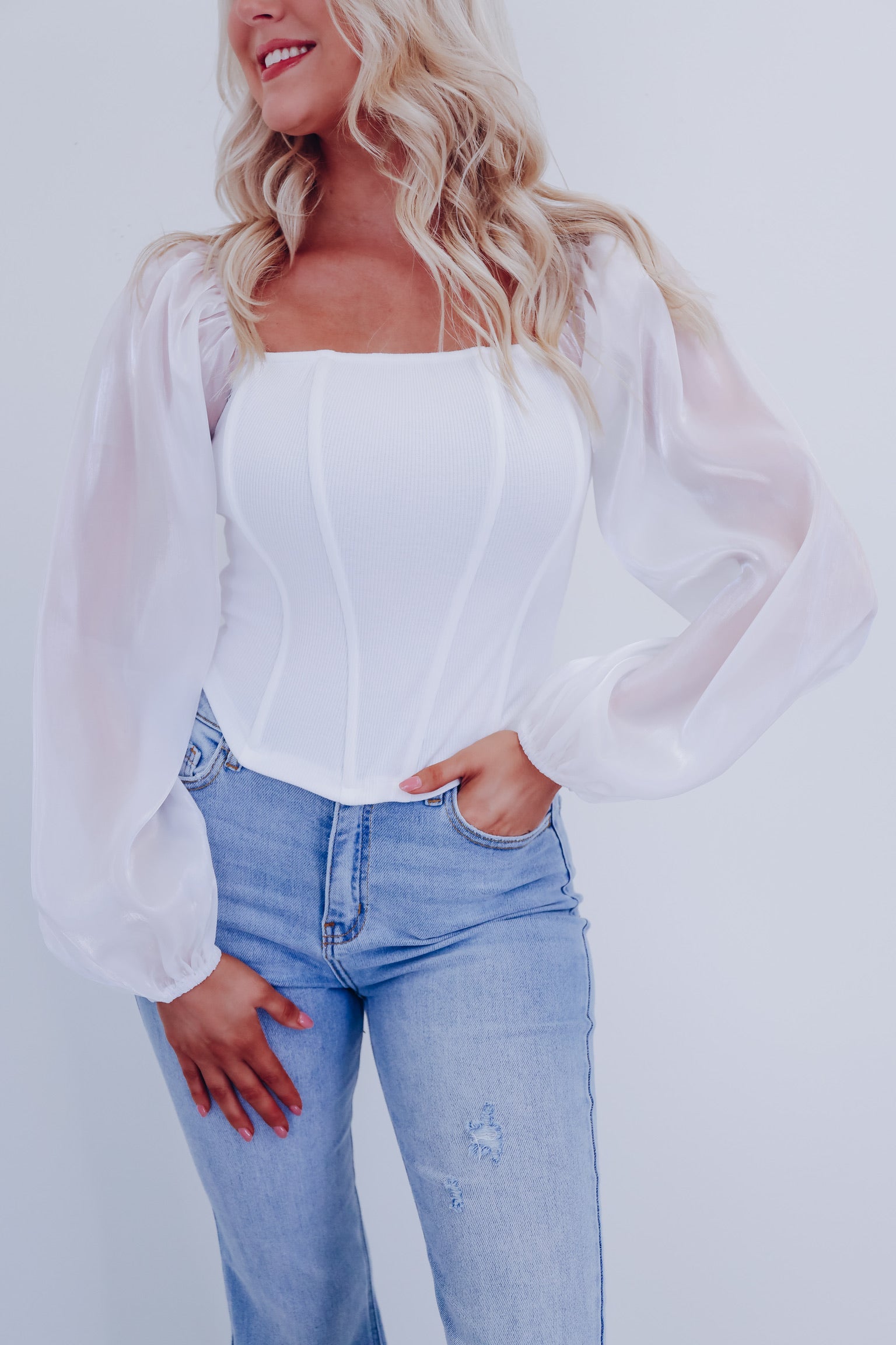 Ona Organza Sleeve Corset Top - White