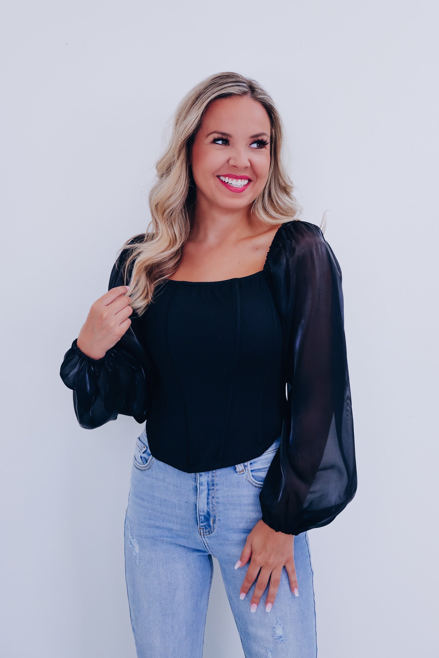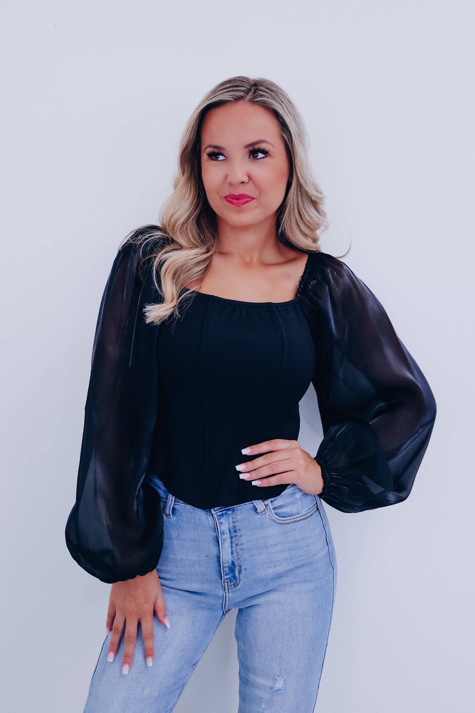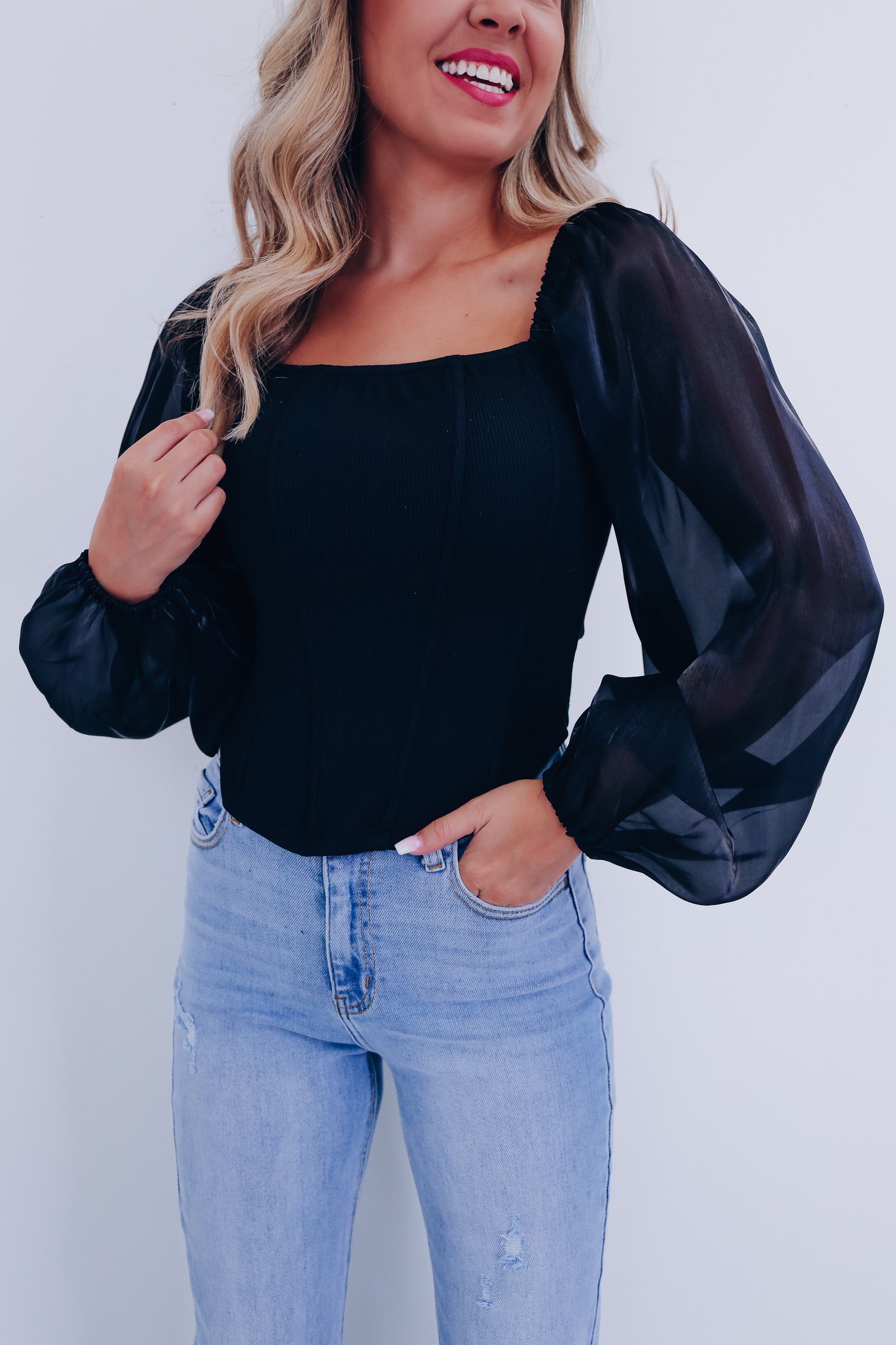 Ona Organza Sleeve Corset Top - Black