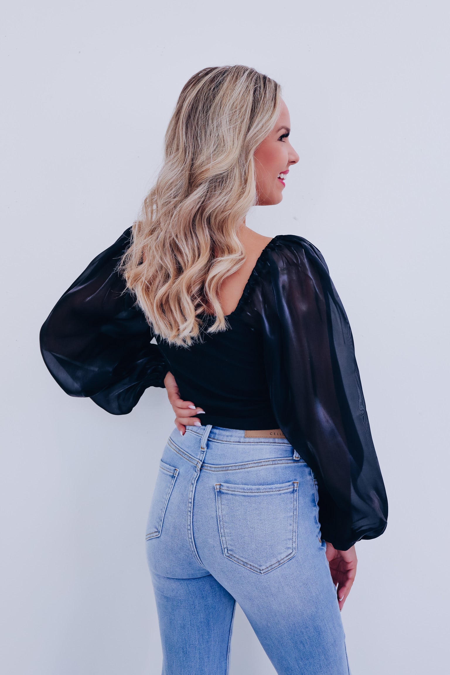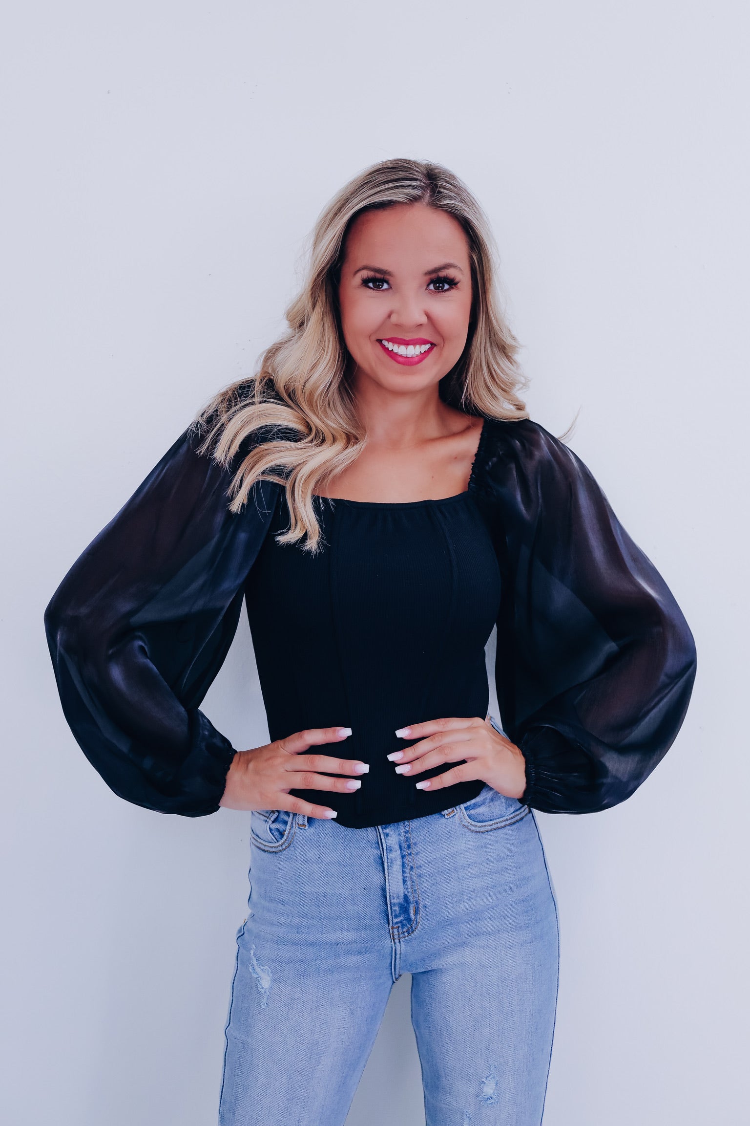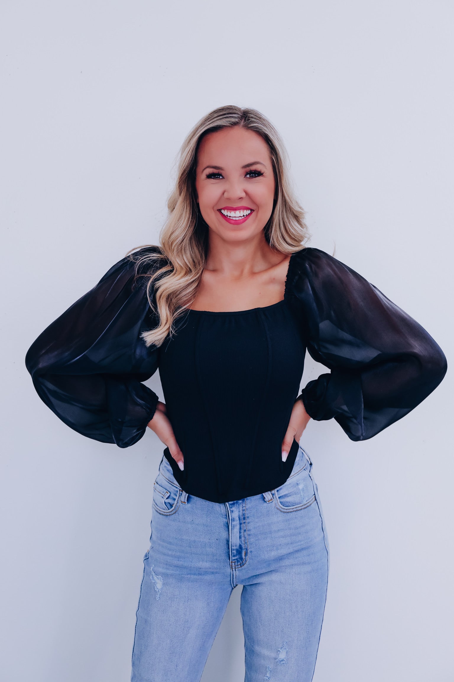 Ona Organza Sleeve Corset Top - Black