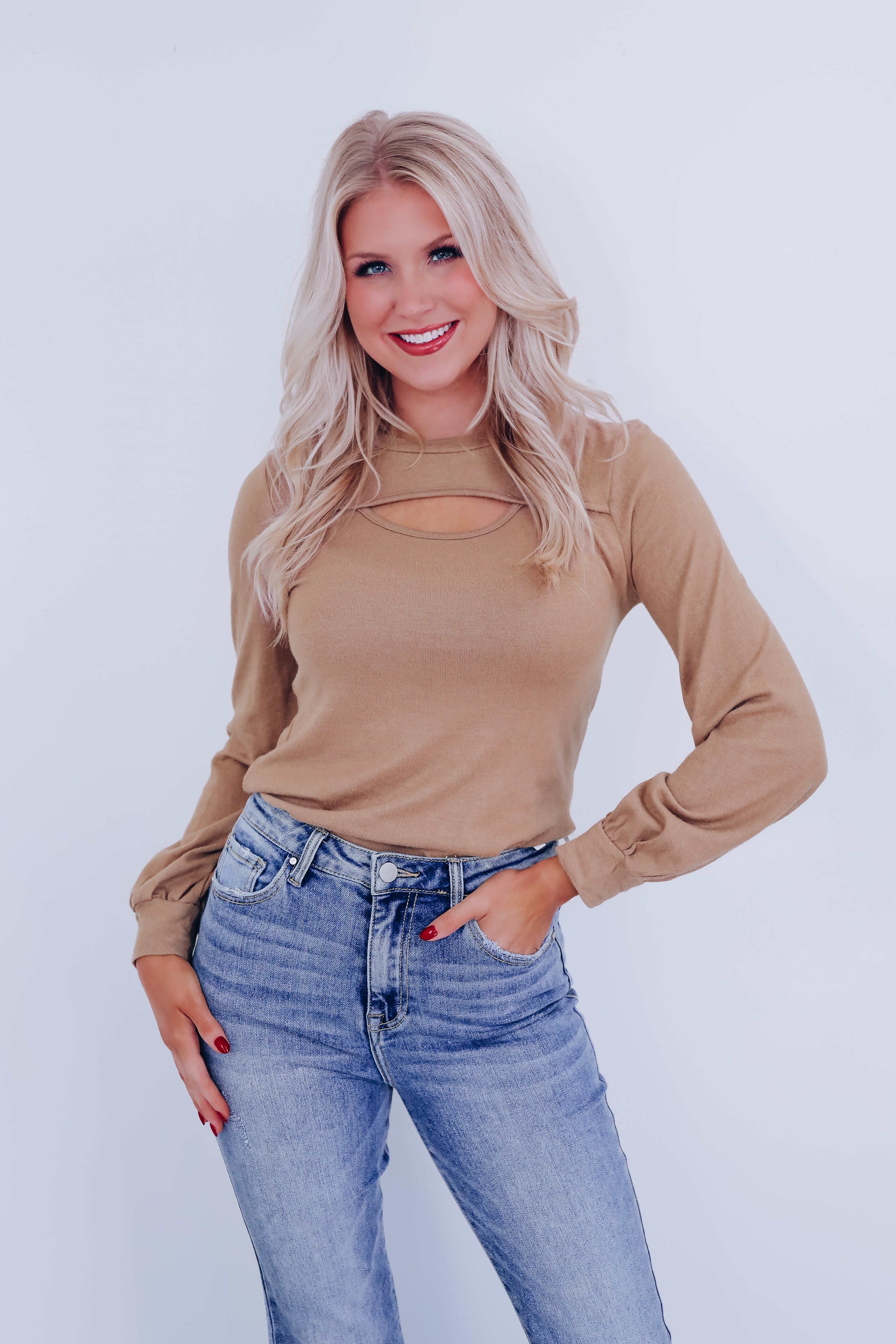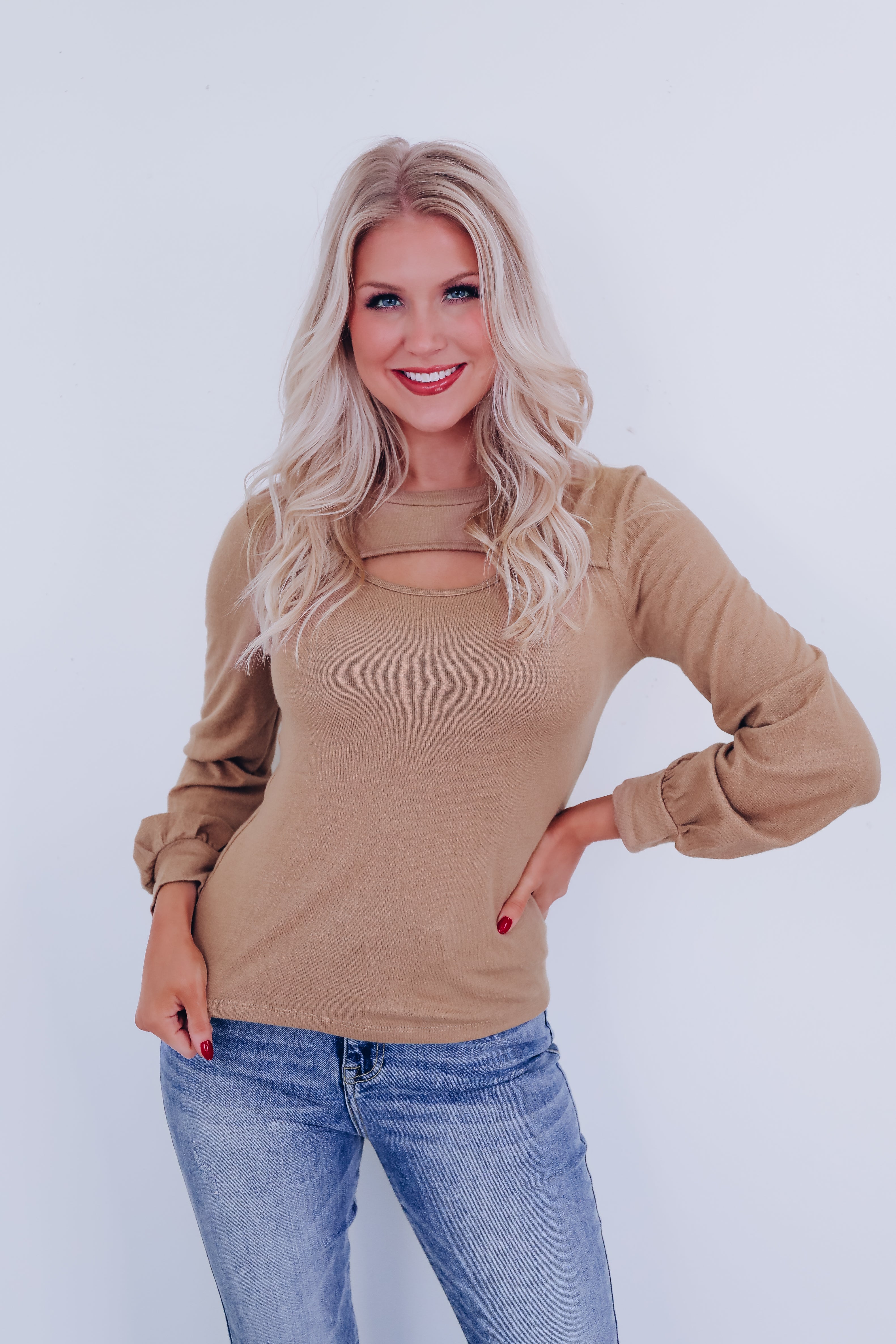 Kait Cut Out Long Sleeve Top - Tan