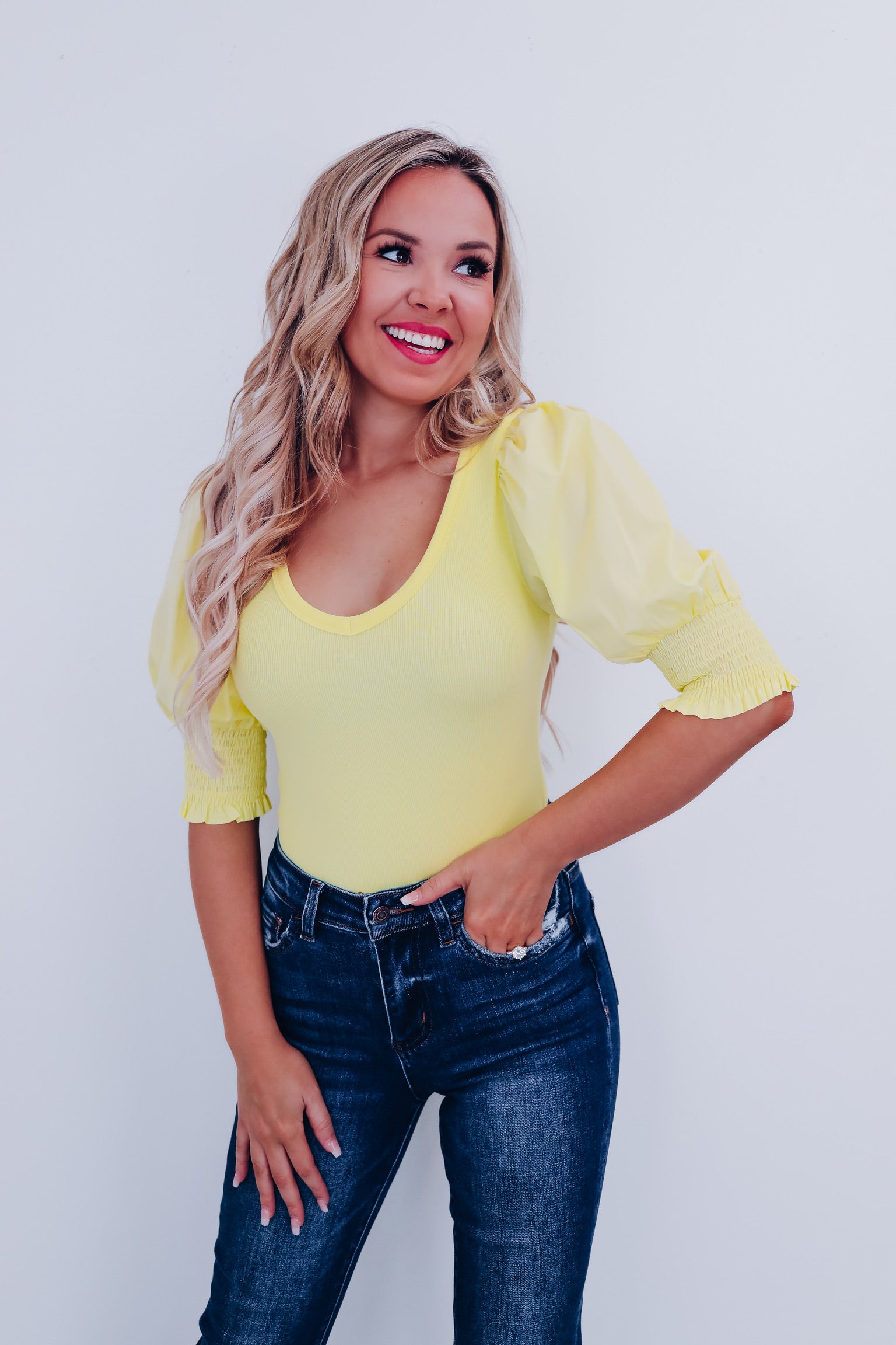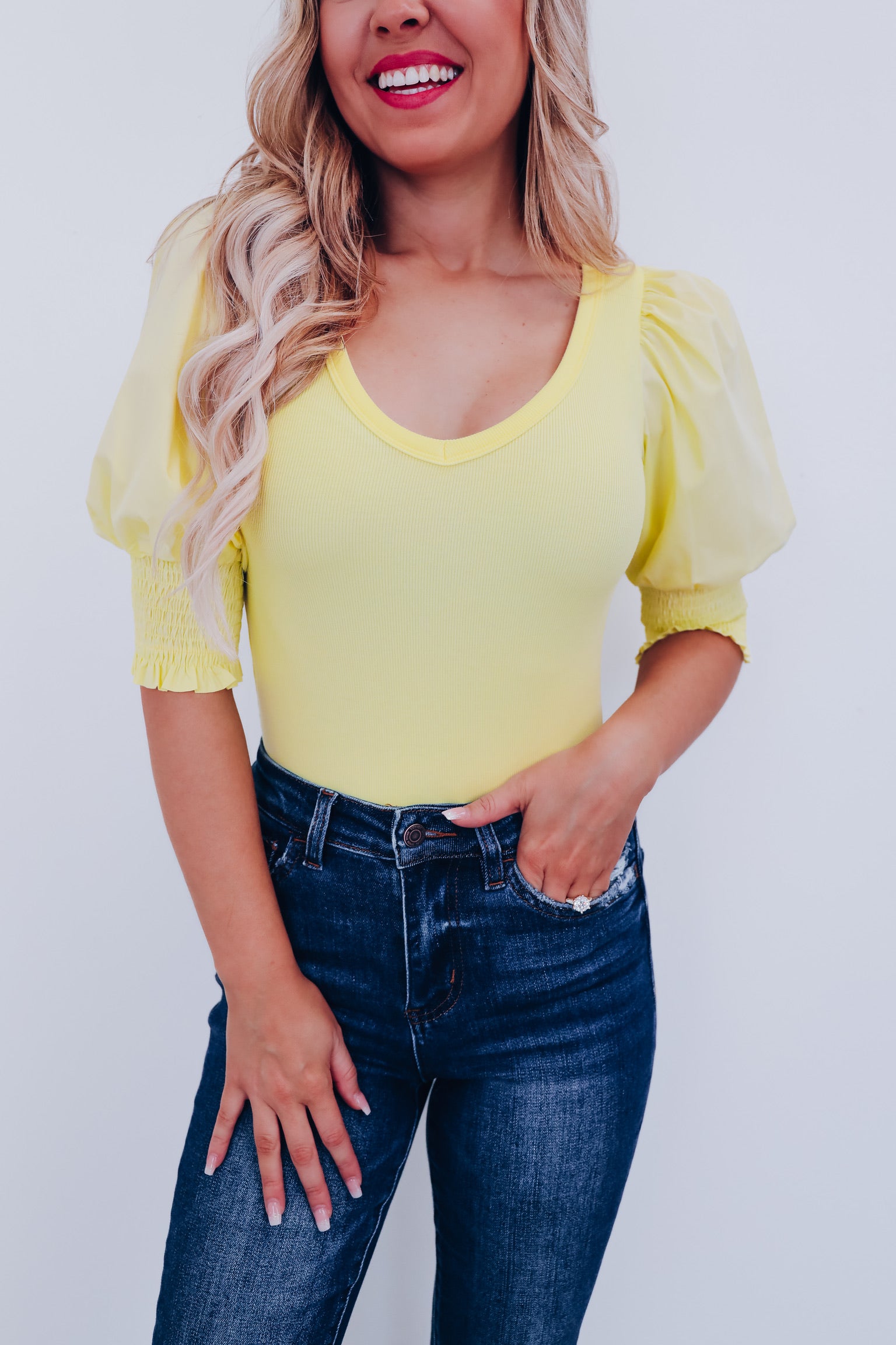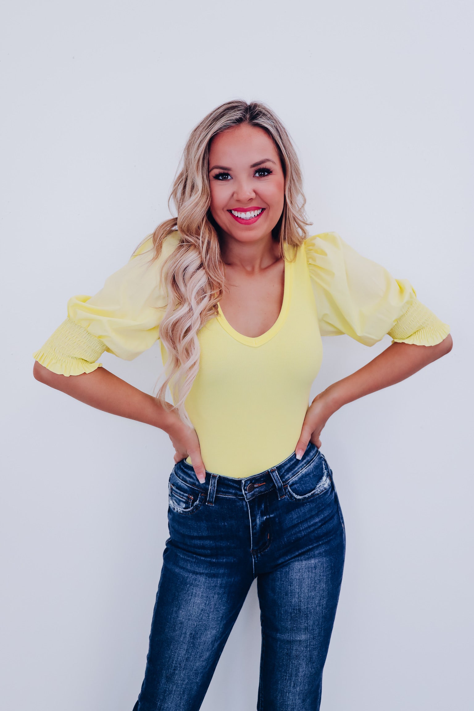 Pizzazz Puff Sleeve Bodysuit - Yellow