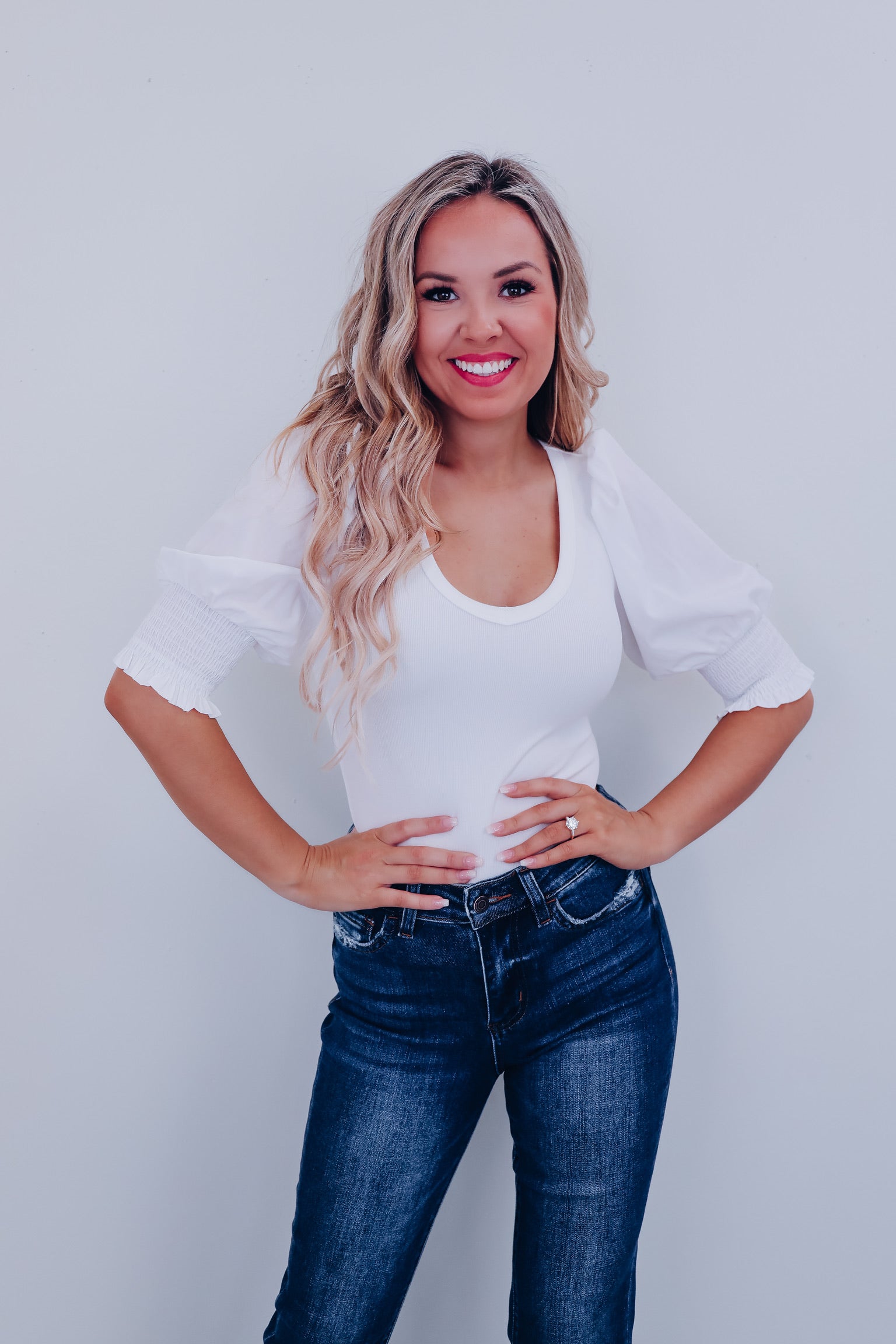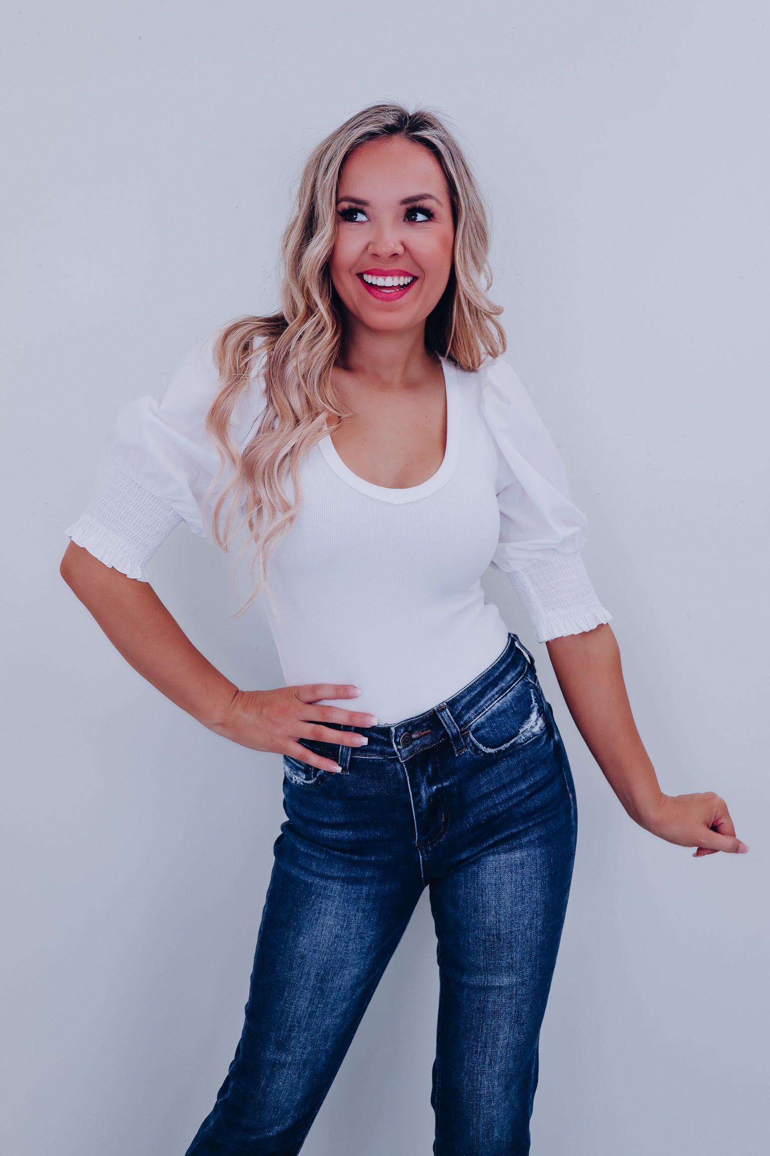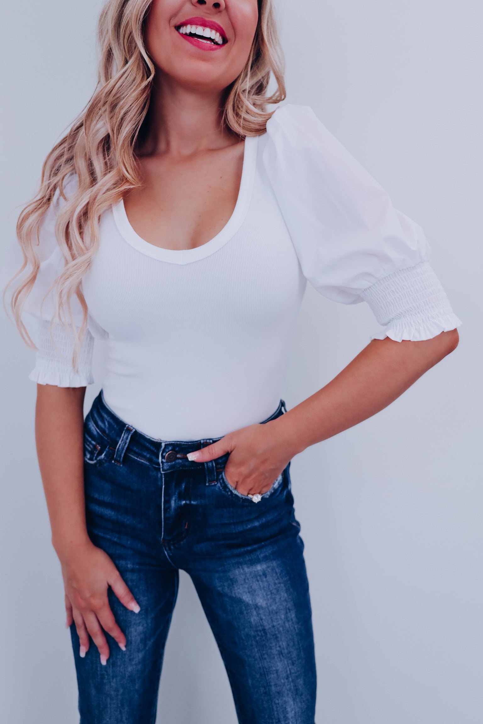 Pizzazz Puff Sleeve Bodysuit - White