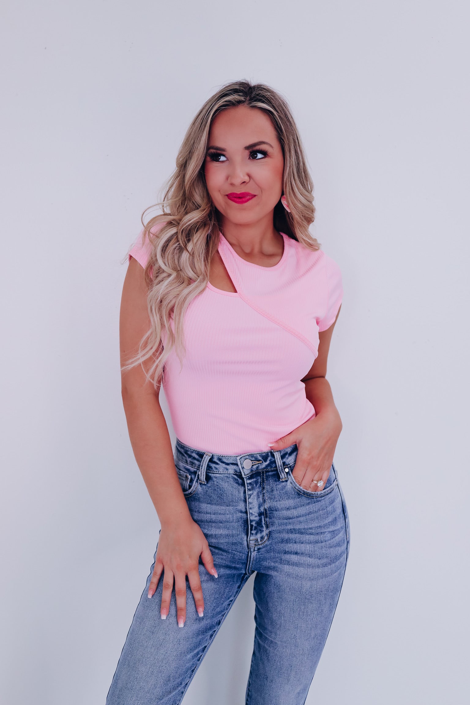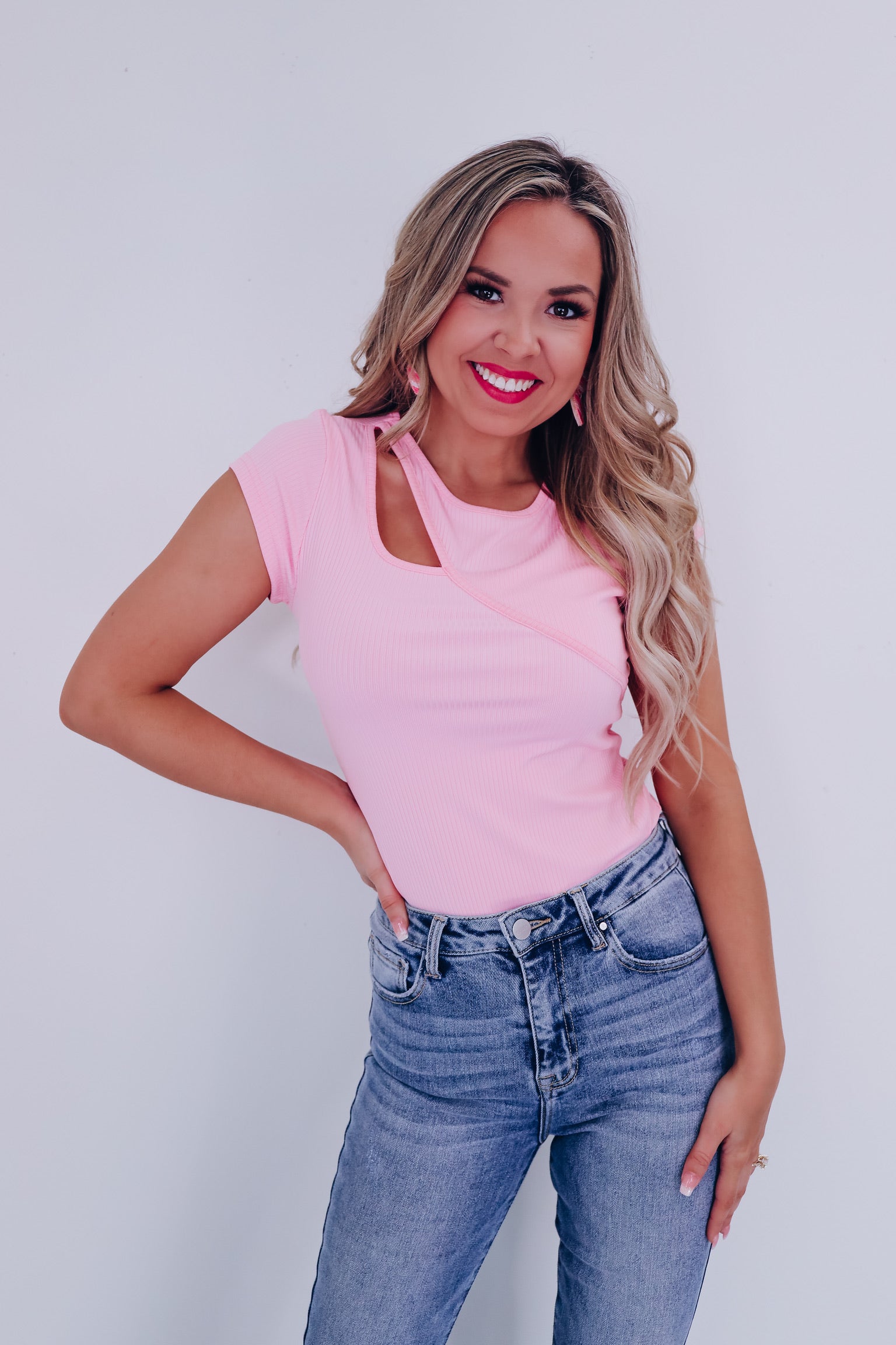 On The Edge Cutout Bodysuit - Pink
