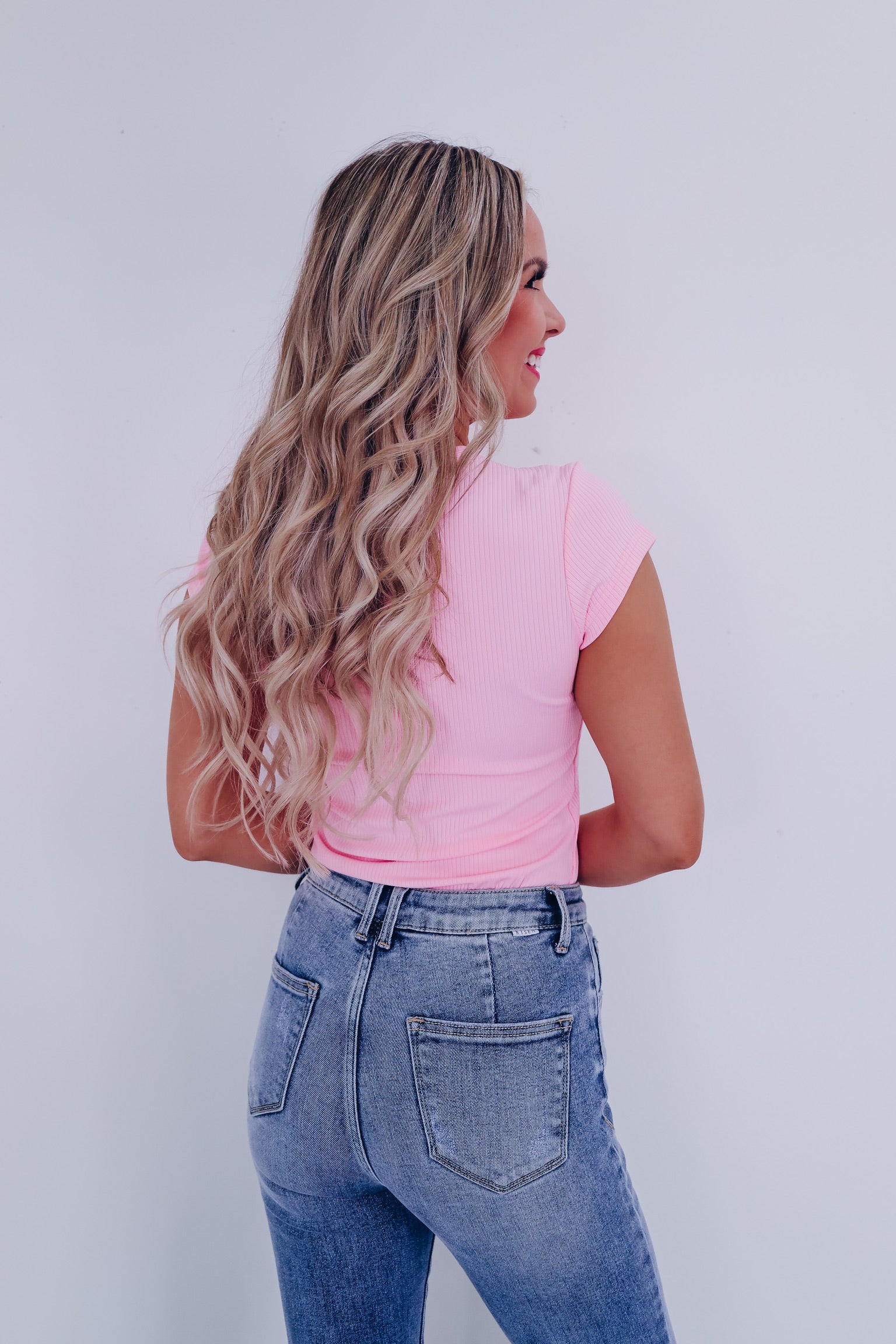 Simply Sweet Round Neck Bodysuit - Pink