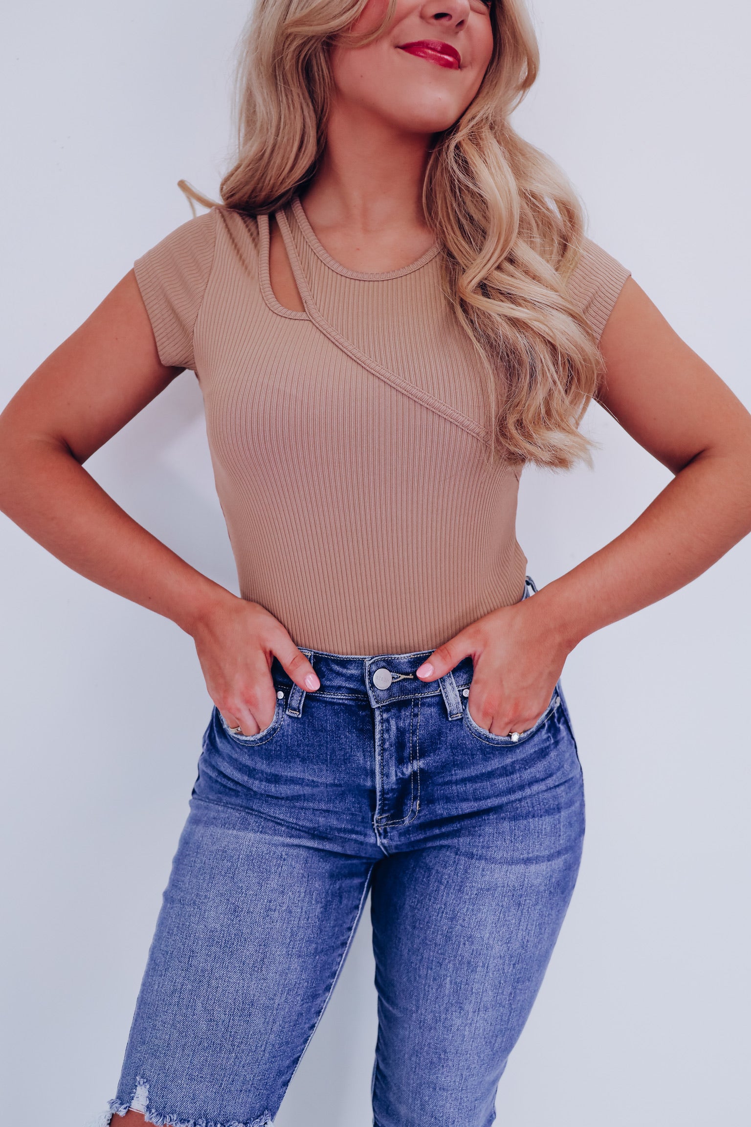 On The Edge Cutout Bodysuit - Beige