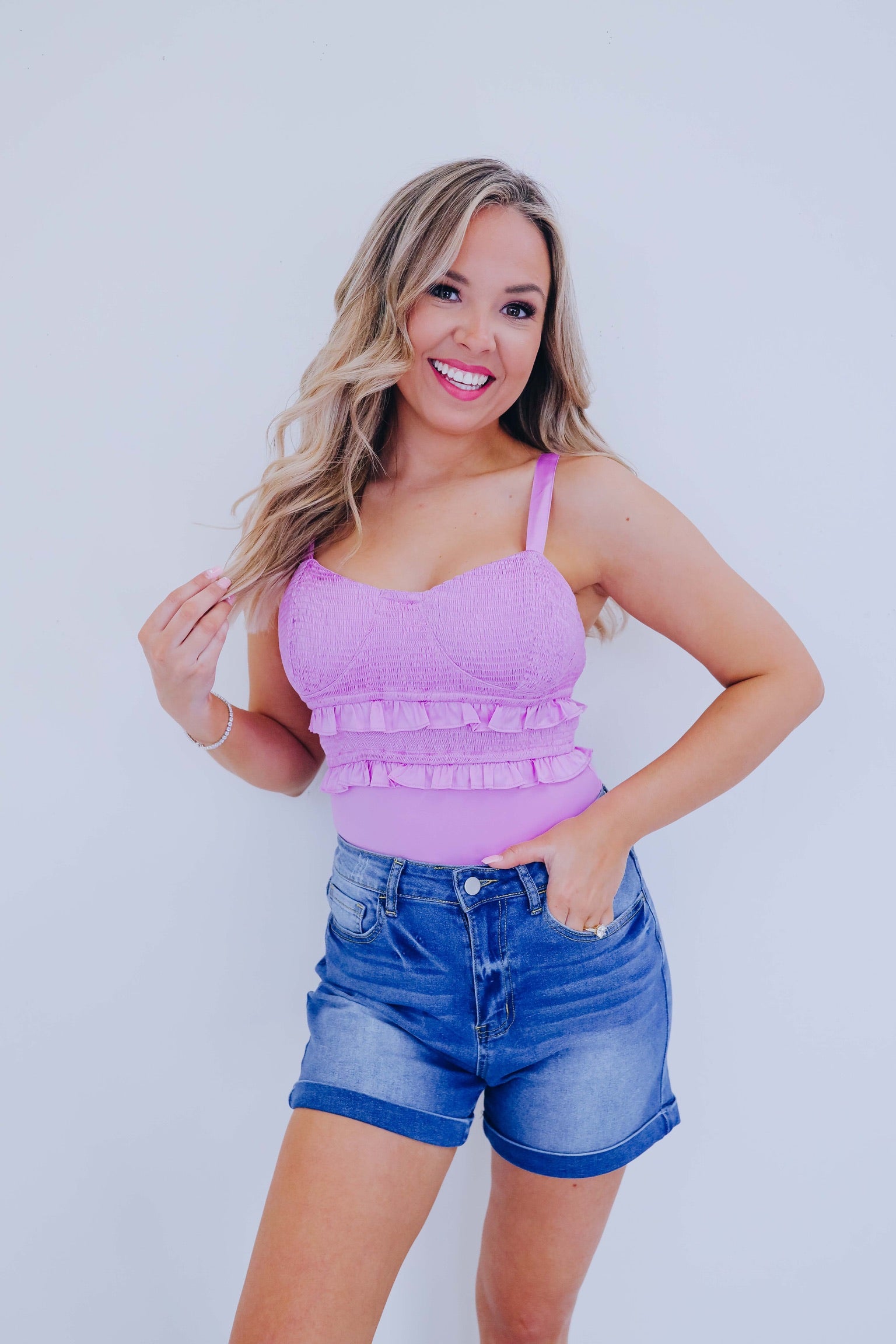 Sana Smocked Ruffle Trim Bodysuit - Lavender