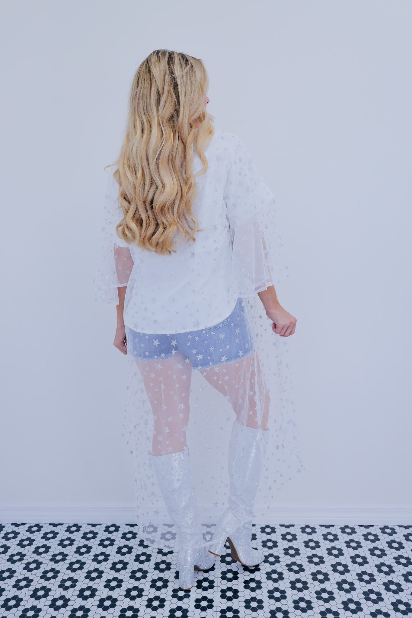 Celestial Star Print Mesh Kimono - White