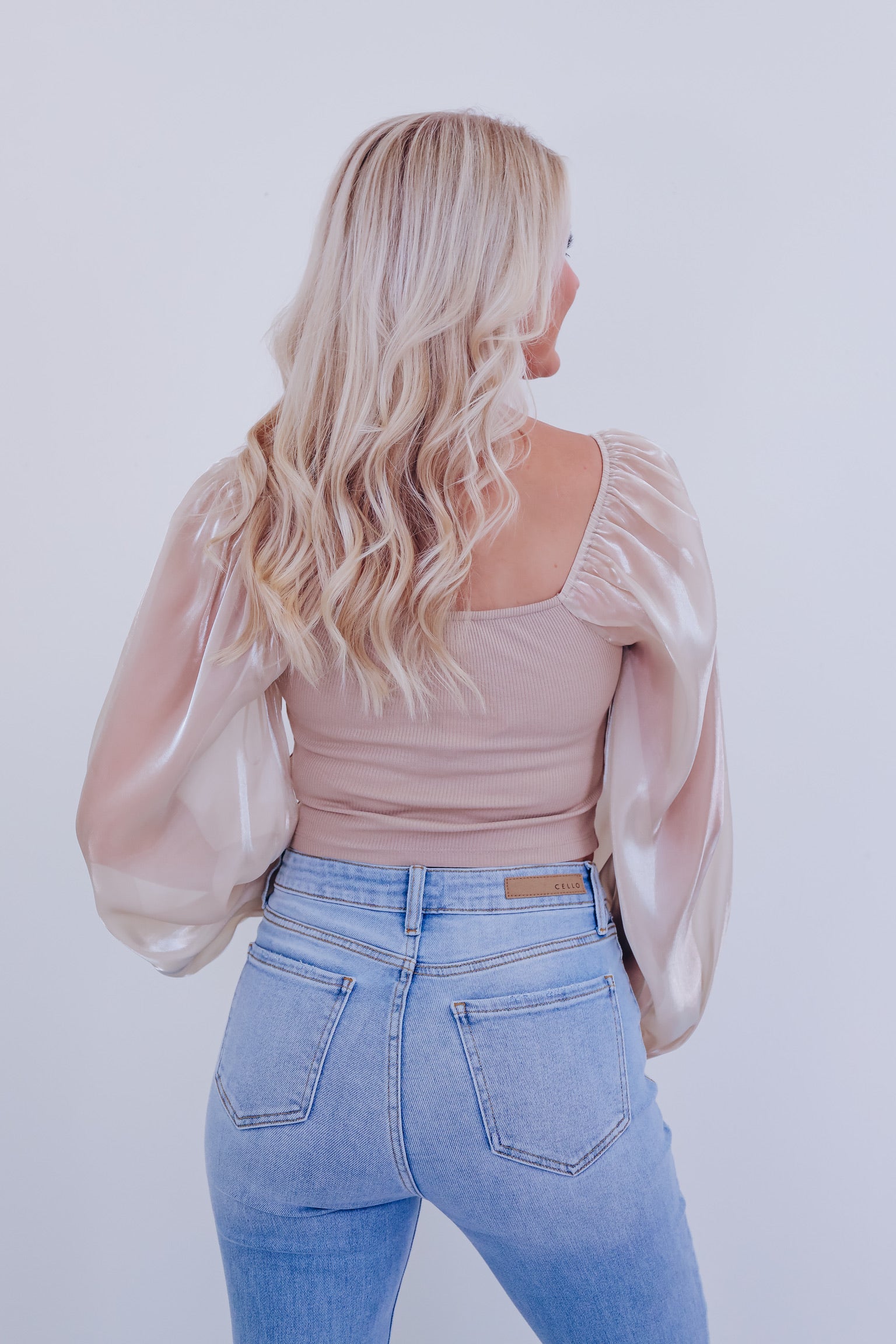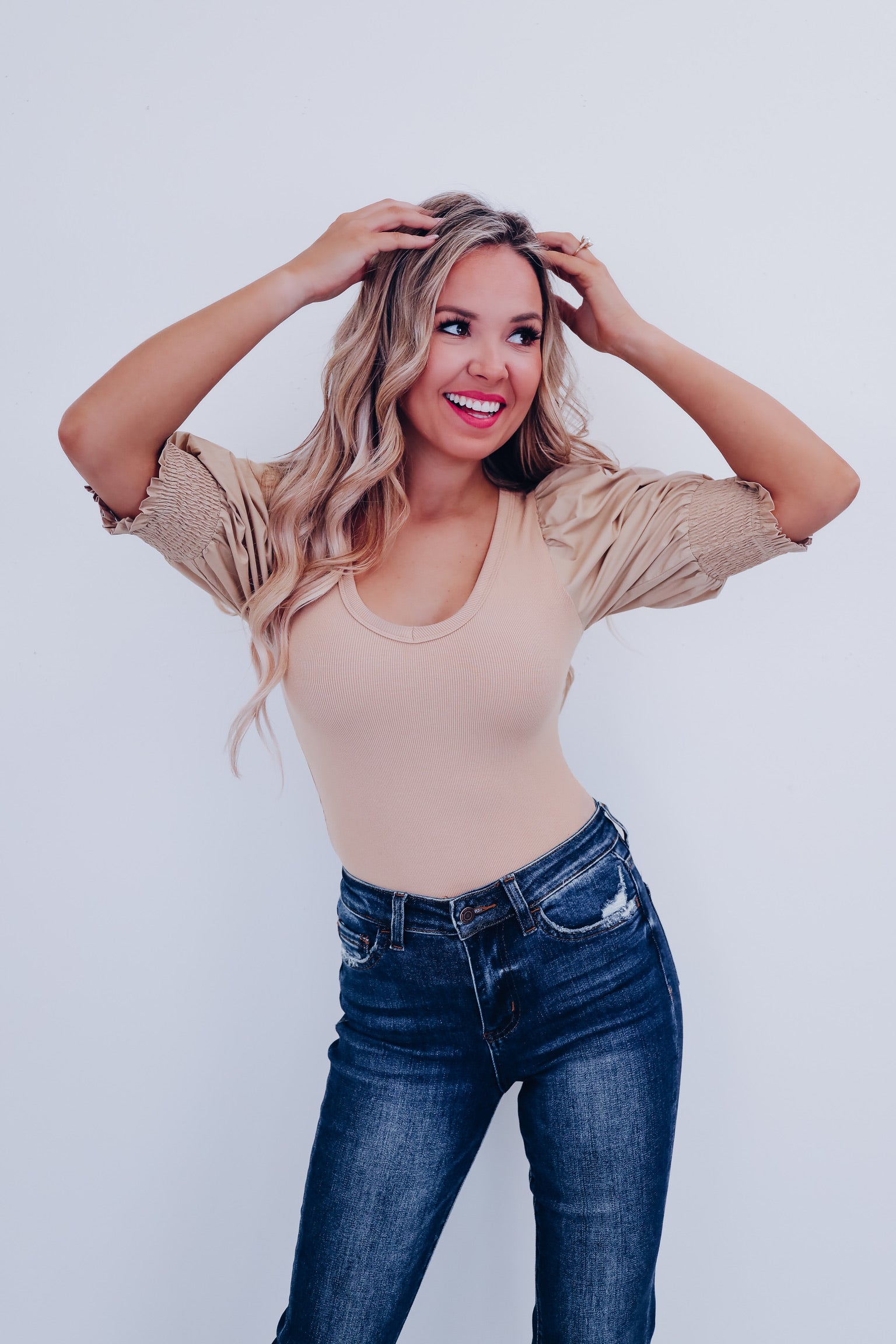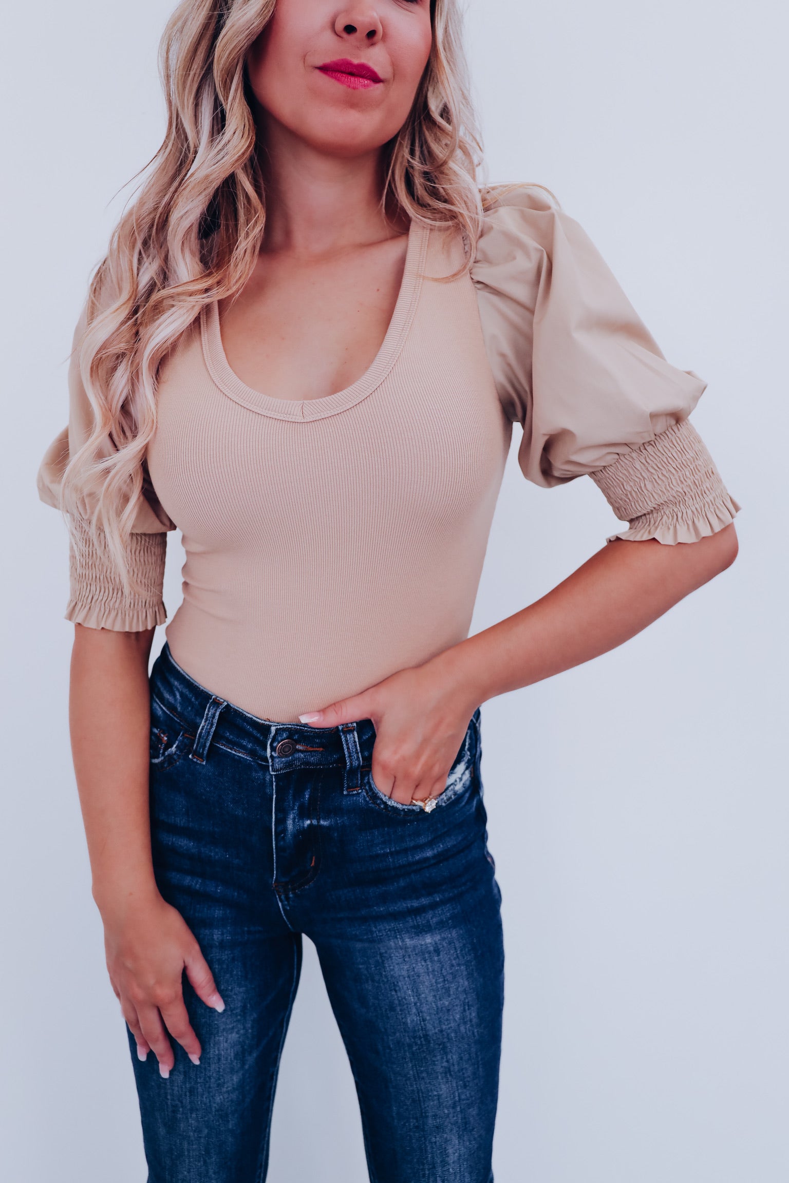 Pizzazz Puff Sleeve Bodysuit - Taupe
