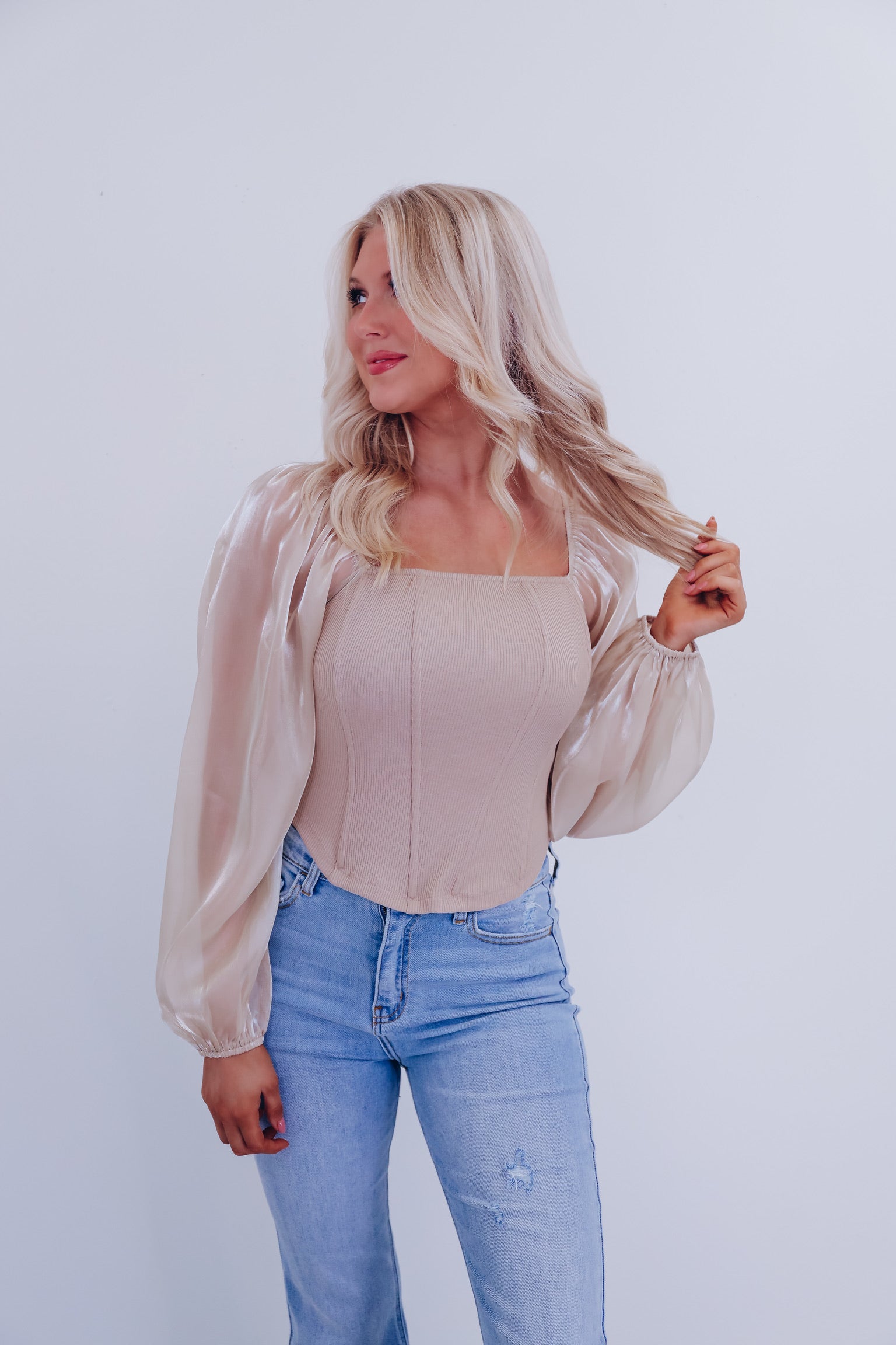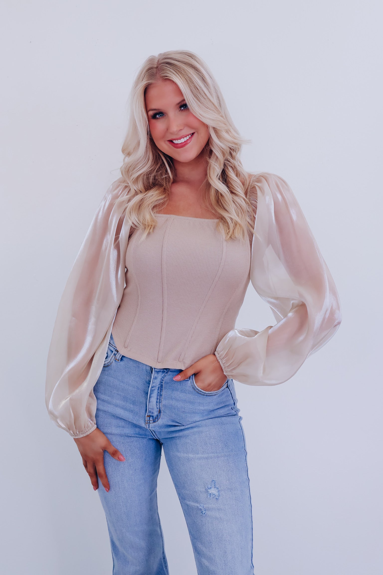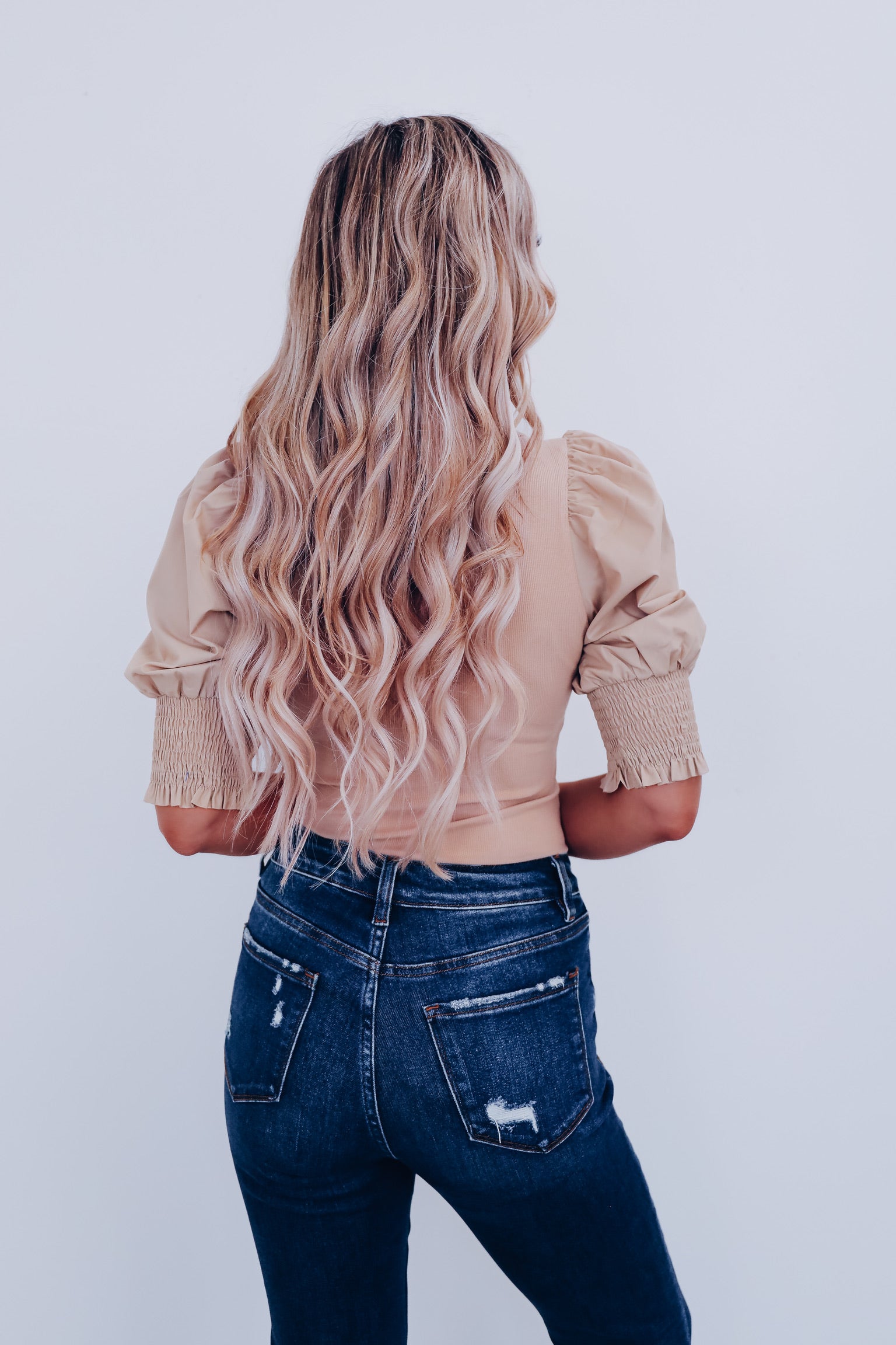 Pizzazz Puff Sleeve Bodysuit - Taupe