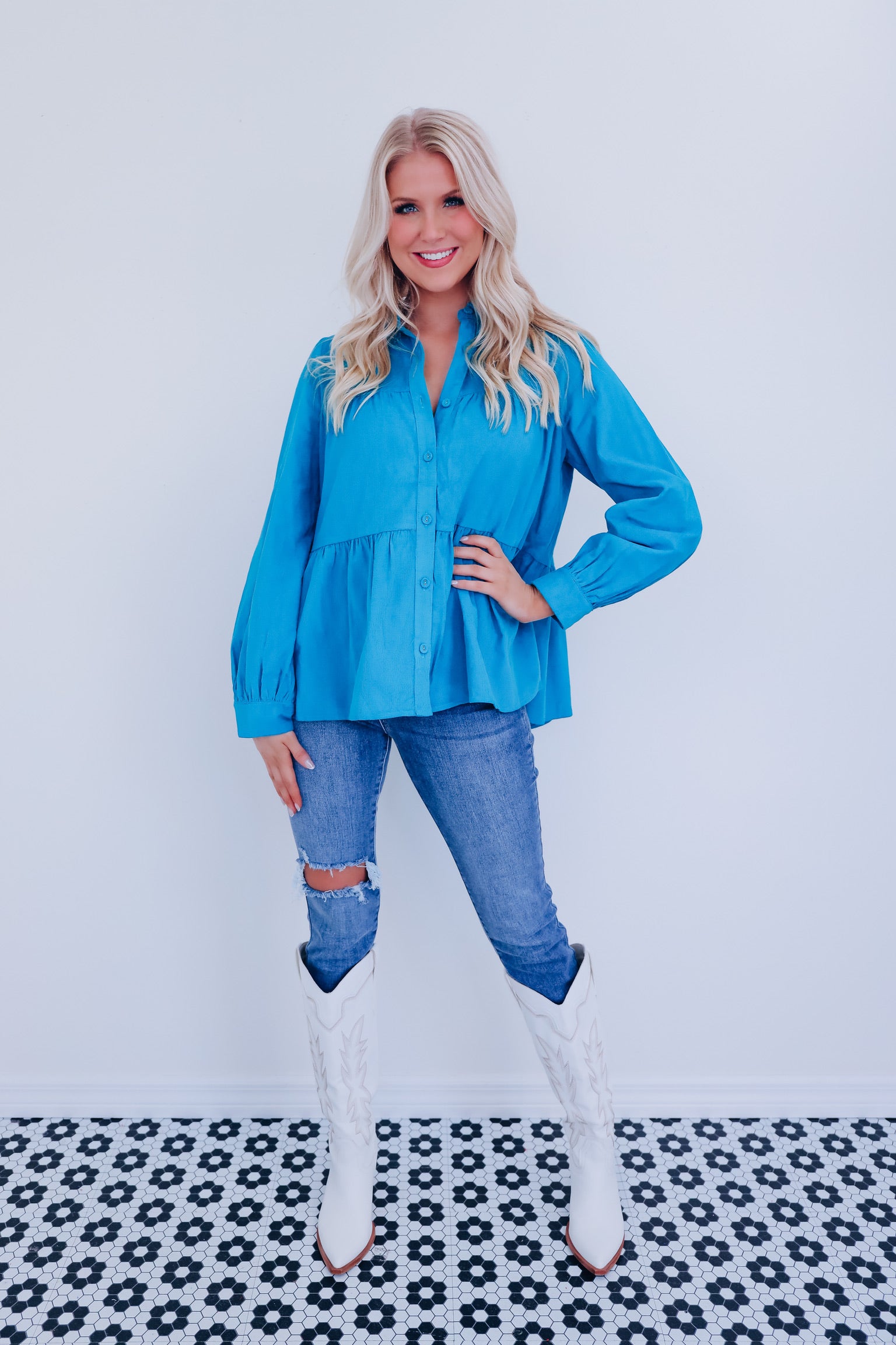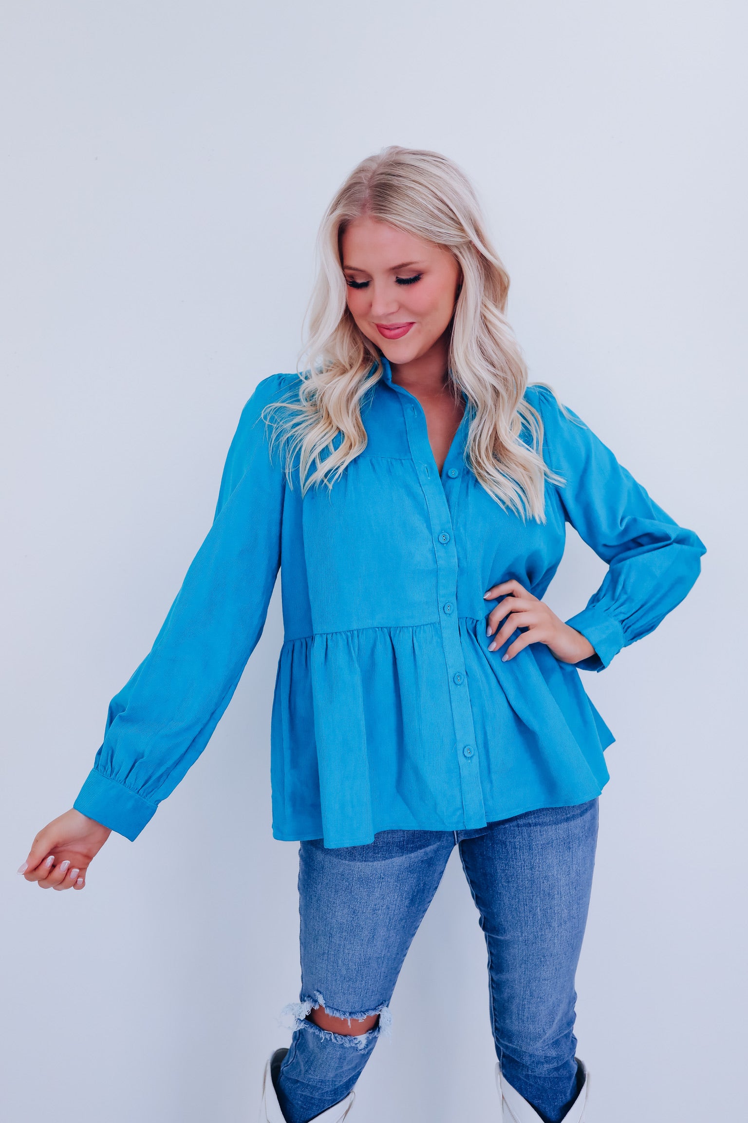 Kendra Micro Corduroy Baby Doll Top - Teal