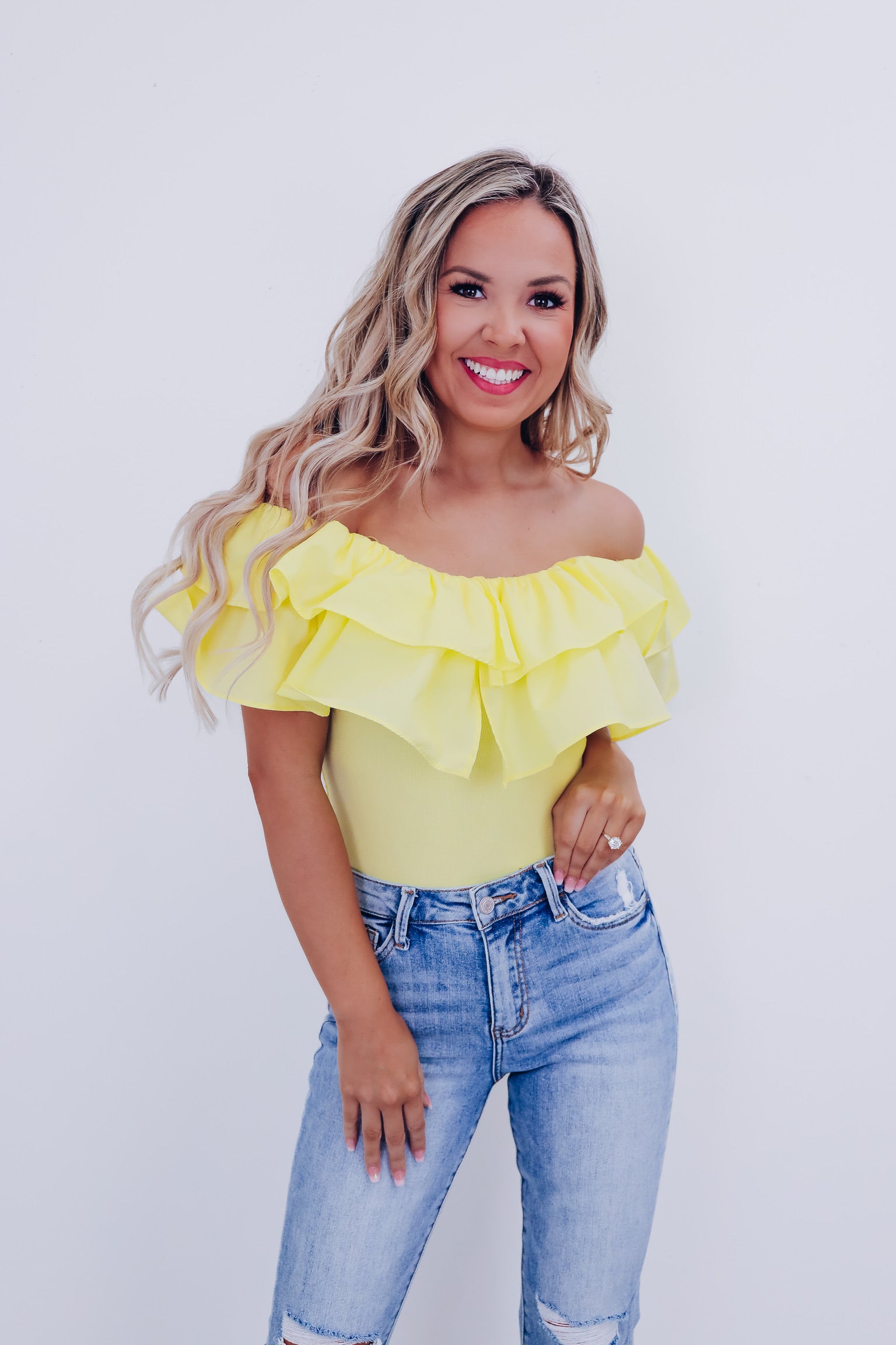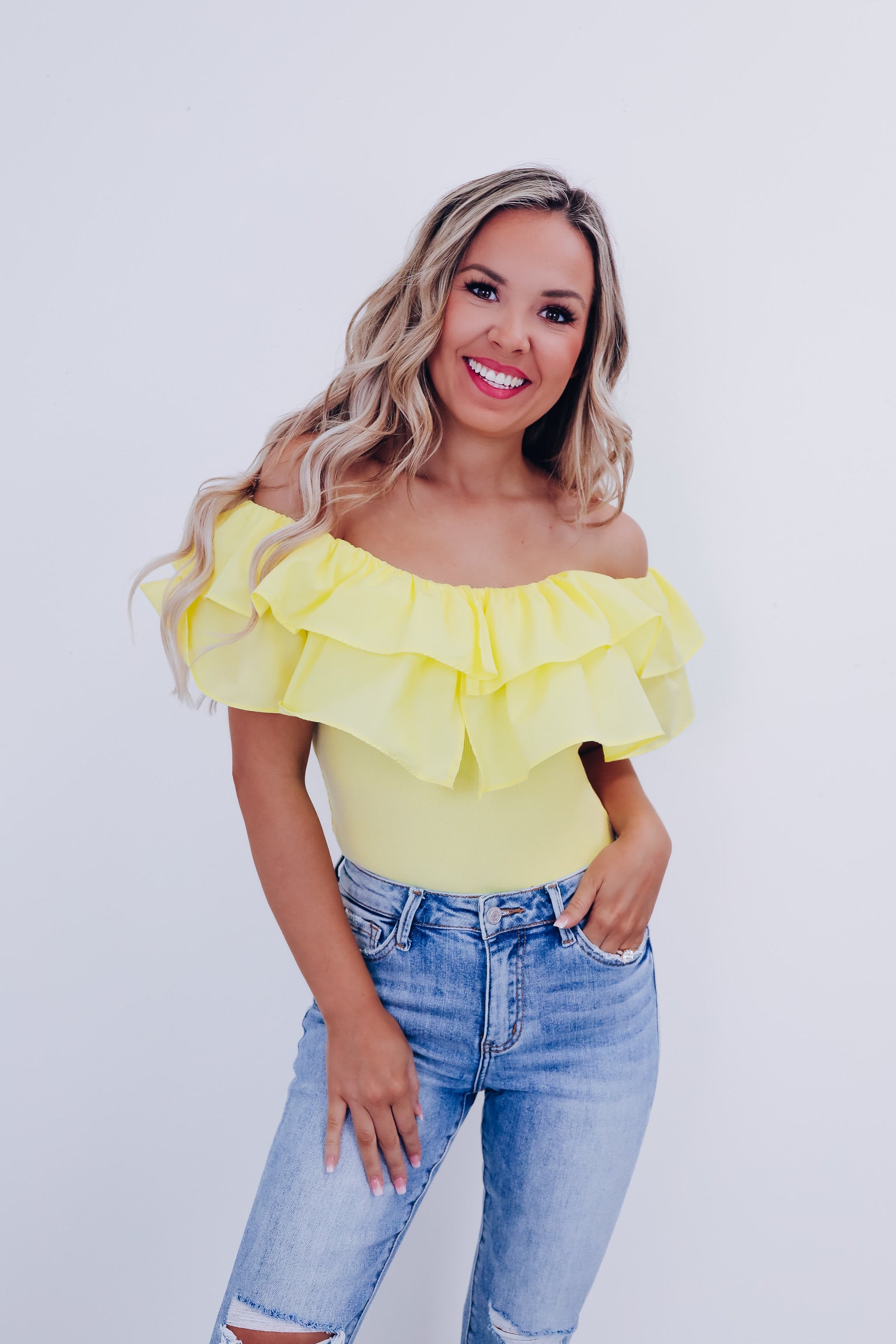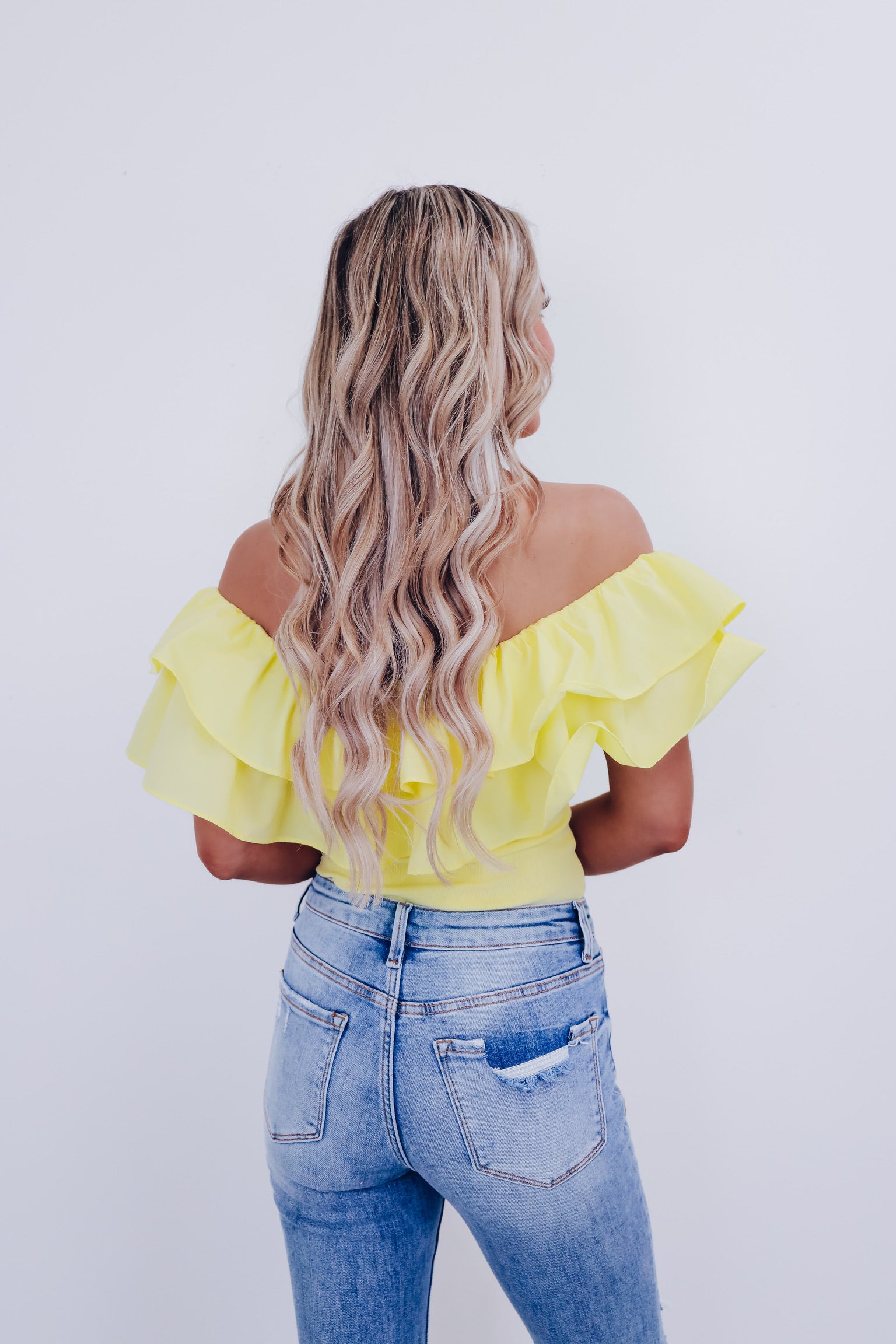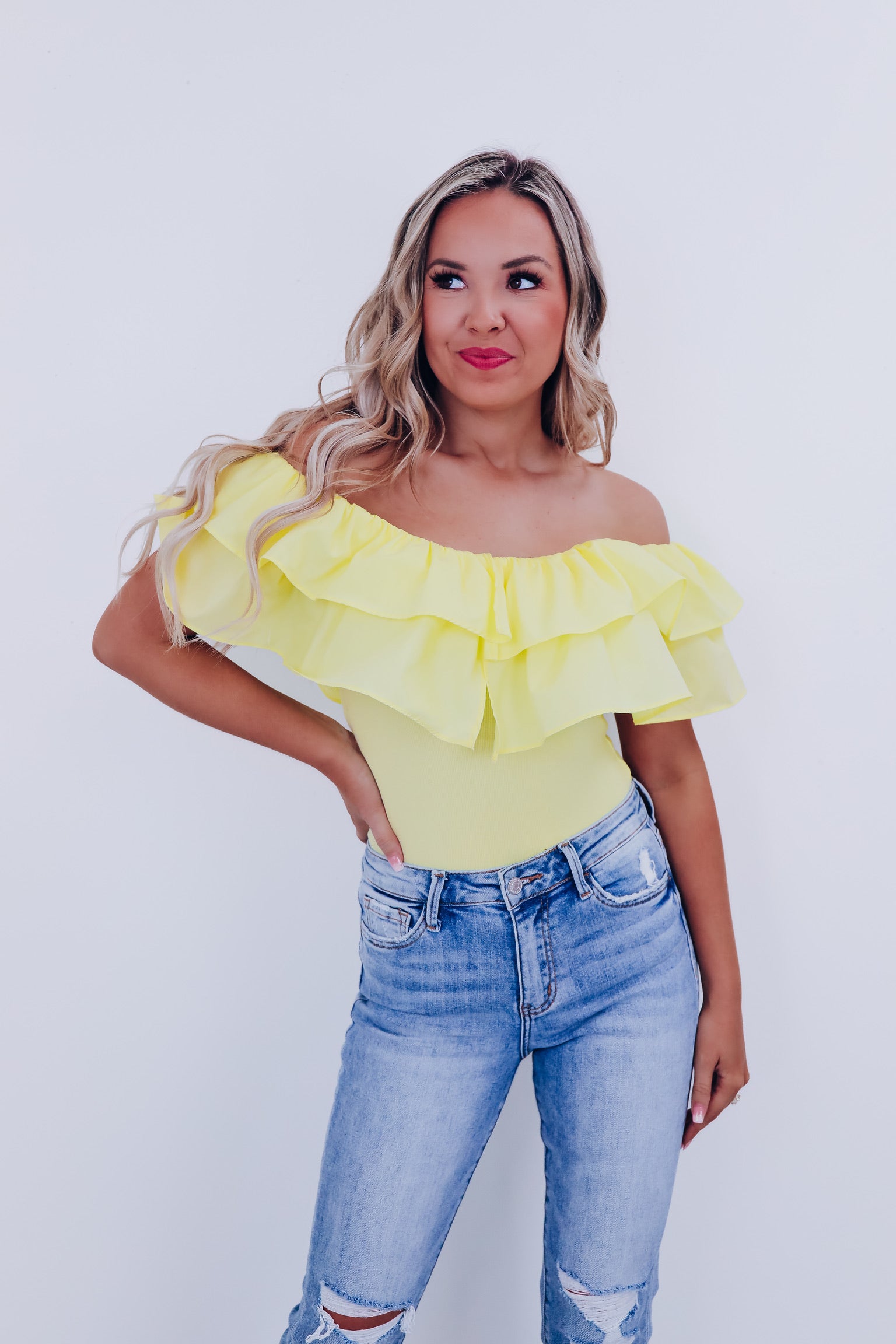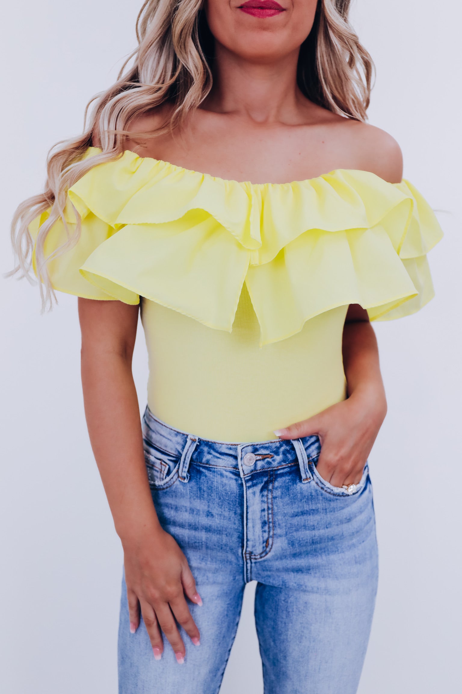 Radiant Ruffled Off Shoulder Bodysuit - Yellow